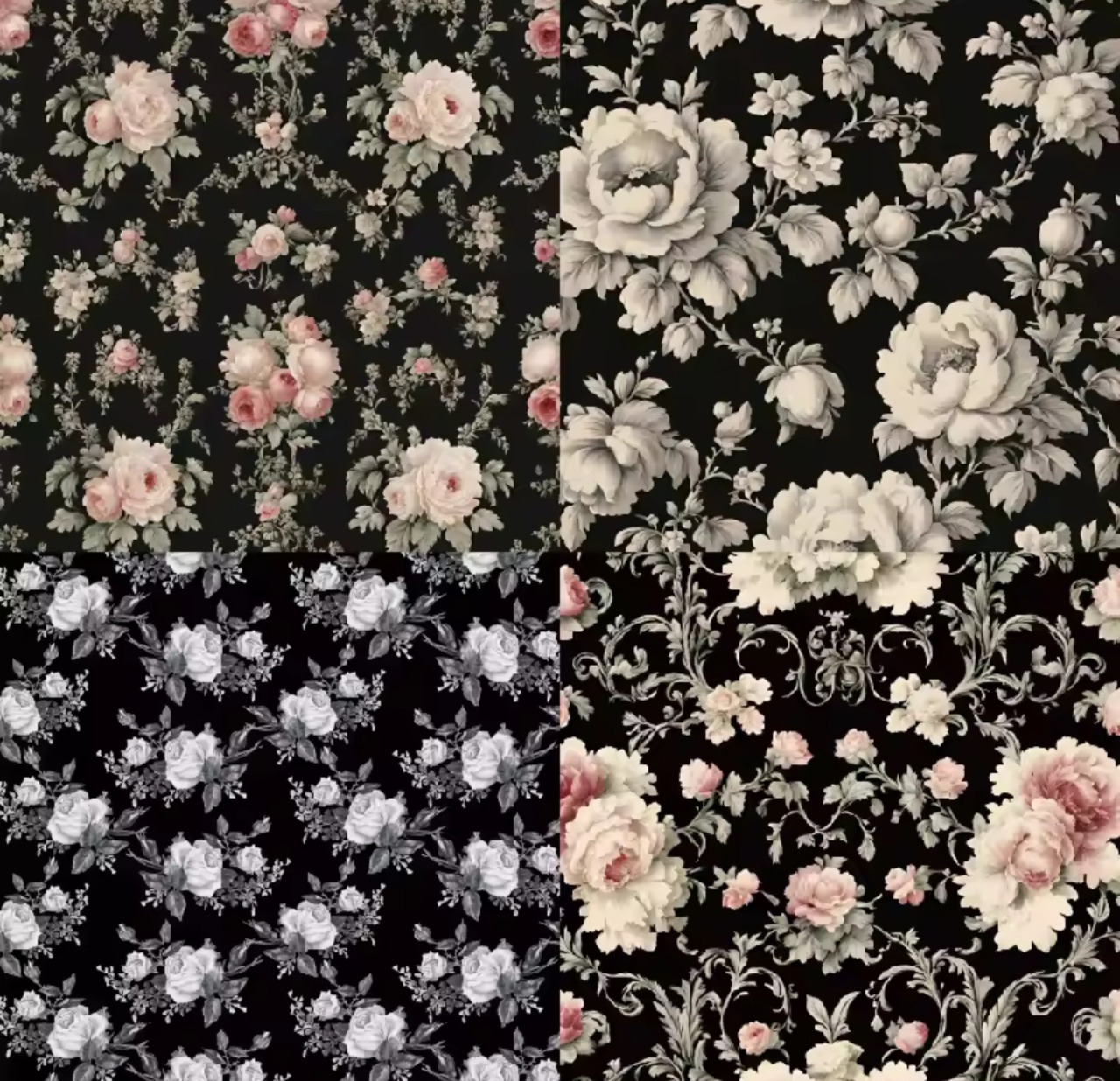 繊細でクールなお花のデザインが描かれた6インチデザインペーパー、24枚入りのセットです。