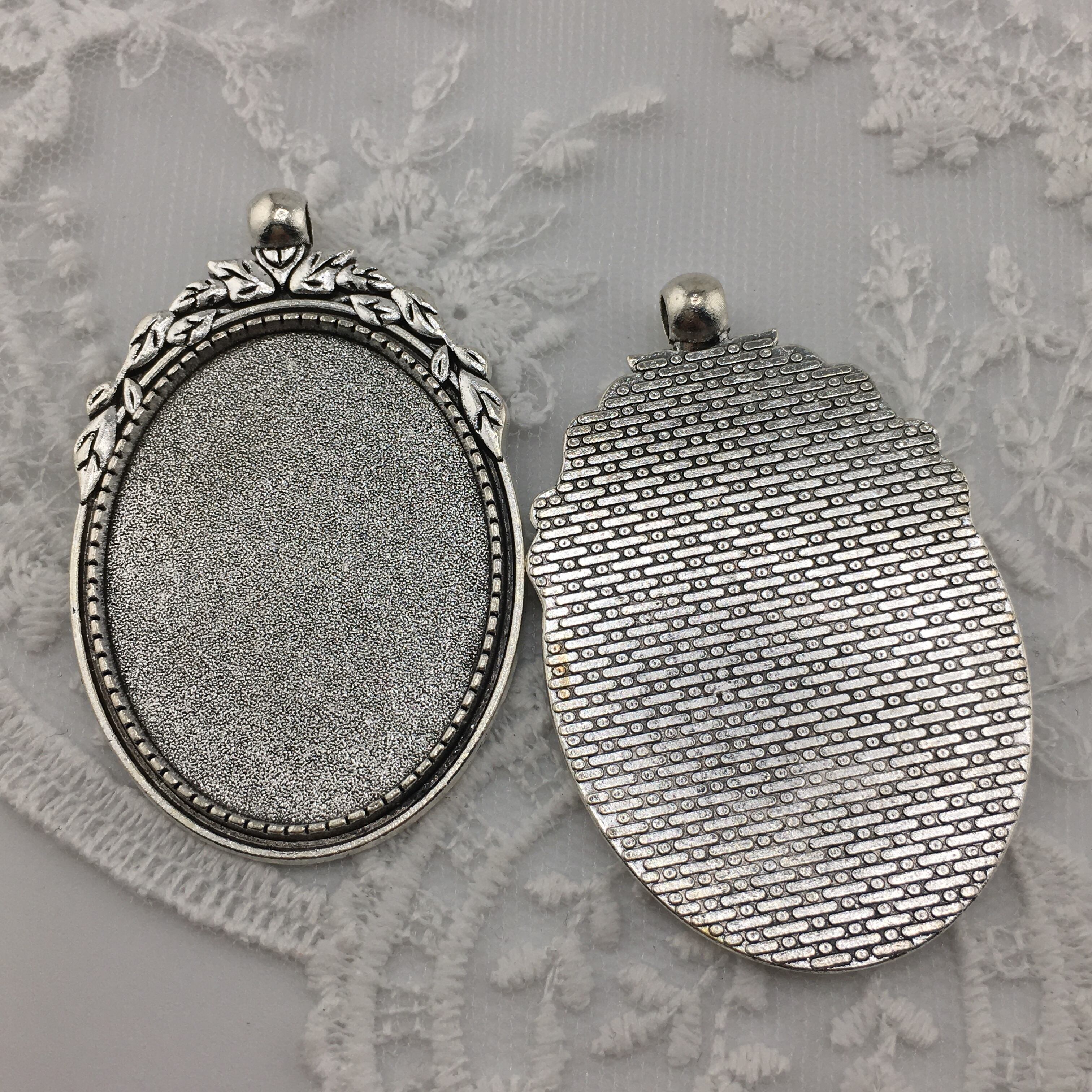 #ミール皿 #カメオ土台 #レジン台座 #アクセサリーパーツ #ハンドメイド素材 #クラシックフレーム #アンティークシルバー #オーバル台座 #30x40mm #2枚セット #レジンパーツ #樹脂カメオ