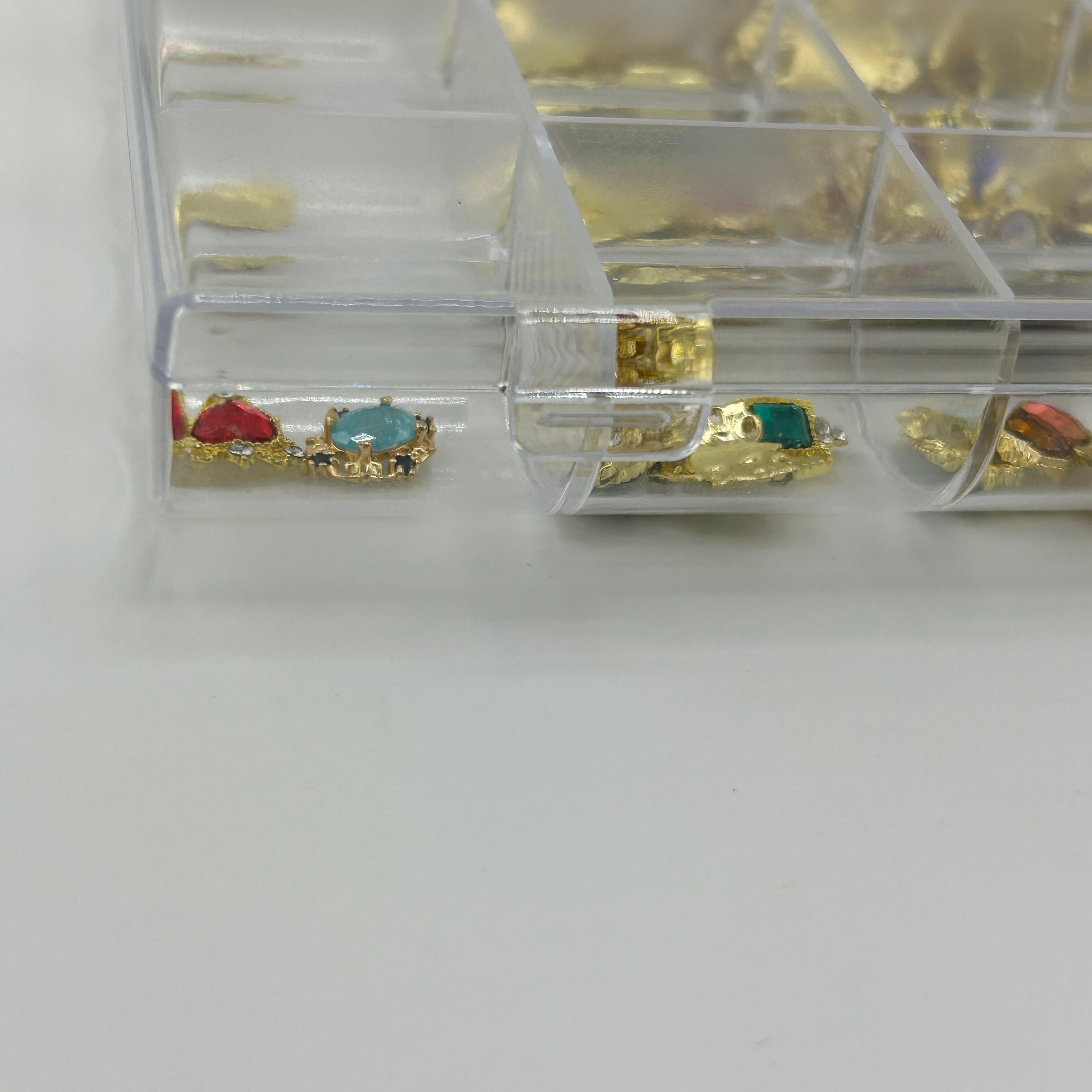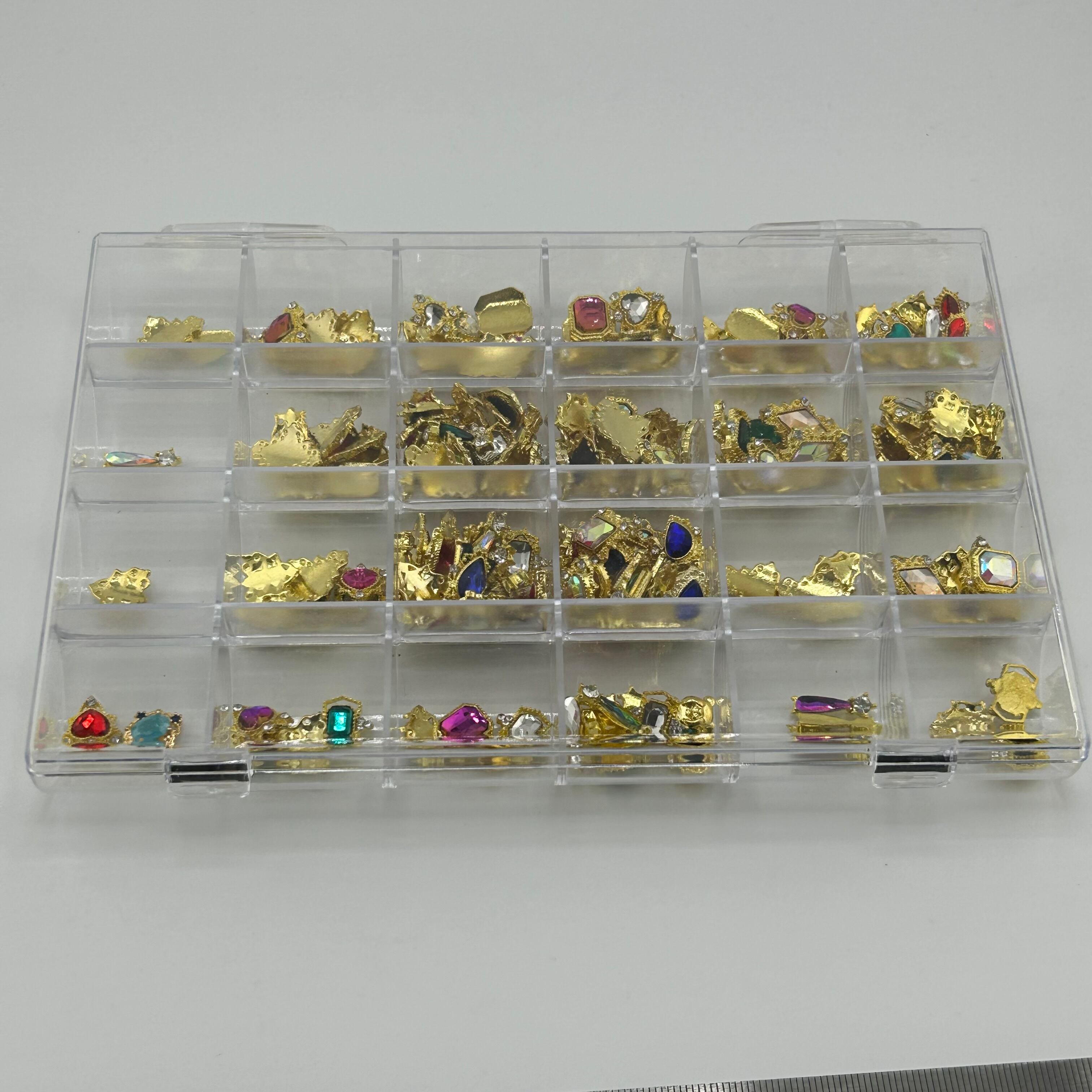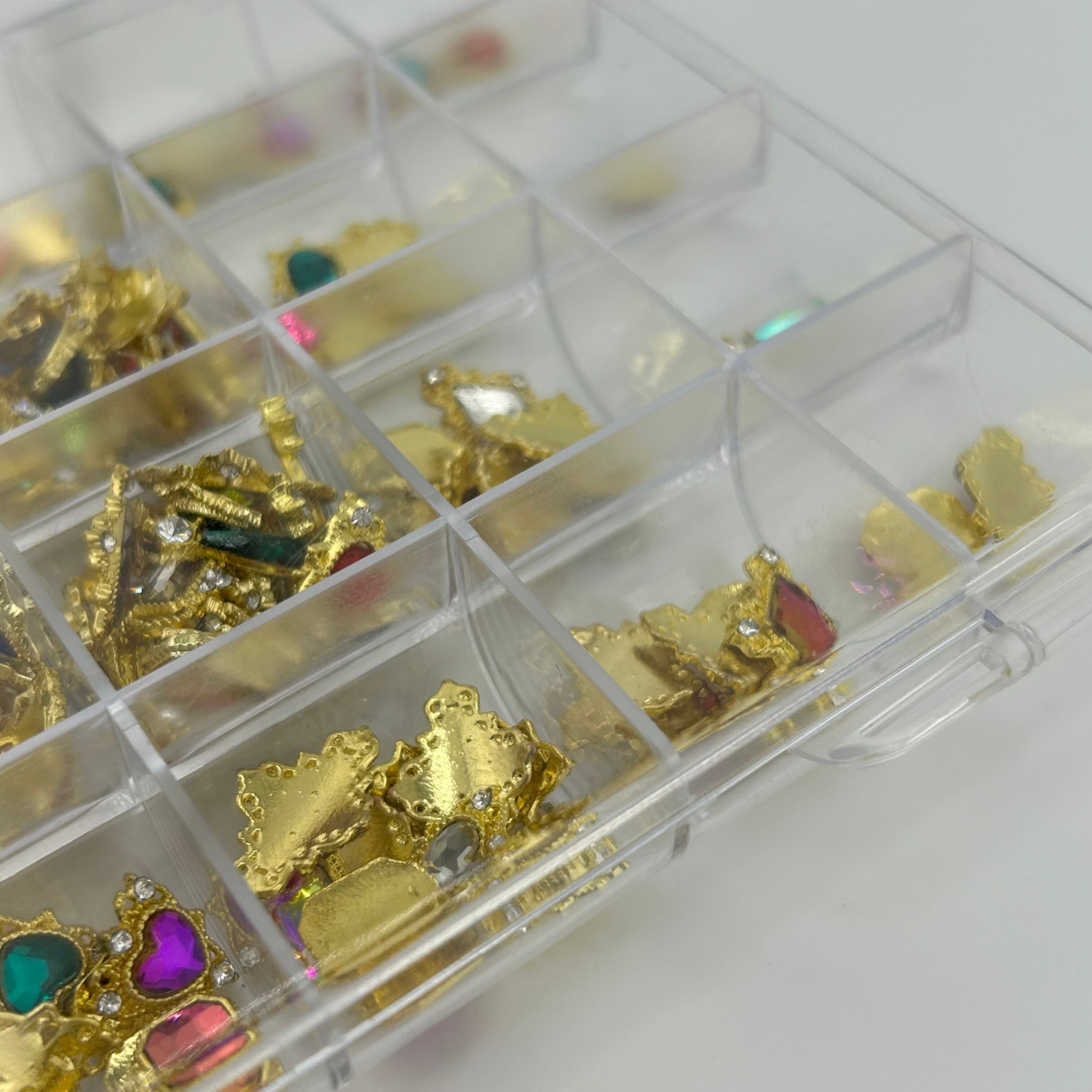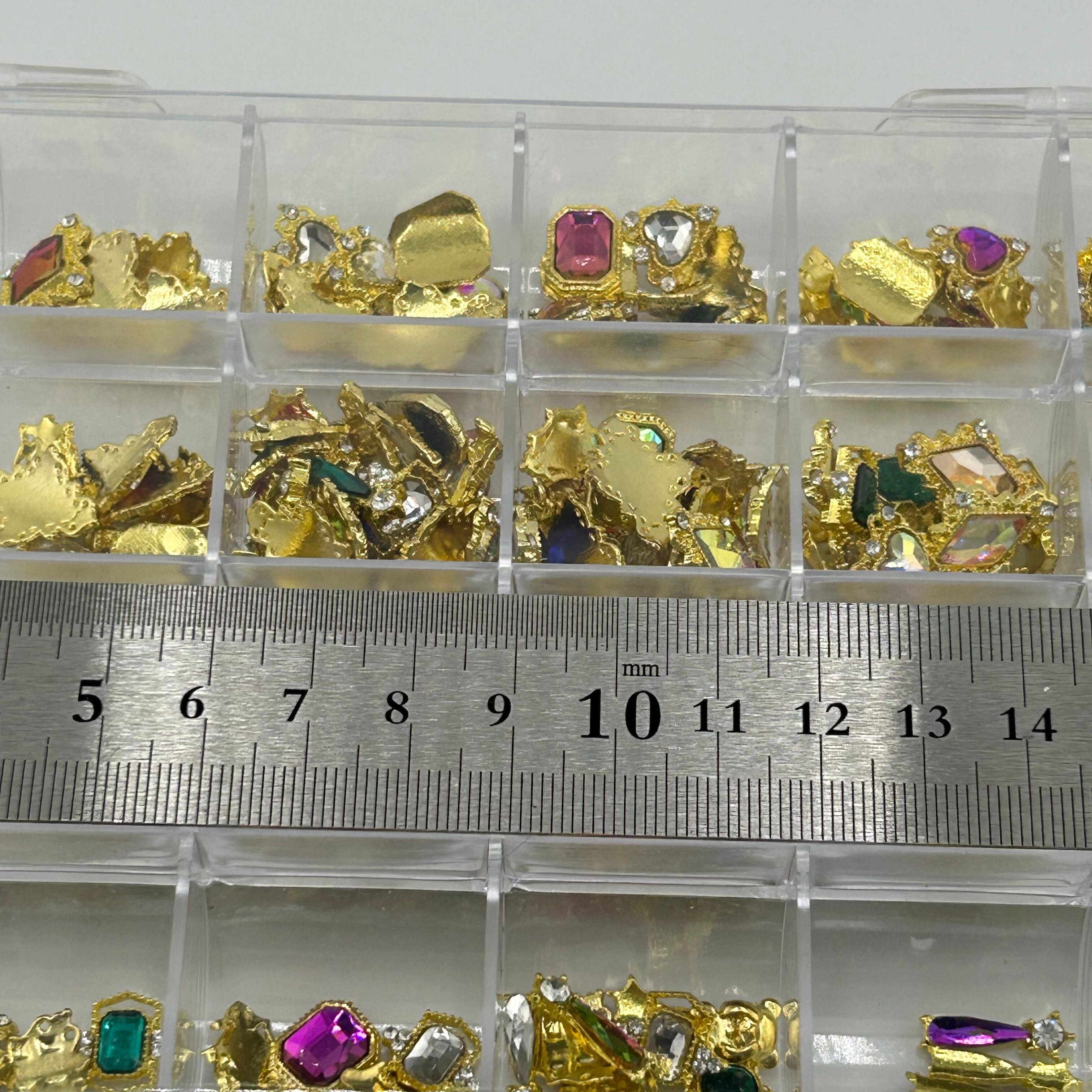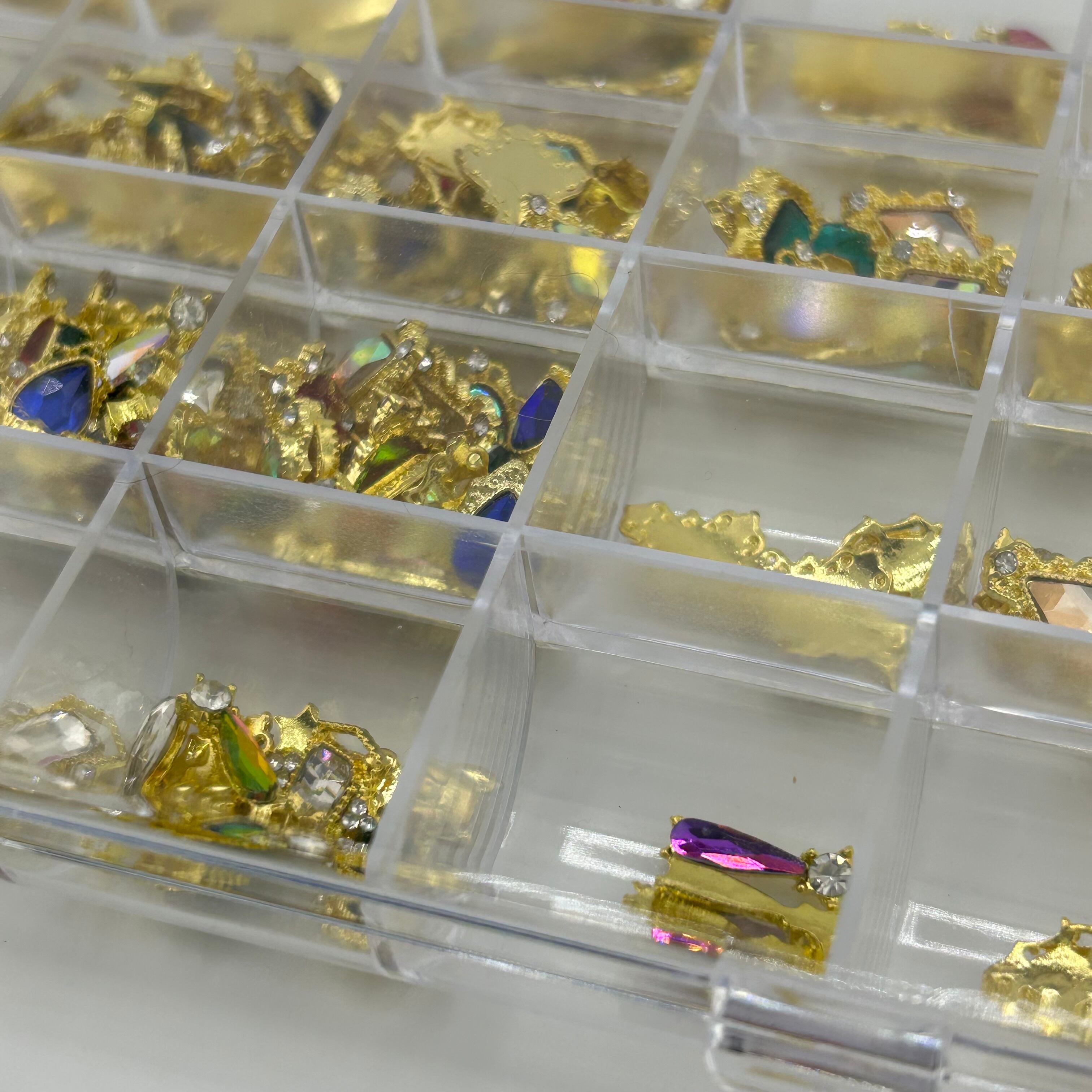 キラキラのストーン付きゴールドネイルパーツがたっぷり詰まったアソートセットです。