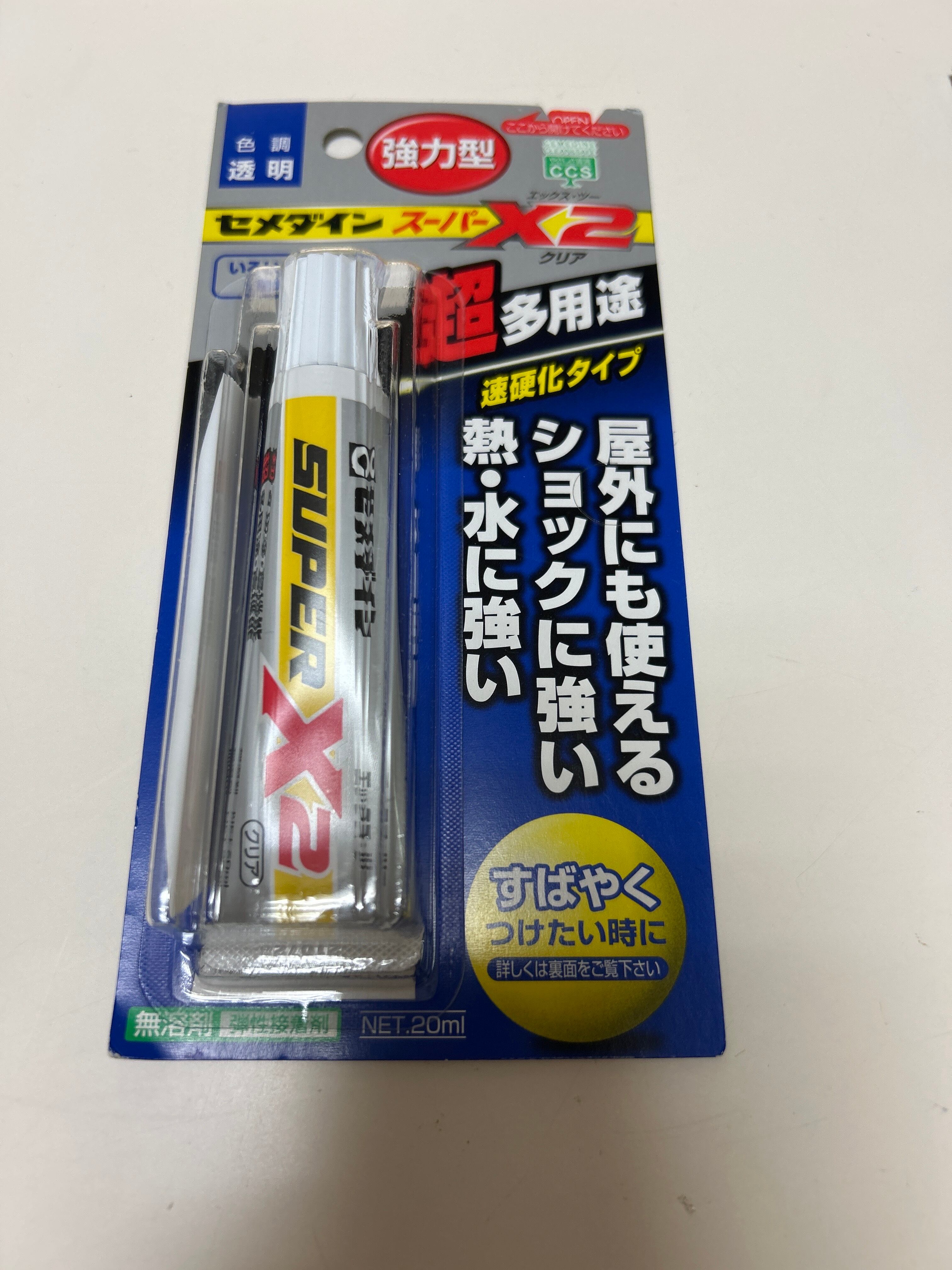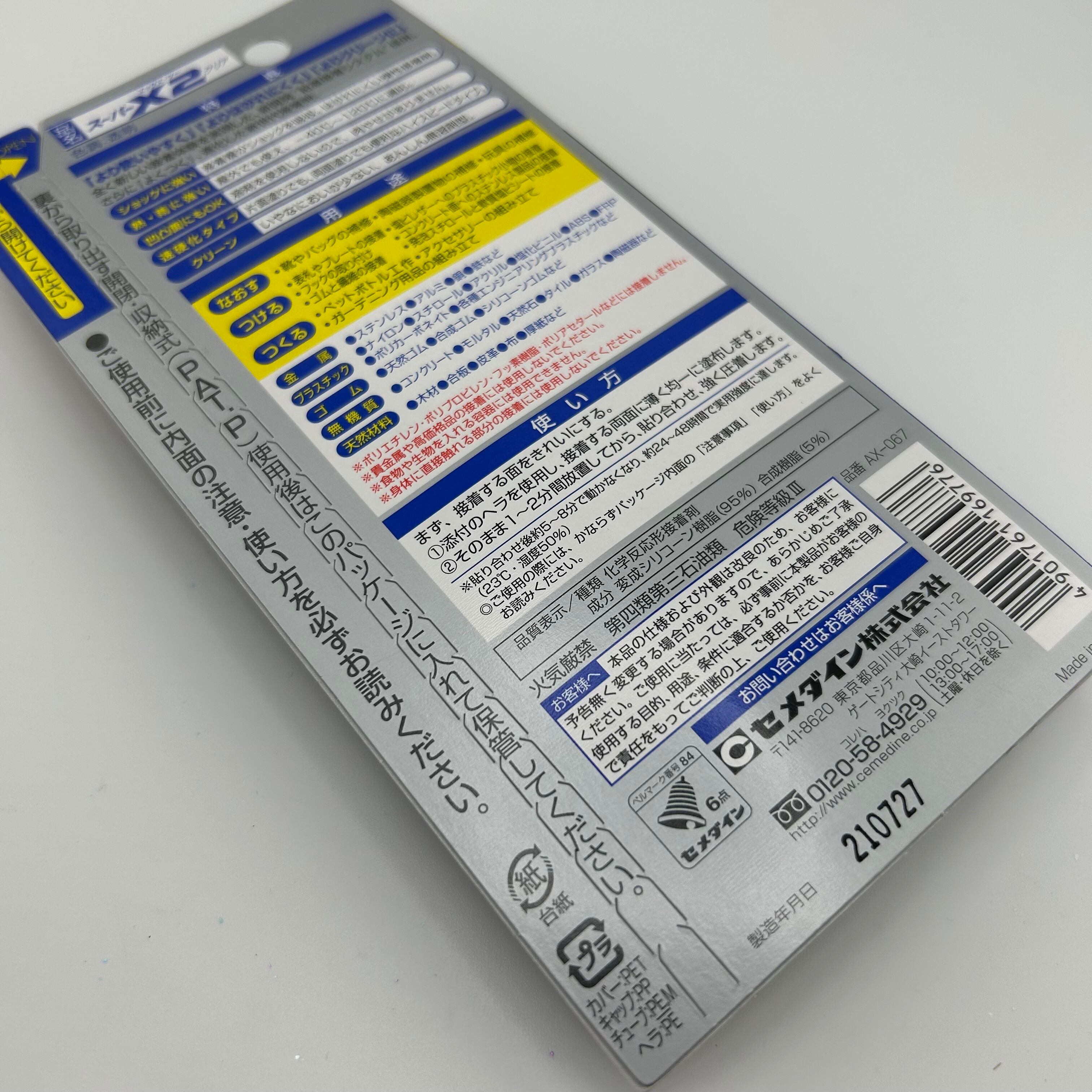 未使用・未開封の強力接着剤「セメダイン スーパーX2 クリア(速硬化タイプ)」です。