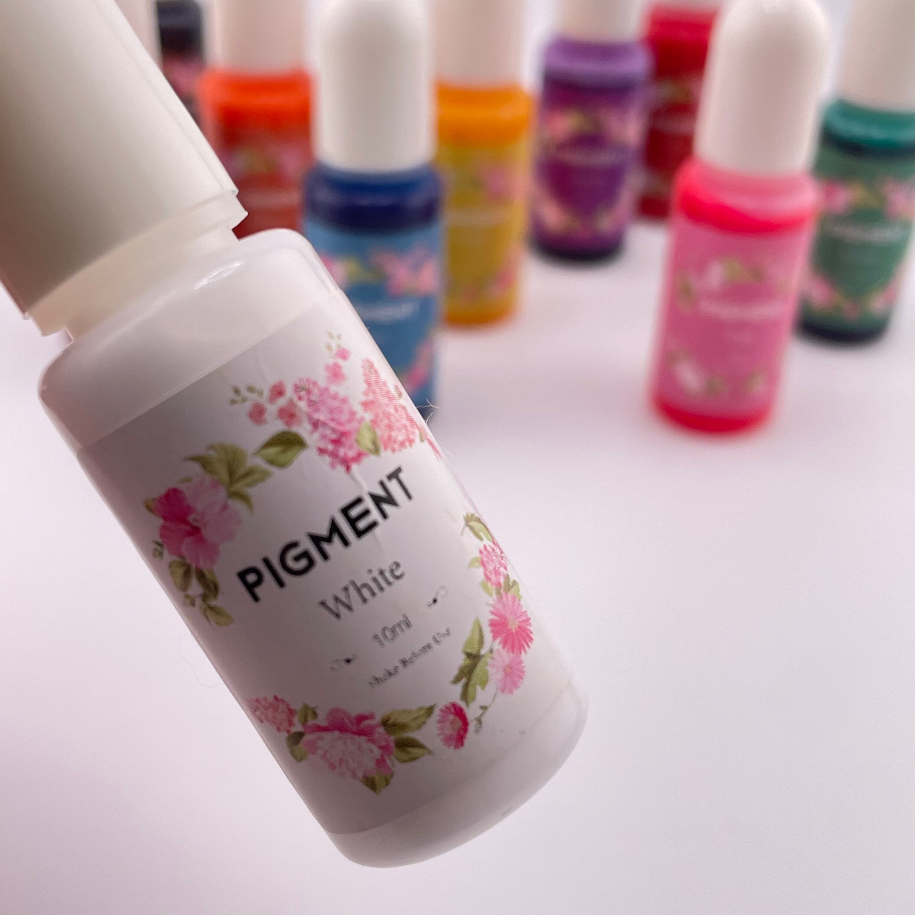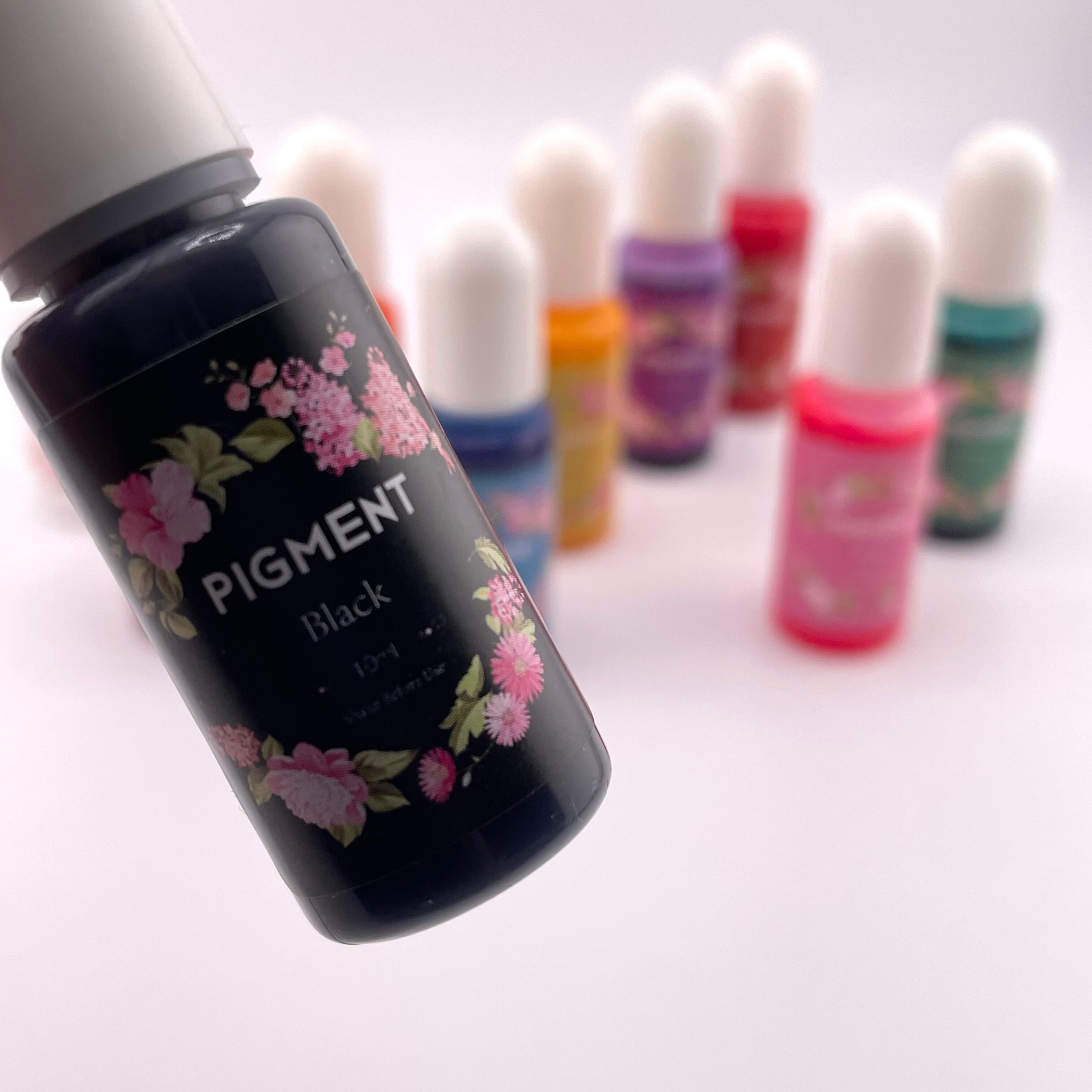 レジン着色に使える、花柄ラベルのUVレジン用カラーピグメント10色セットです。