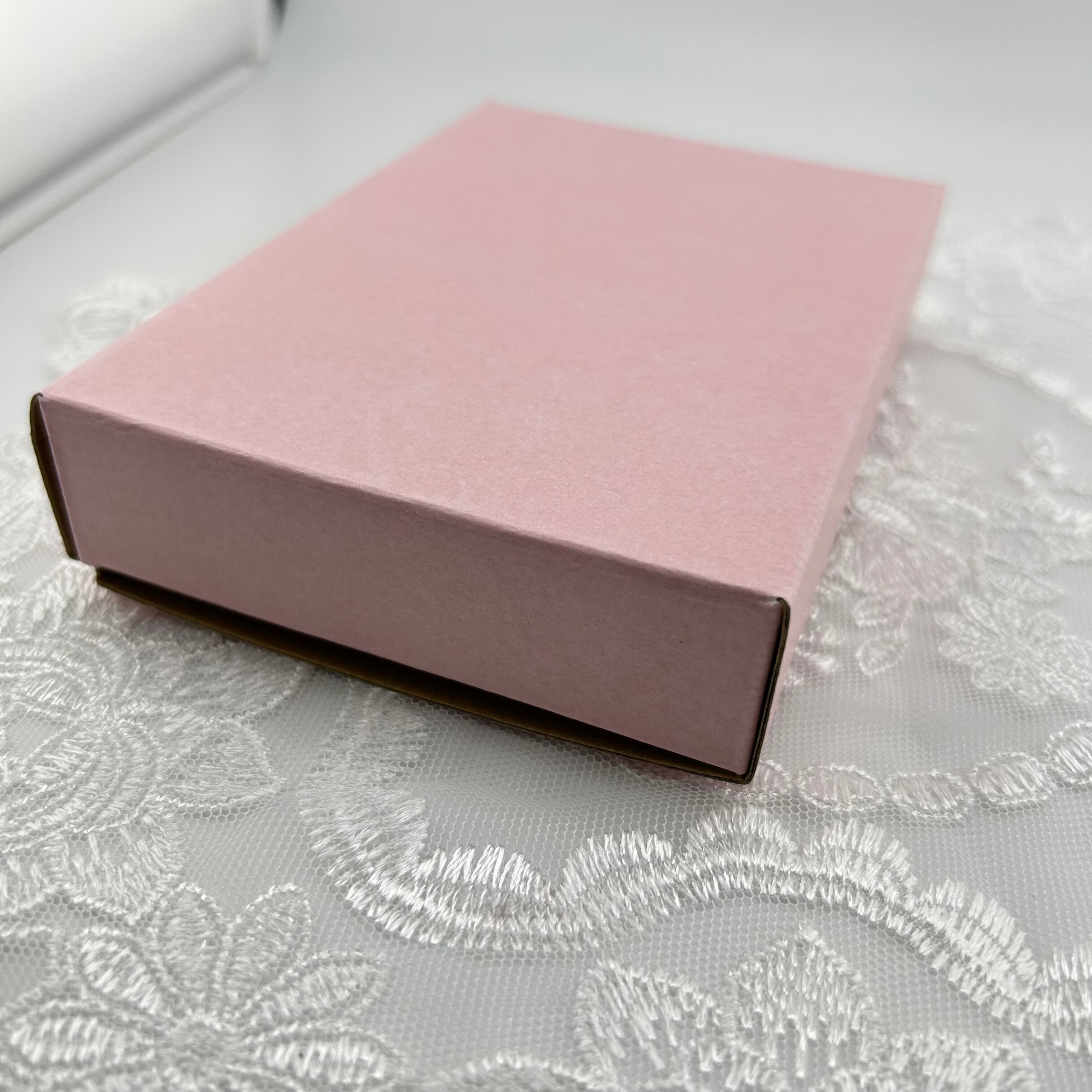 淡いピンク色がかわいらしい、組み立て式の紙製ギフトボックスです。