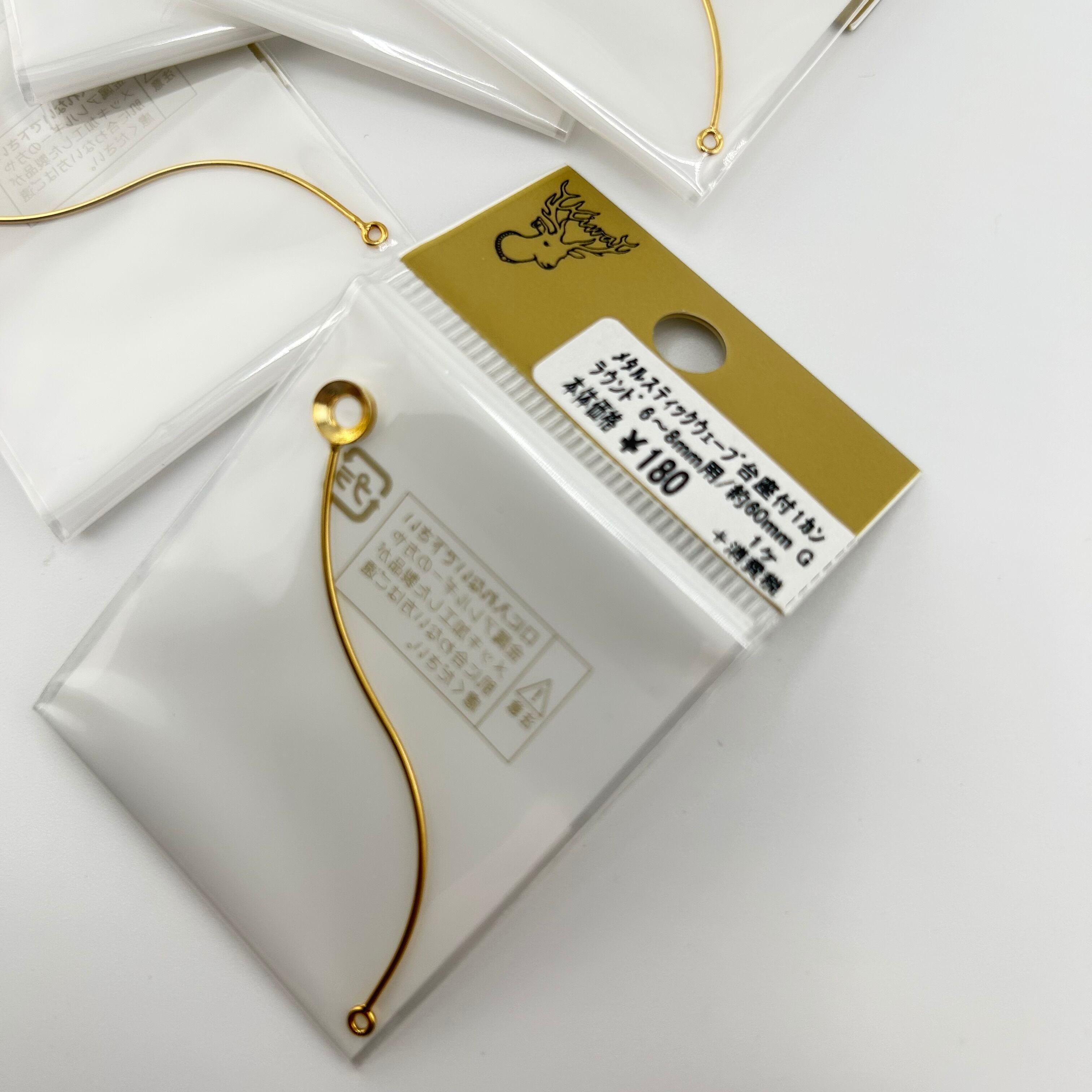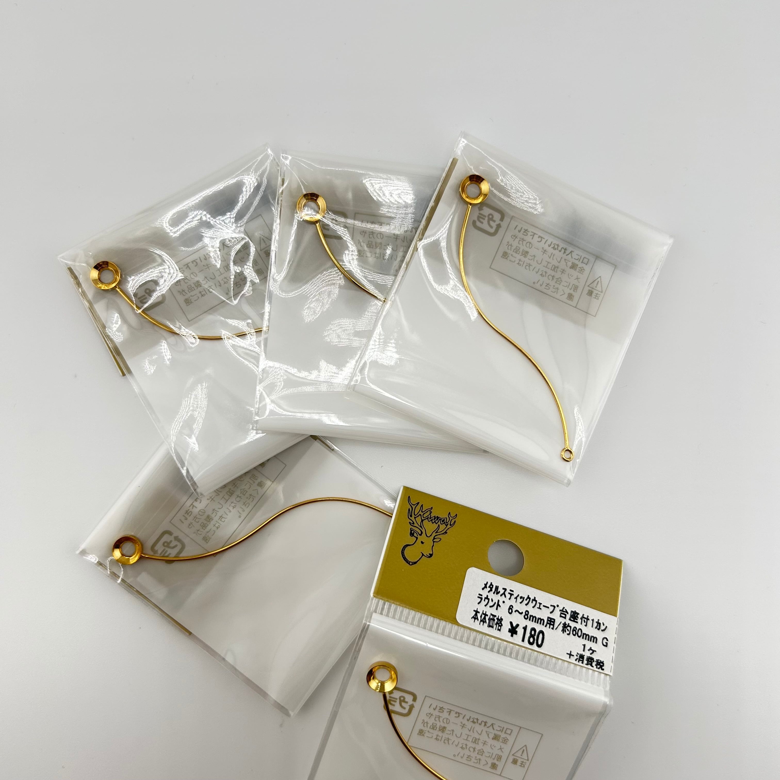 RP5754【リユース/5袋セット】貴和製作所 メタルスティックウェーブ 台座付き1カン/ラウンド8mm用 約60mm ゴールド