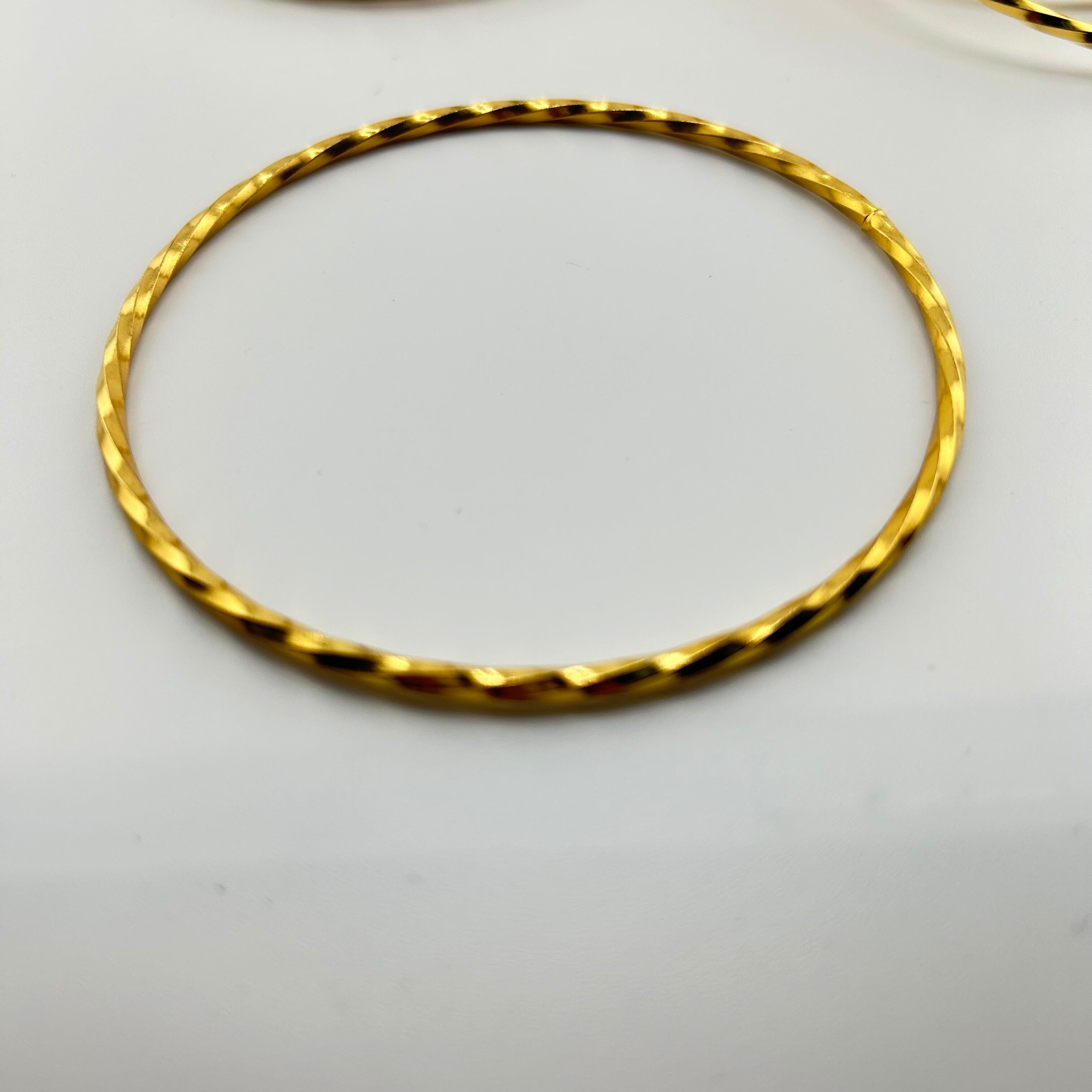 ツイスト加工が施された、ゴールドカラーの金属製リングです。
