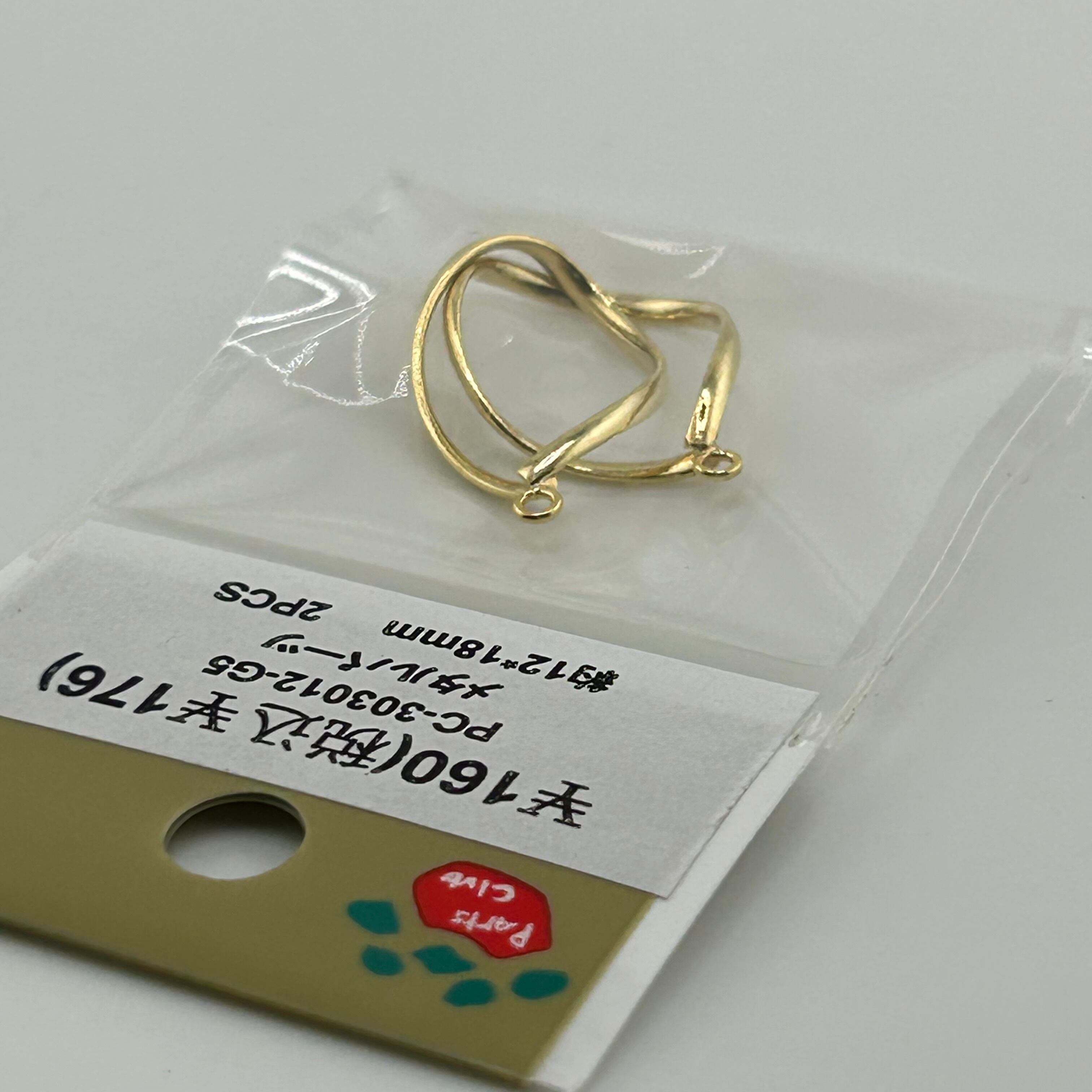 RP5767 メタルパーツ ツイストドロップフレーム 約12×18mm ゴールド 2個入り(リユース品)