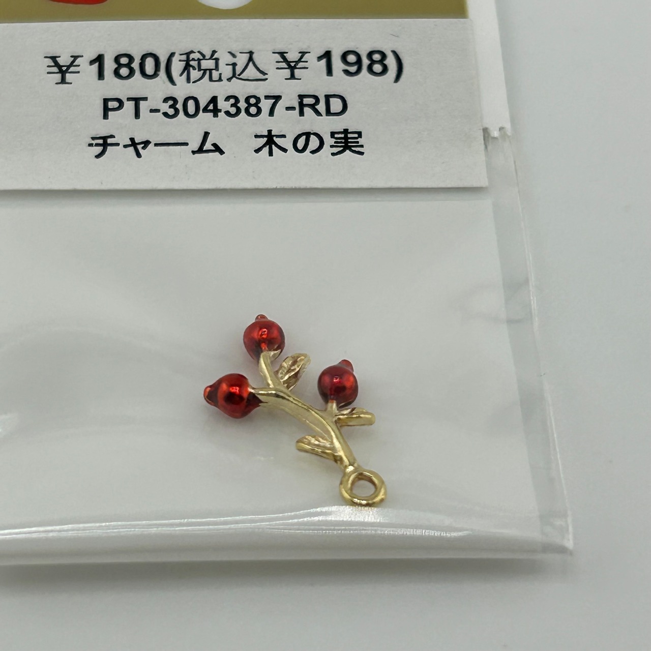 赤い実とゴールドの枝・葉をモチーフにした可愛らしいデザインで、季節感のあるアクセサリー作りにぴったりです。