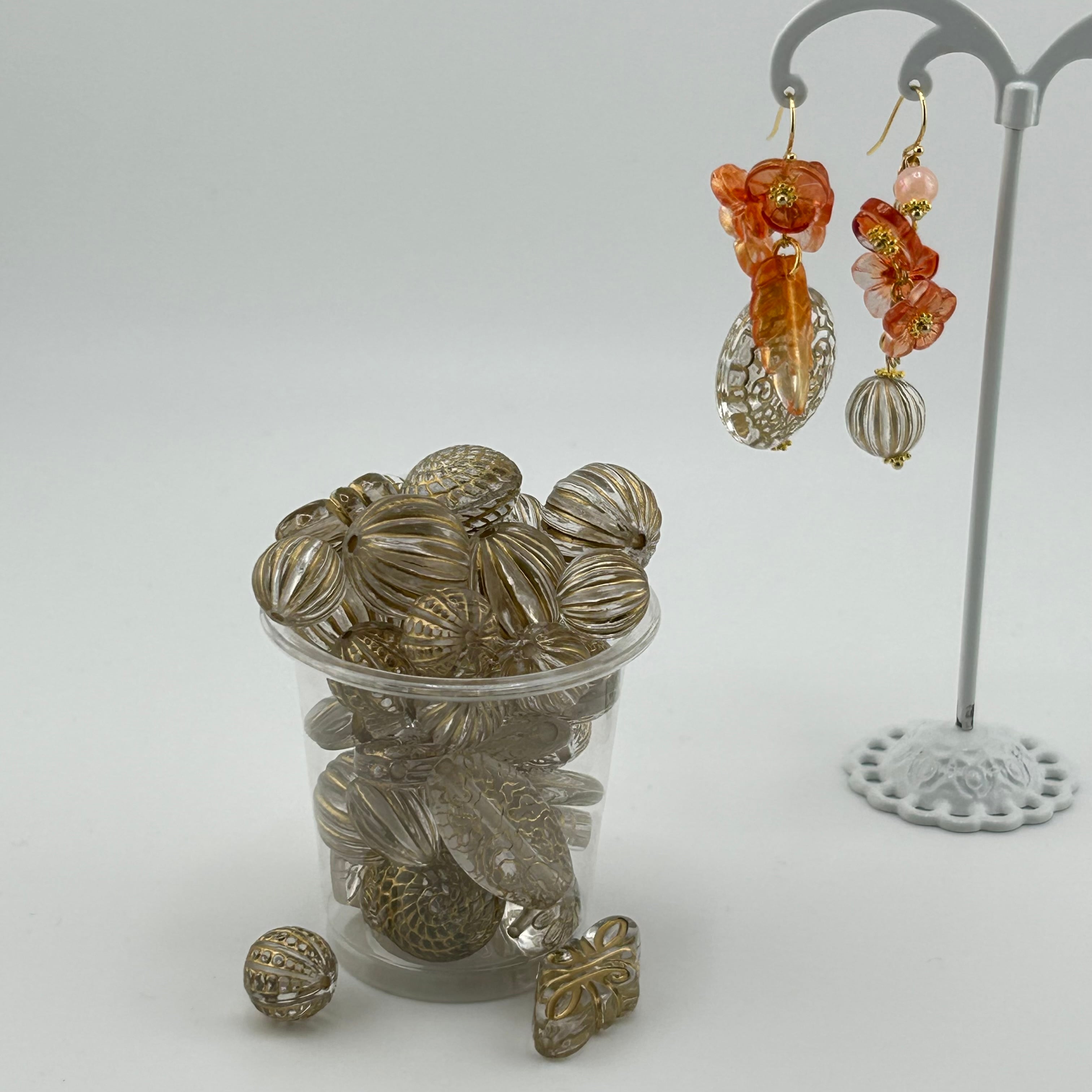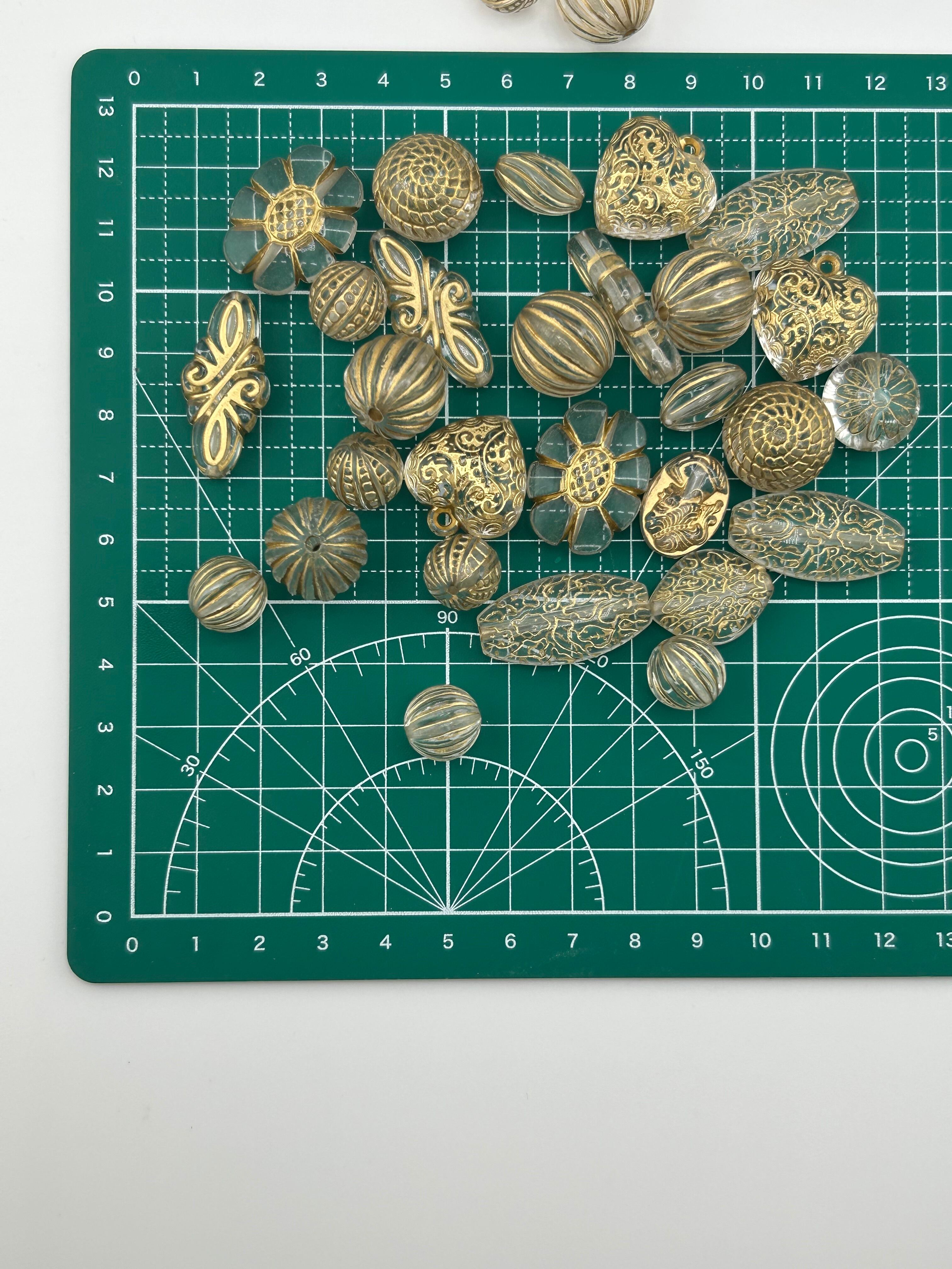 RP5769 ランダムエスニック樹脂ビーズ クリアゴールド約50g(1すくい/リユース品)
