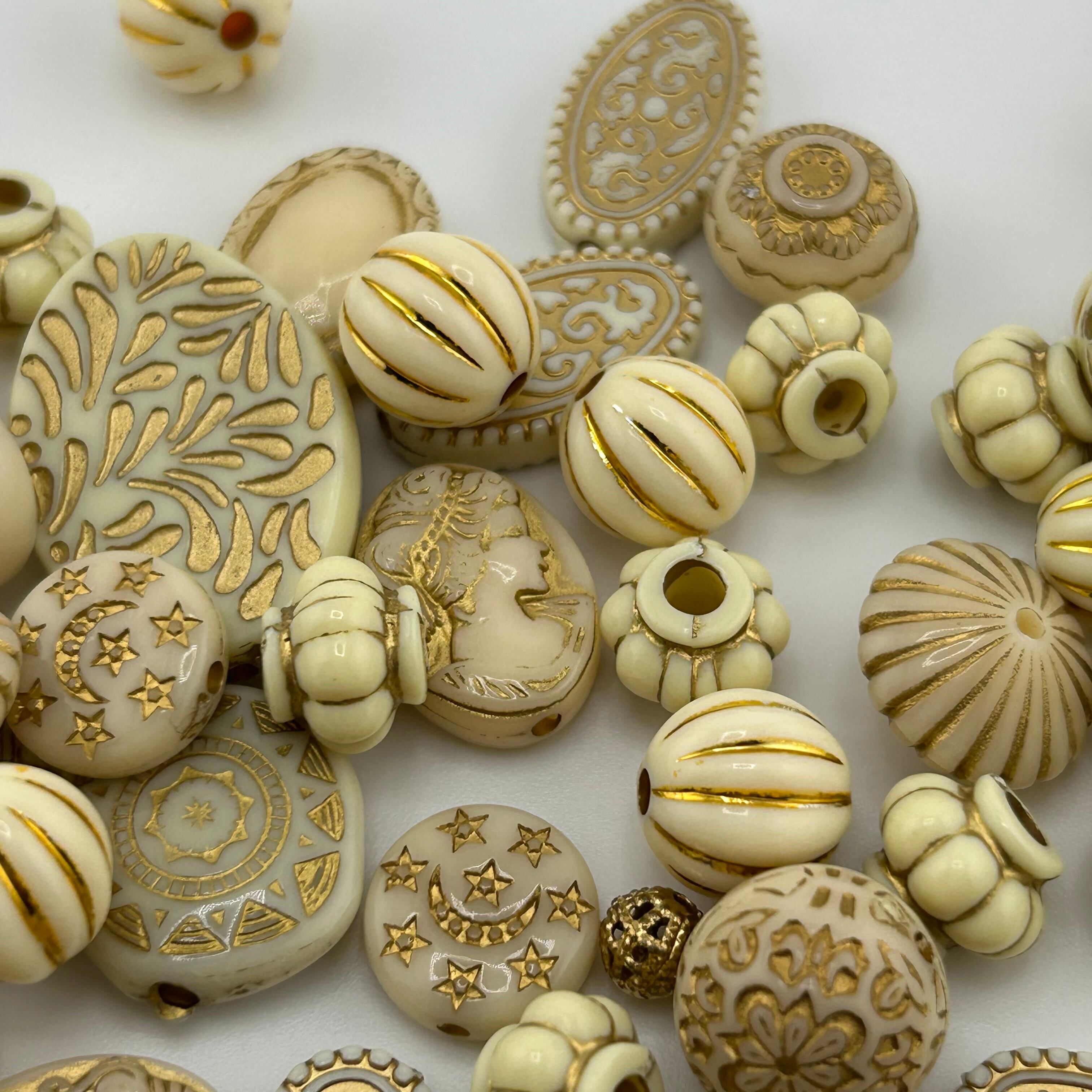 RP5771 ランダムエスニック樹脂ビーズ クリームゴールド 約50g(1すくい/リユース品