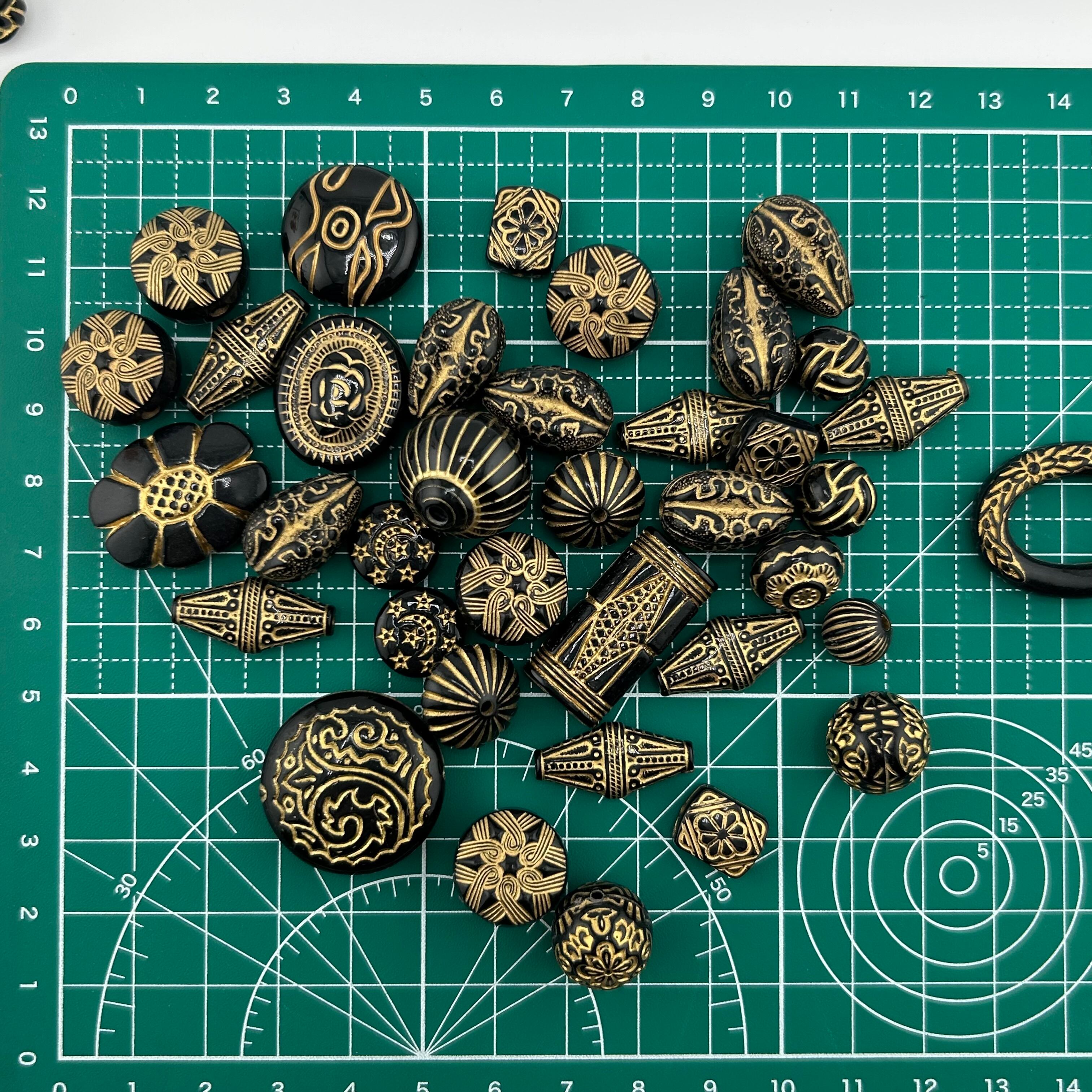 黒地にゴールドの模様が映えるデザインで、シックで高級感のあるアクセサリー作りにおすすめです。