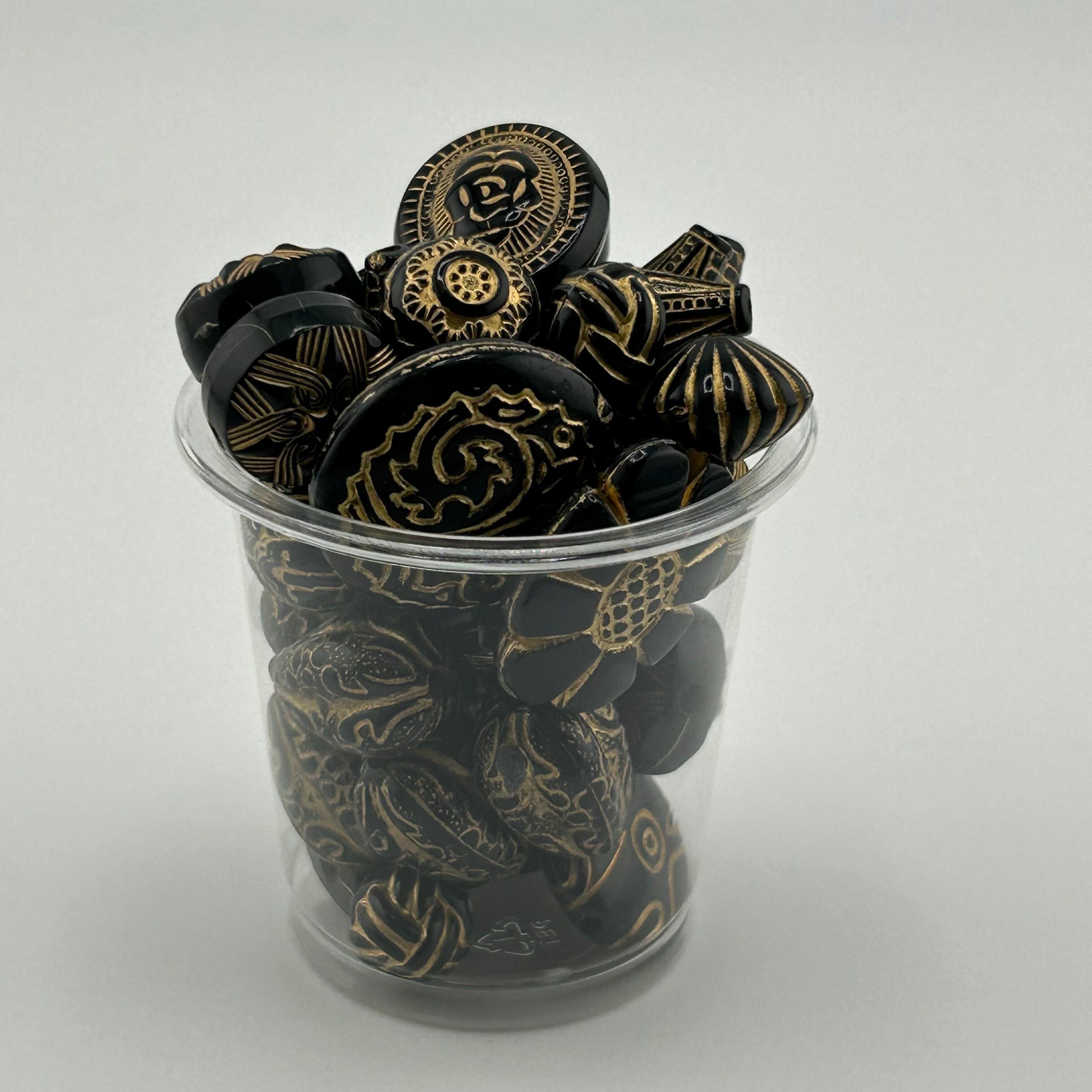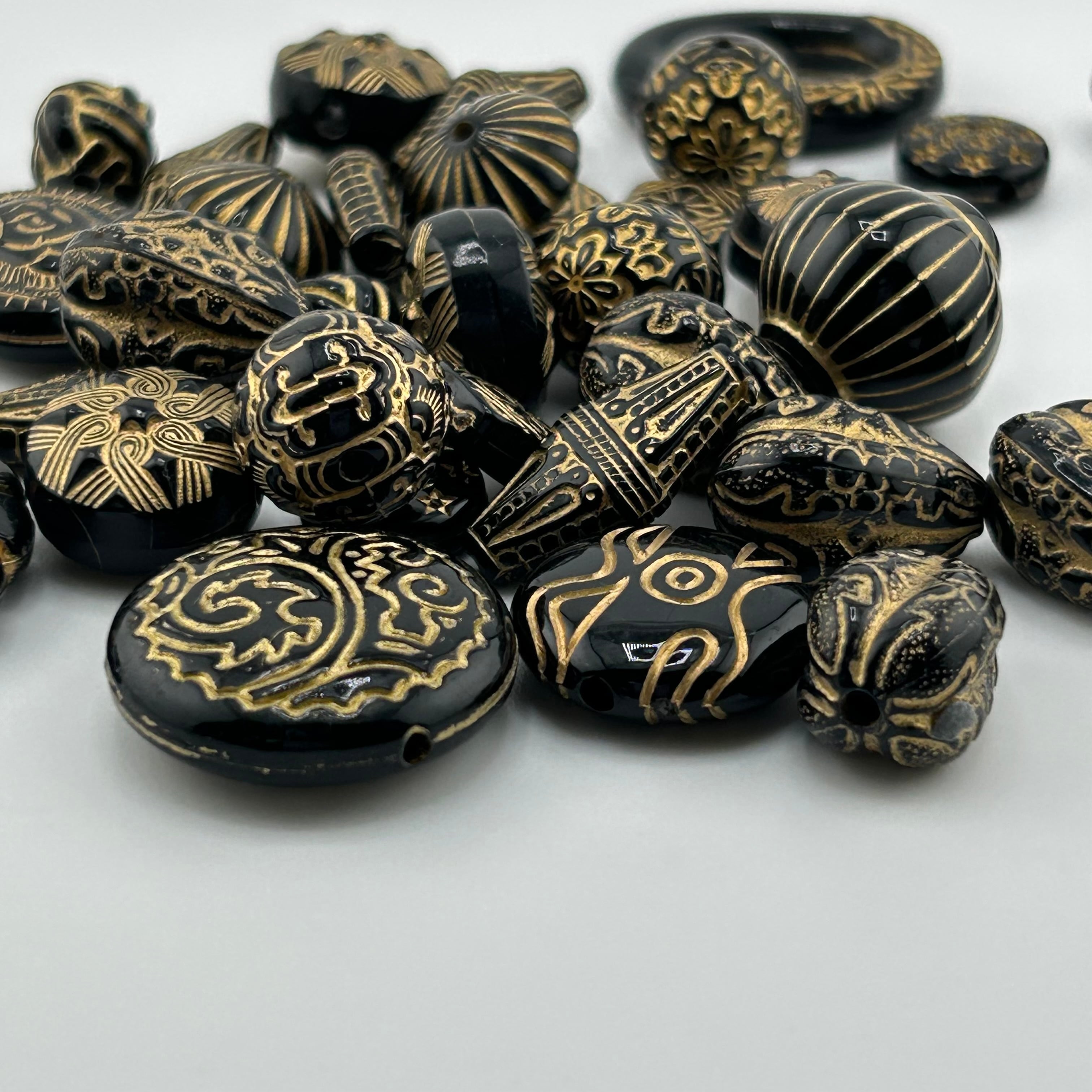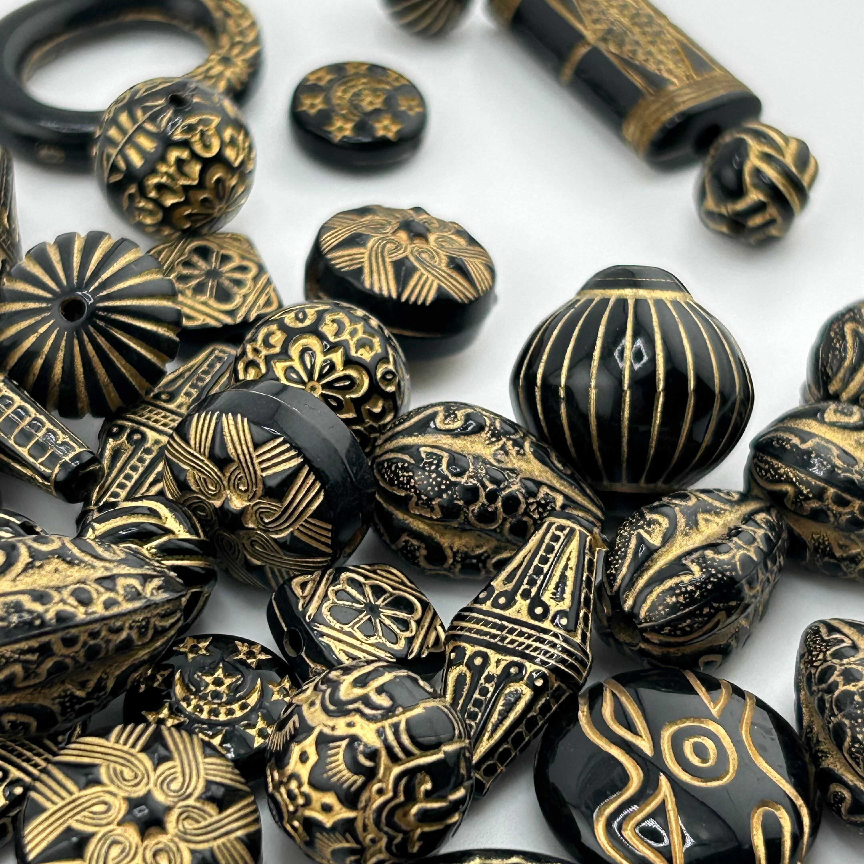 RP5772 ランダムエスニック樹脂ビーズ ブラックゴールド 約50g(1すくい/リユース品)