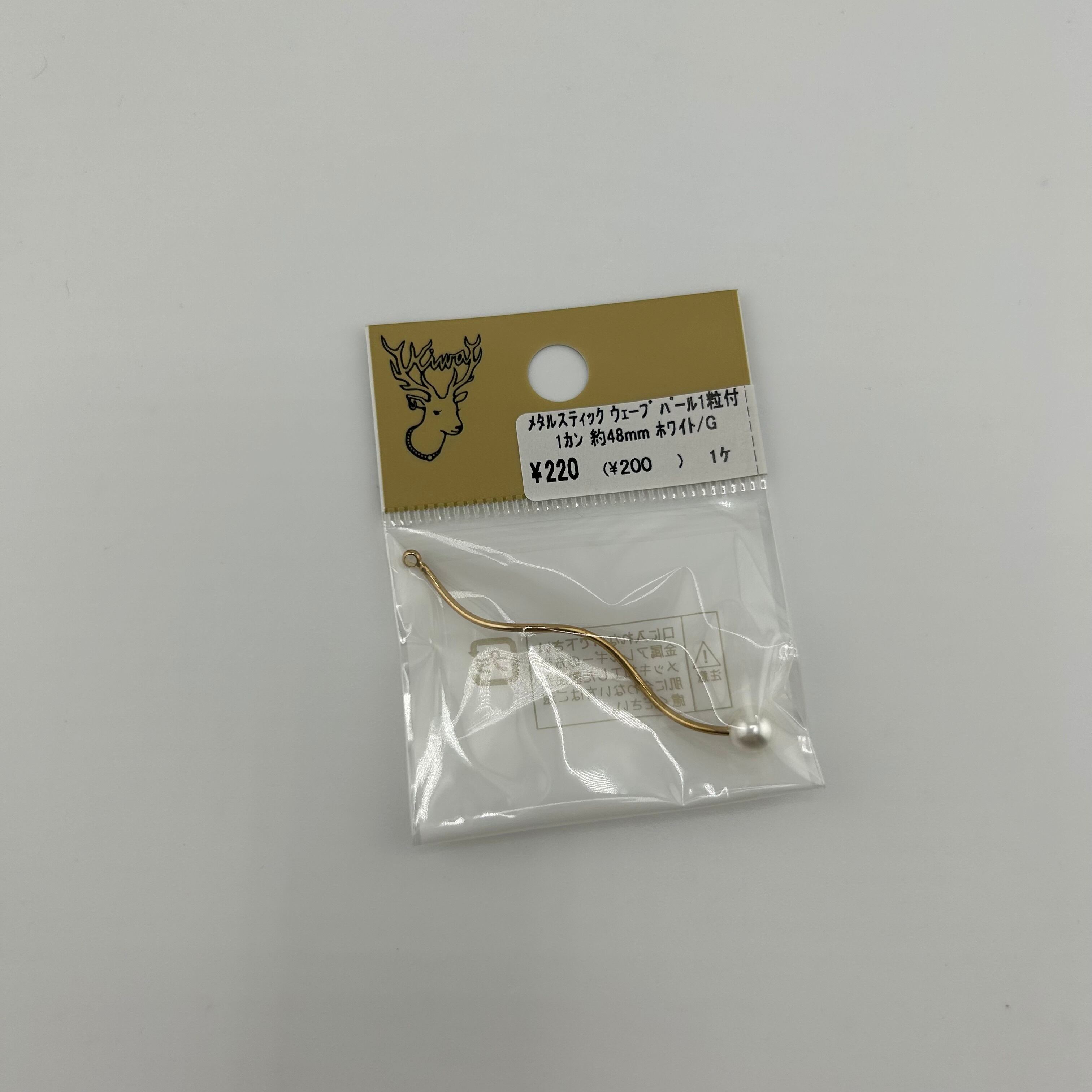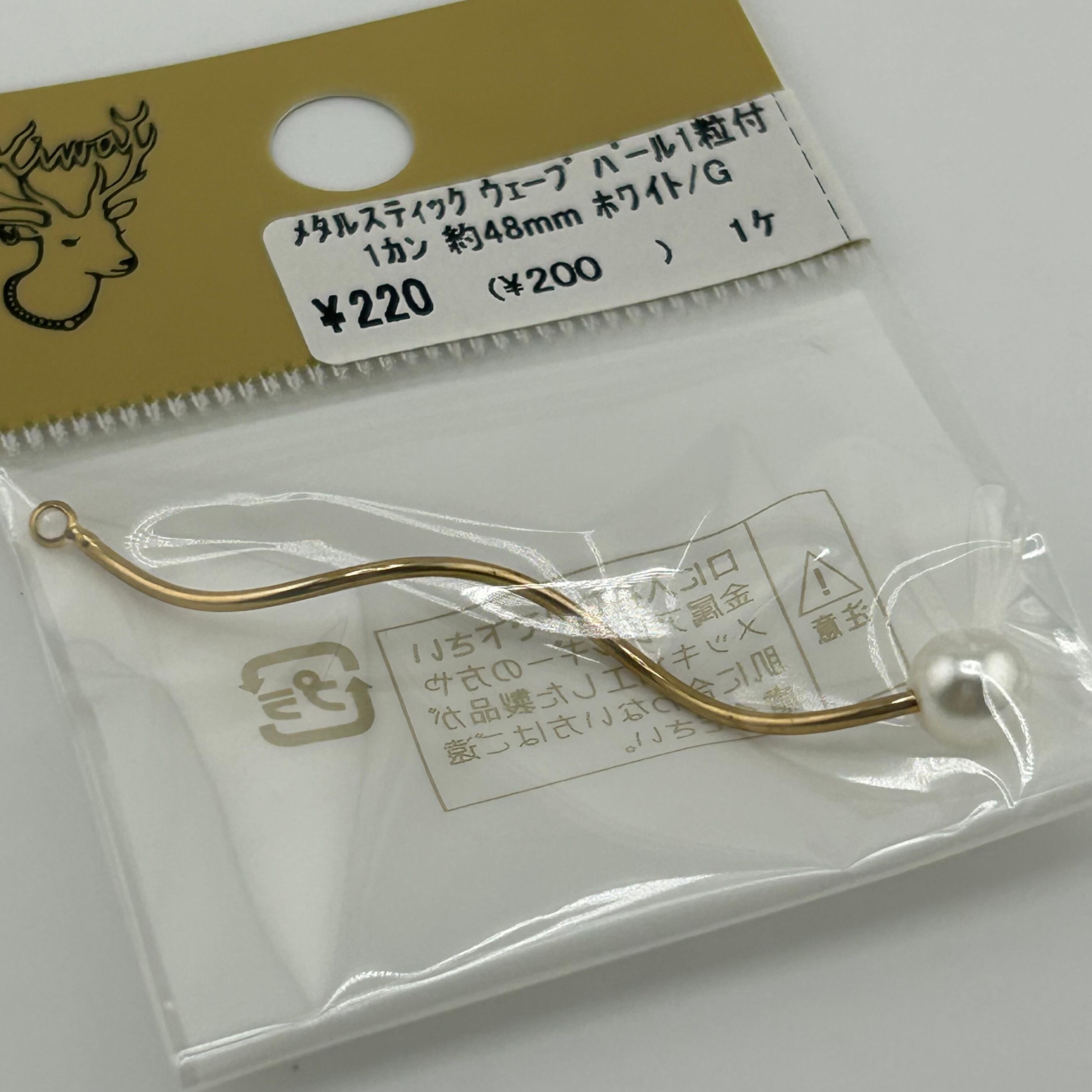 RP5774 メタルスティック ウェーブ パール1粒付 約48mm ホワイト/ゴールド 1本(リユース品)