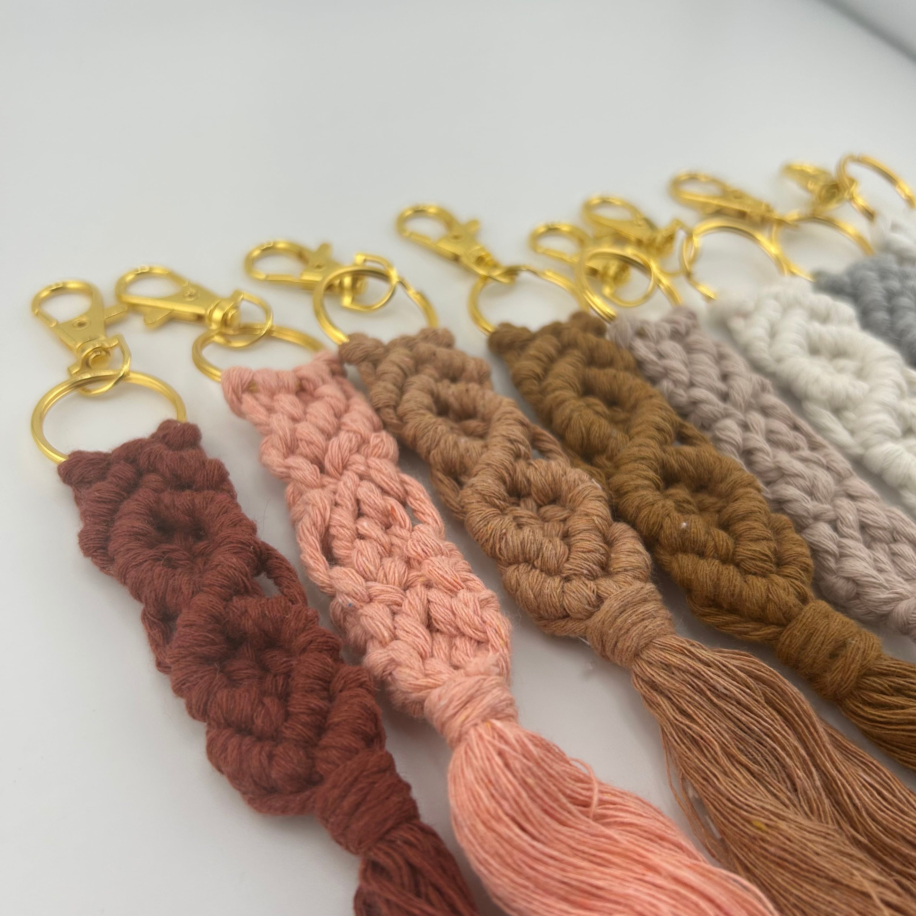 マクラメ風タッセルキーホルダー8本セットです。