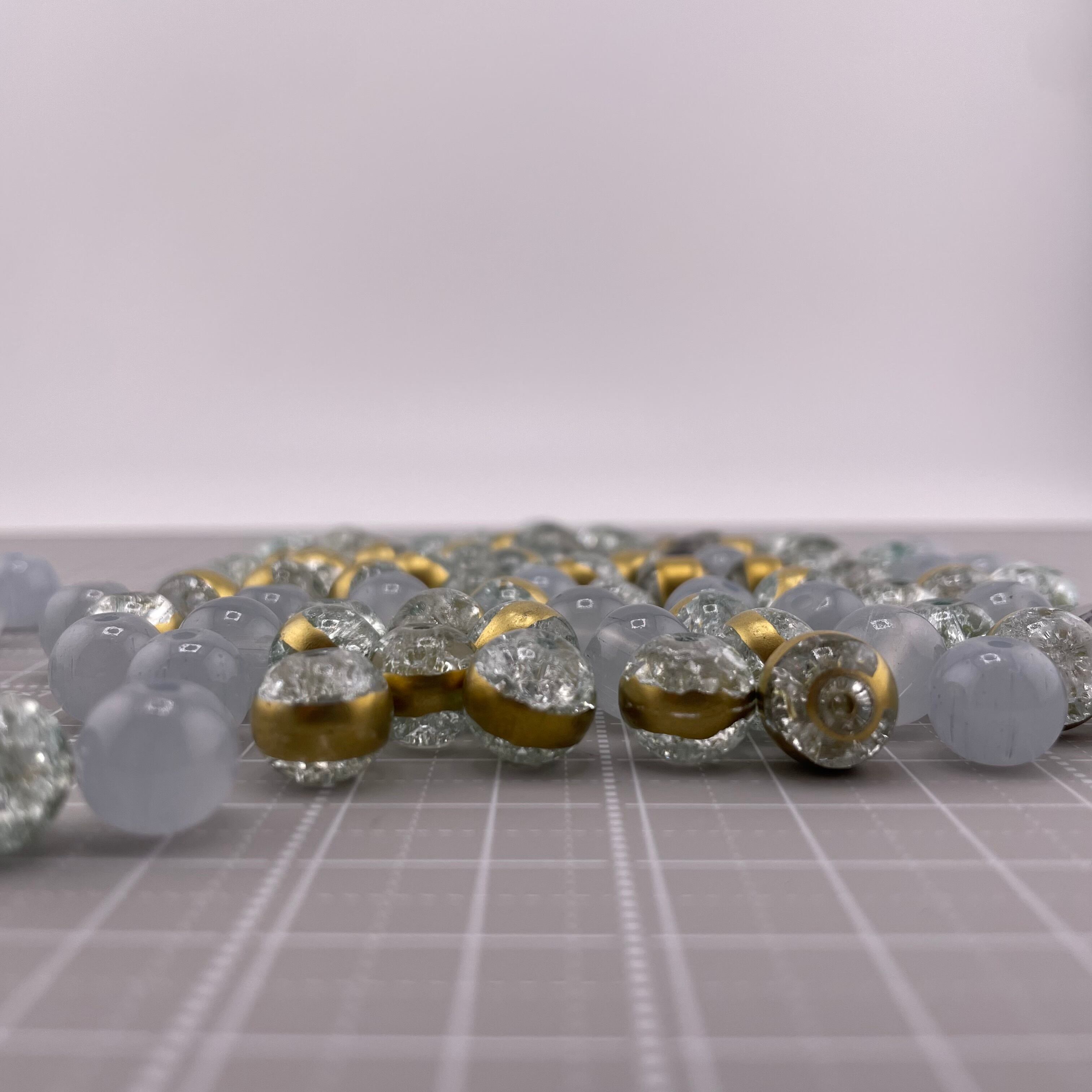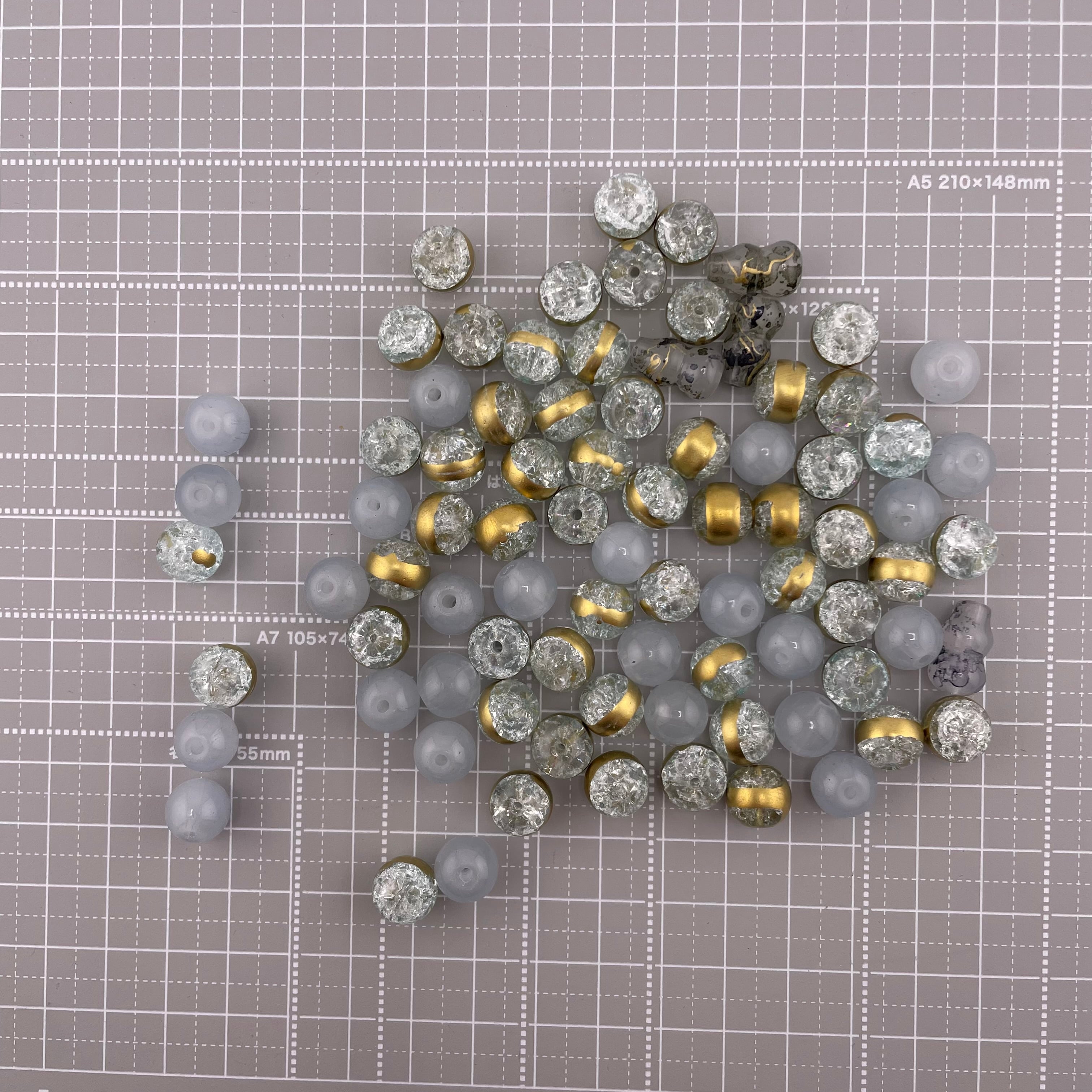 クリア・ホワイト系を中心に、透明感のあるクラックビーズやマーブル調など様々なデザインが入っています。ランダムミックスなので、ハンドメイド作品に個性と華やかさをプラスできます。