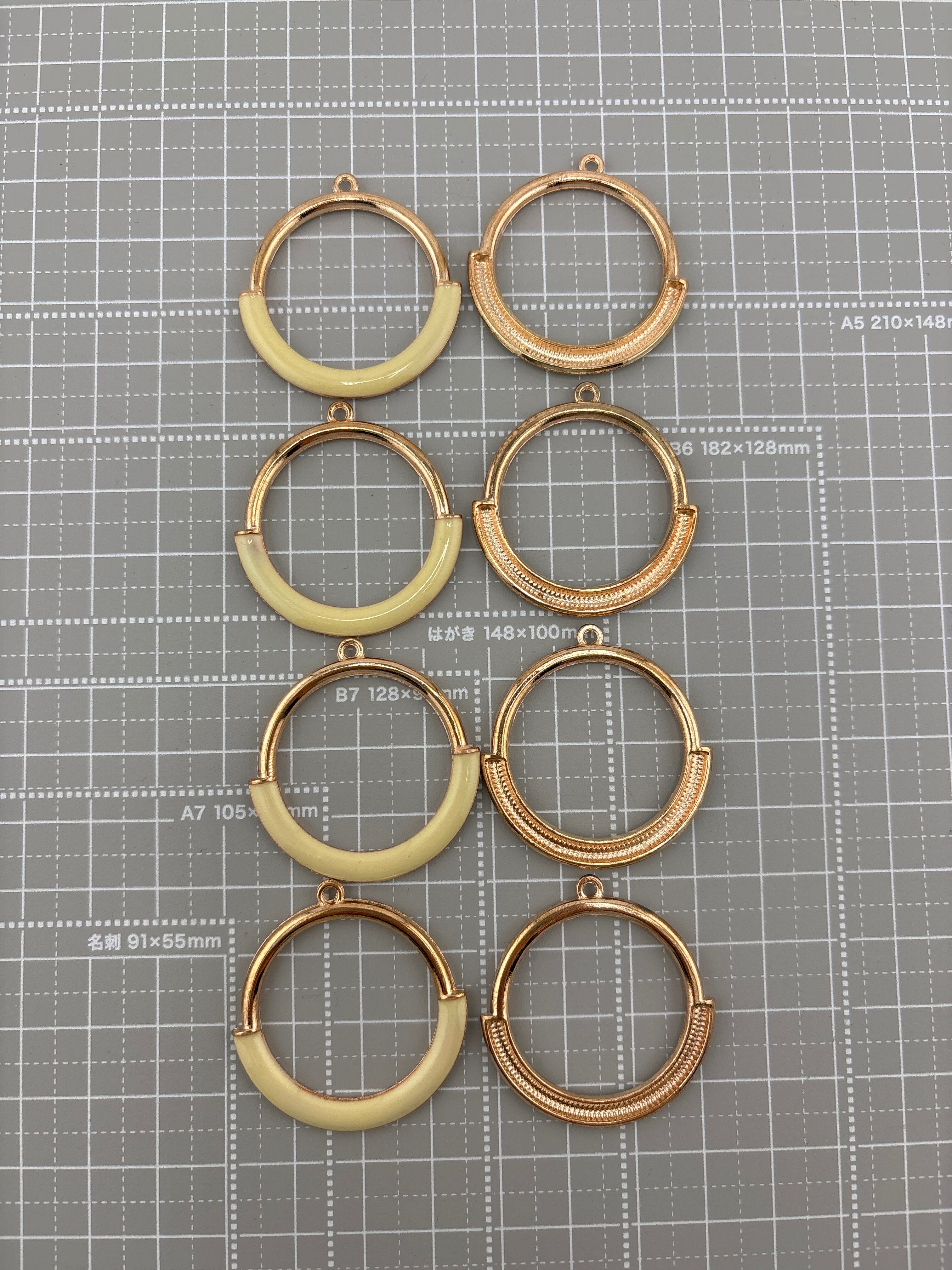 リユースパーツ No.46 アイボリー×ゴールド フープチャーム 約35mm 現状お渡し【現品限り】