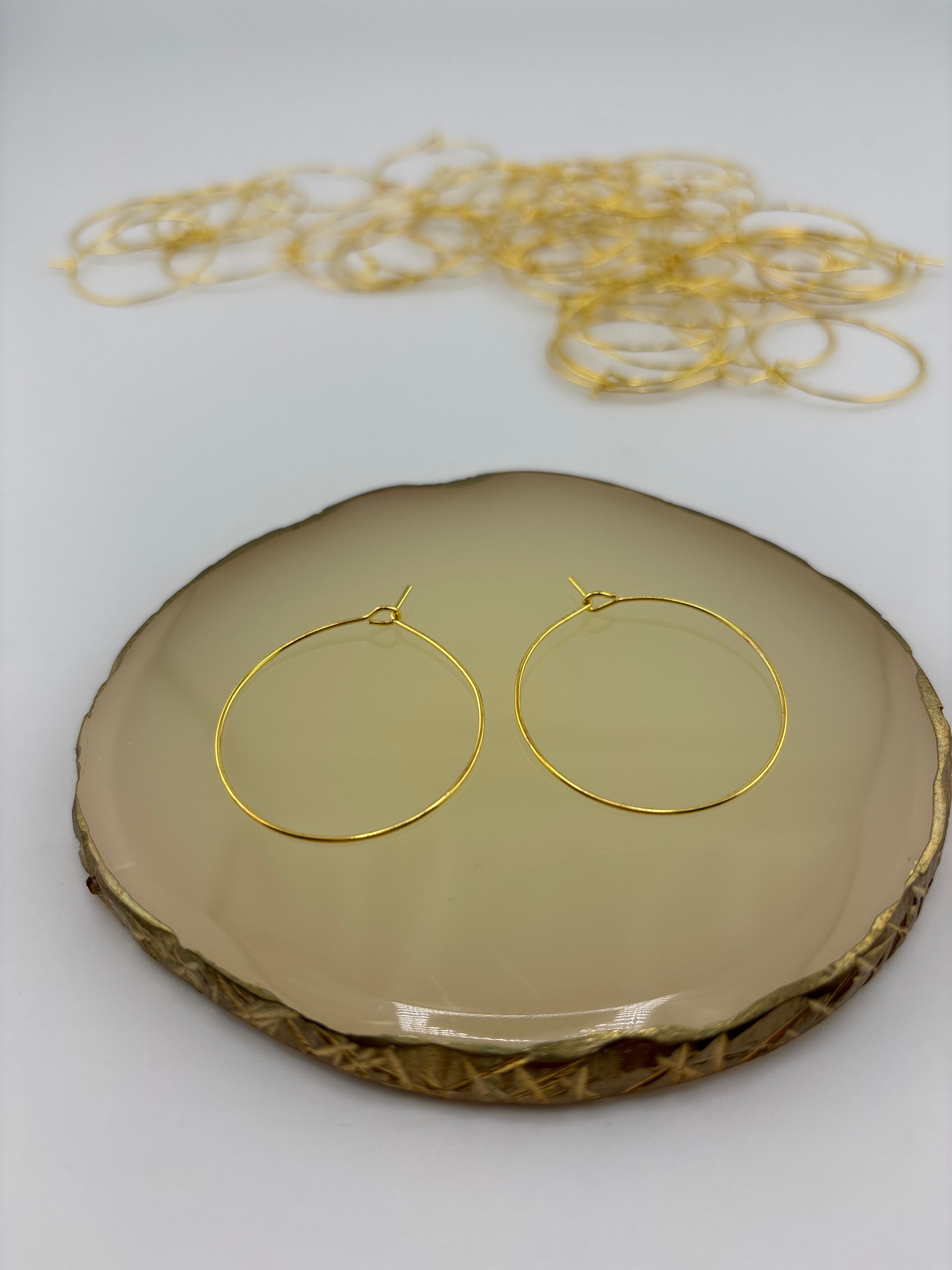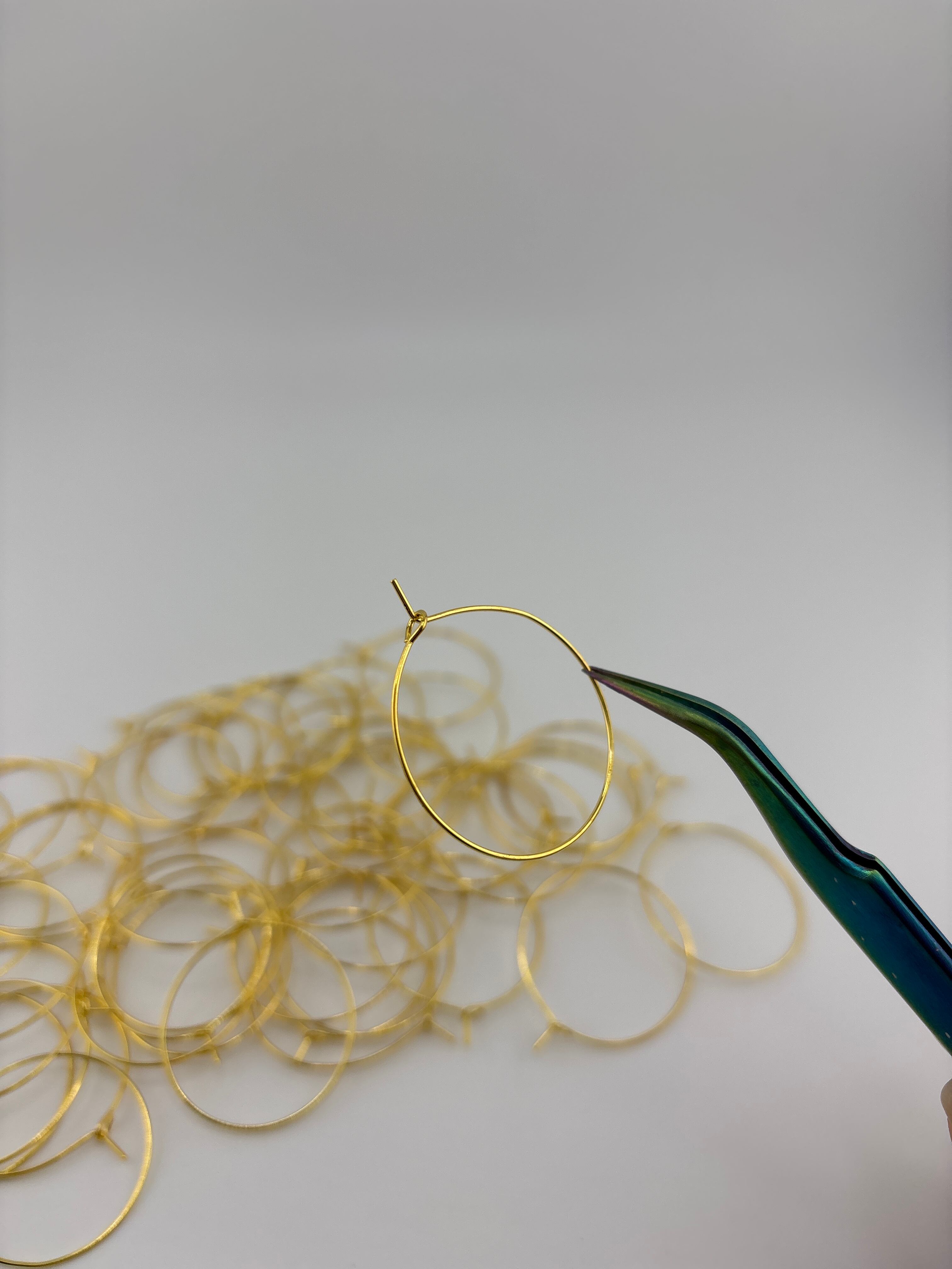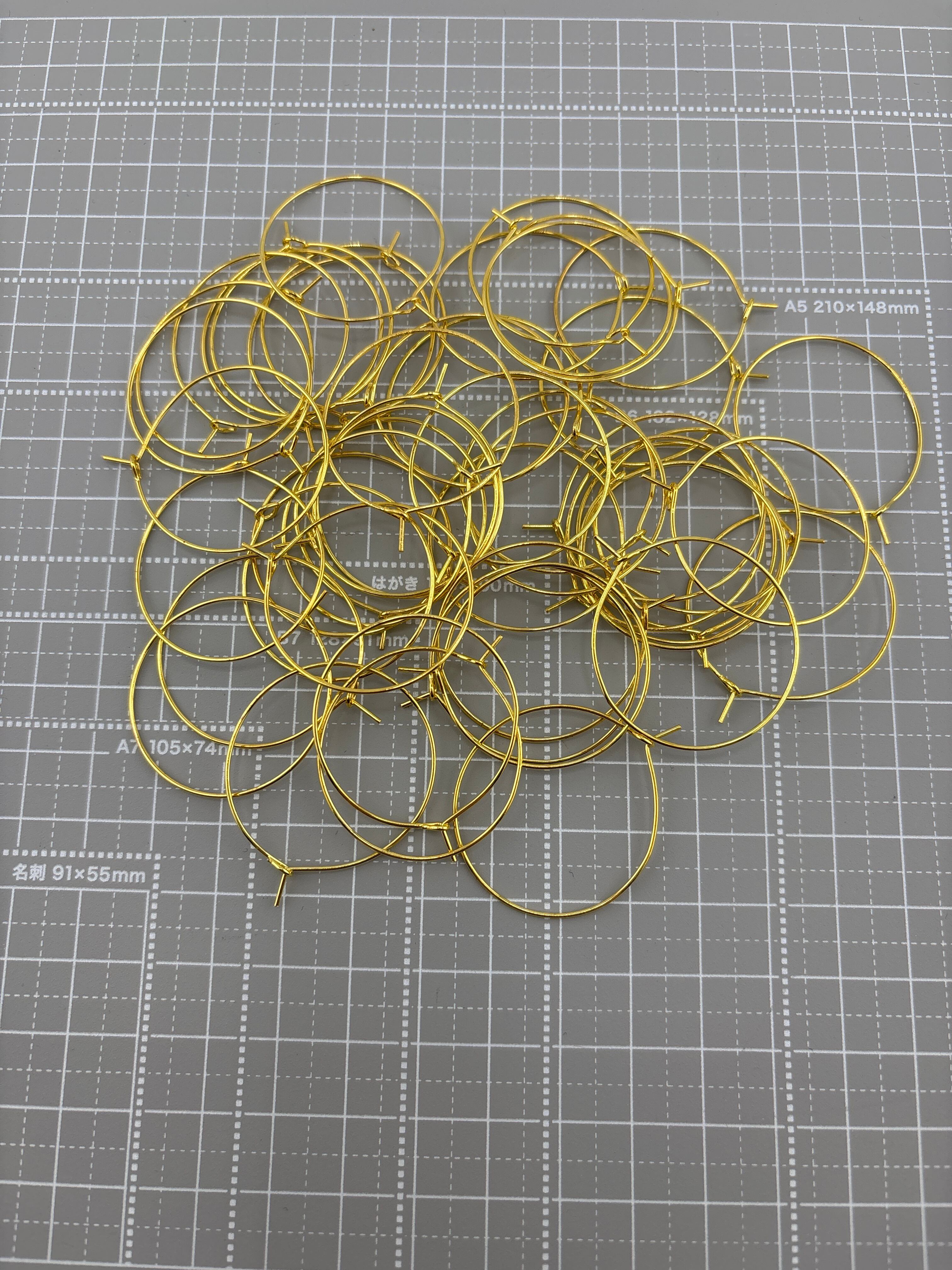 シンプルで使いやすい細身タイプのフープピアスベース。軽やかで繊細な印象に仕上がり、ビーズやチャームを通すだけでオリジナルのアクセサリーを簡単に制作できます。