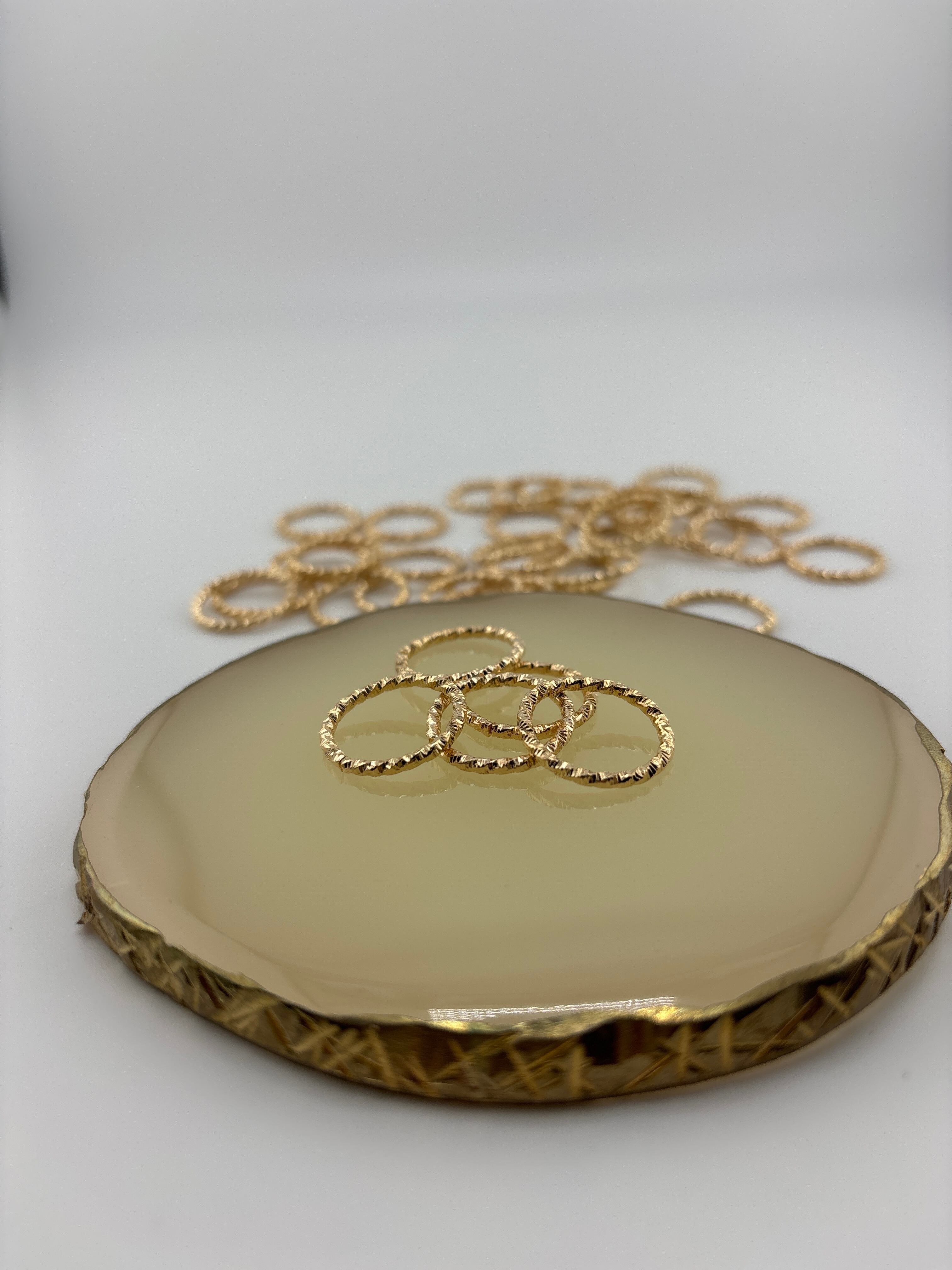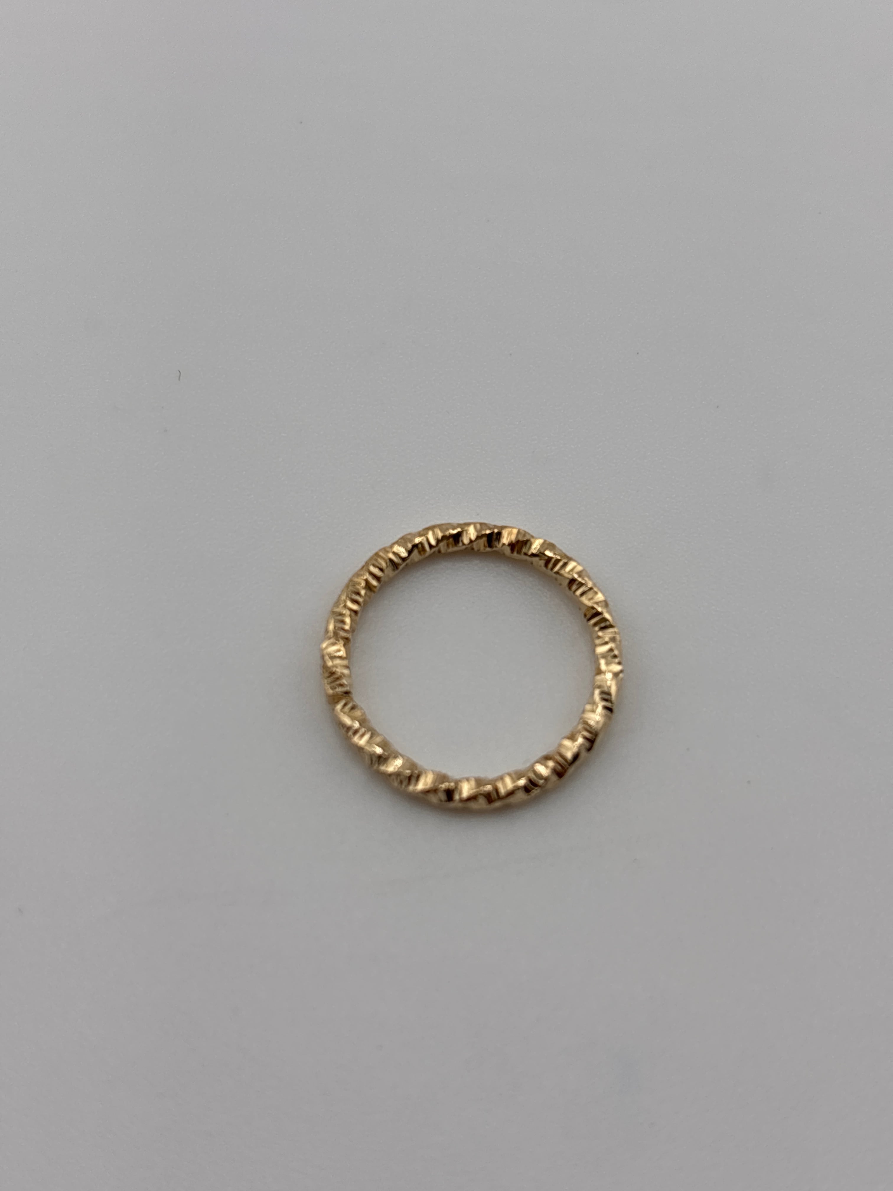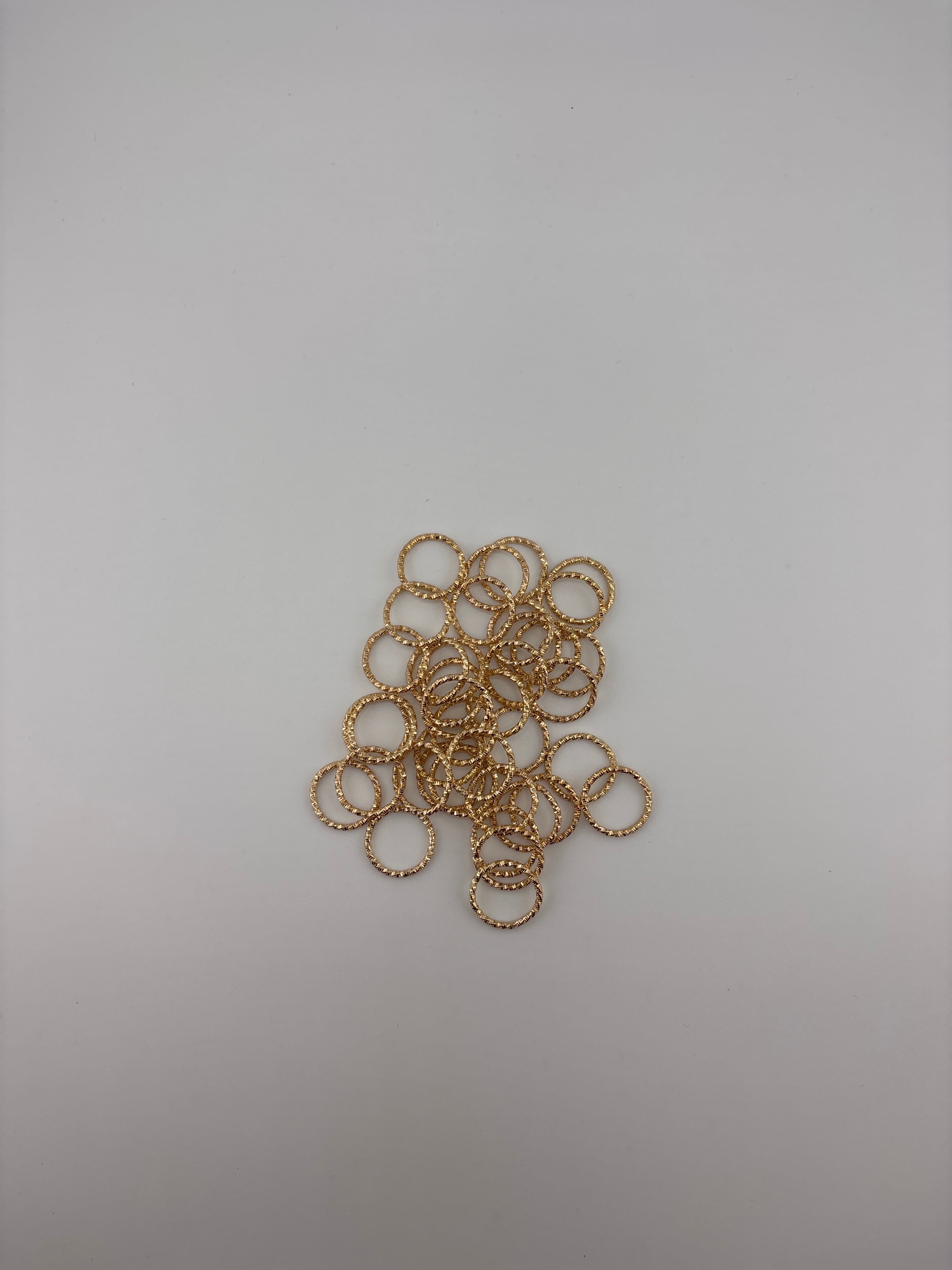 表面にデザイン加工が施された18mmの丸カンです。通常の丸カンよりも存在感があり、アクセサリーのアクセントにぴったり。イヤリングやピアス、ネックレス、チャーム制作など幅広く活用できます。