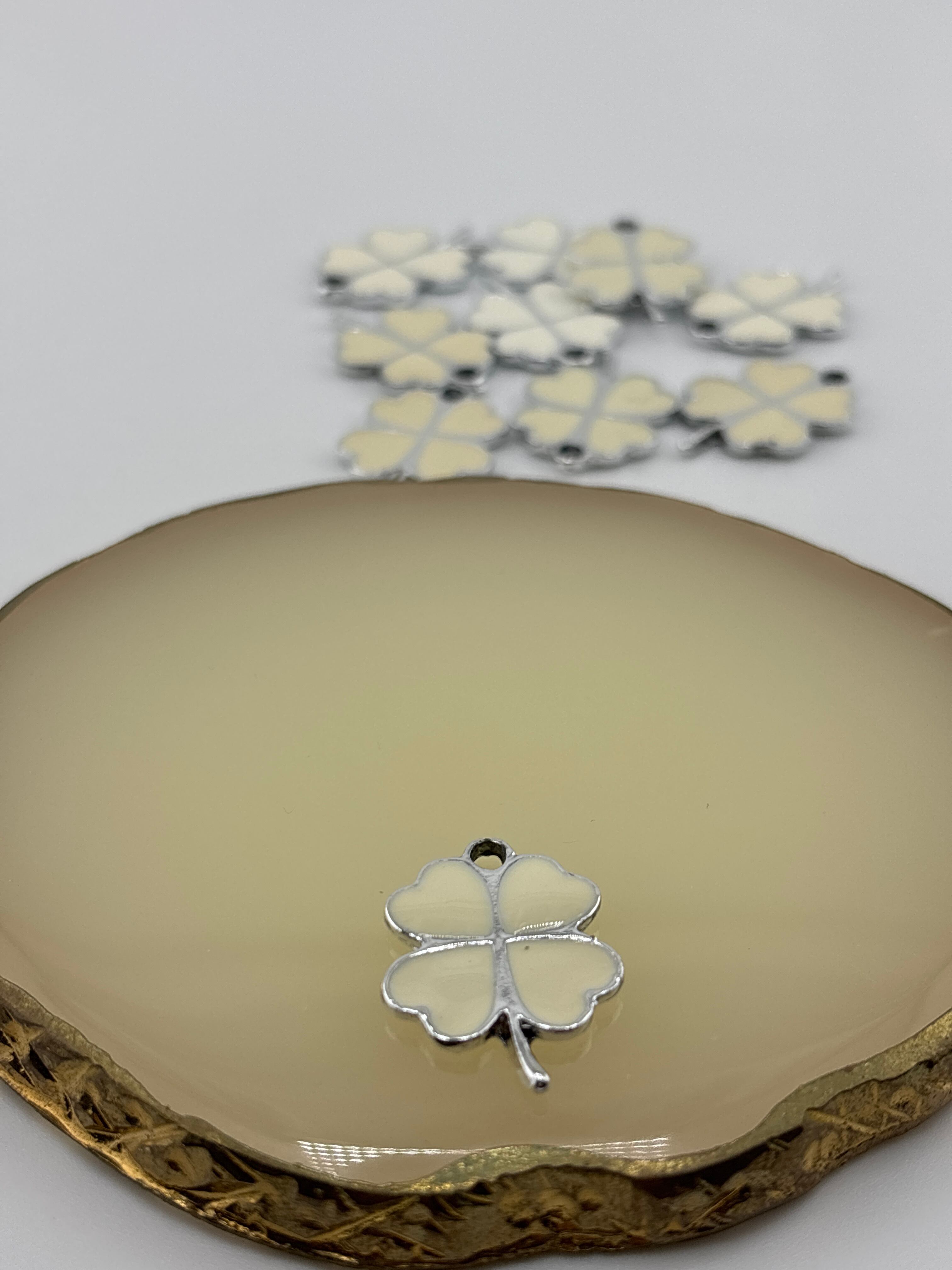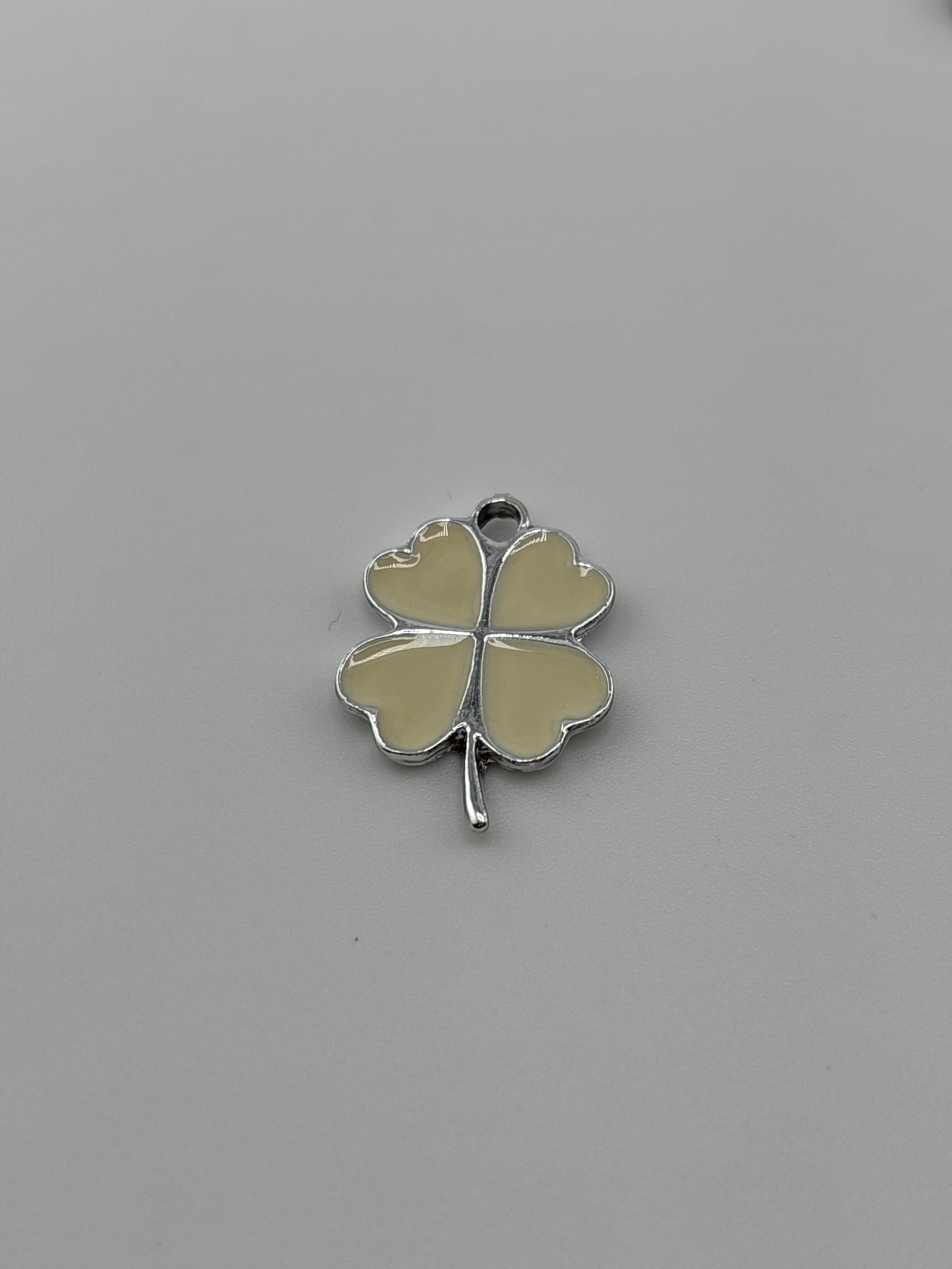 四つ葉のクローバーモチーフが可愛いシルバーフレームのチャームです。
