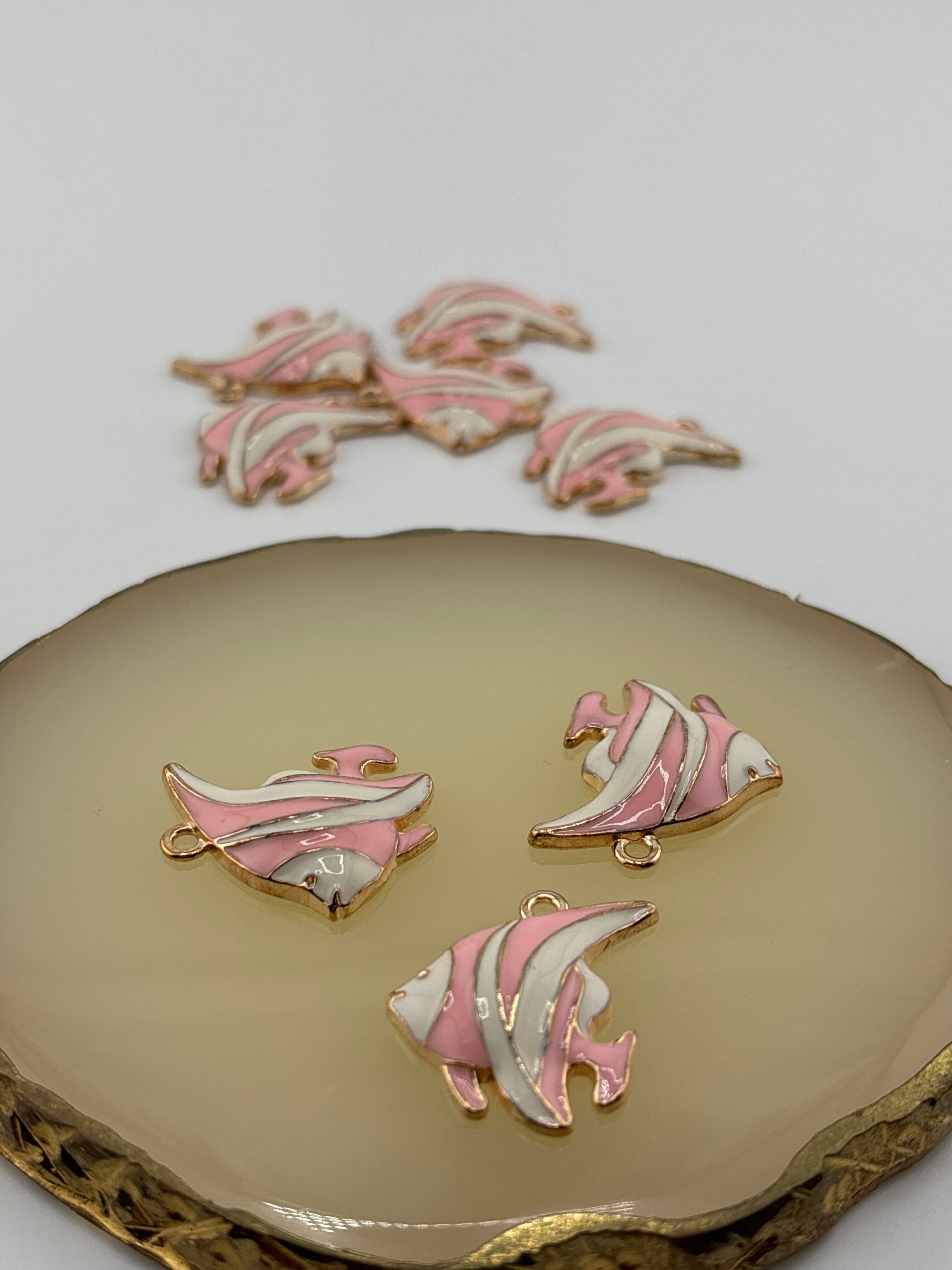 No.05 リユースパーツ チャーム 熱帯魚 ピンク×ホワイト 8個入り