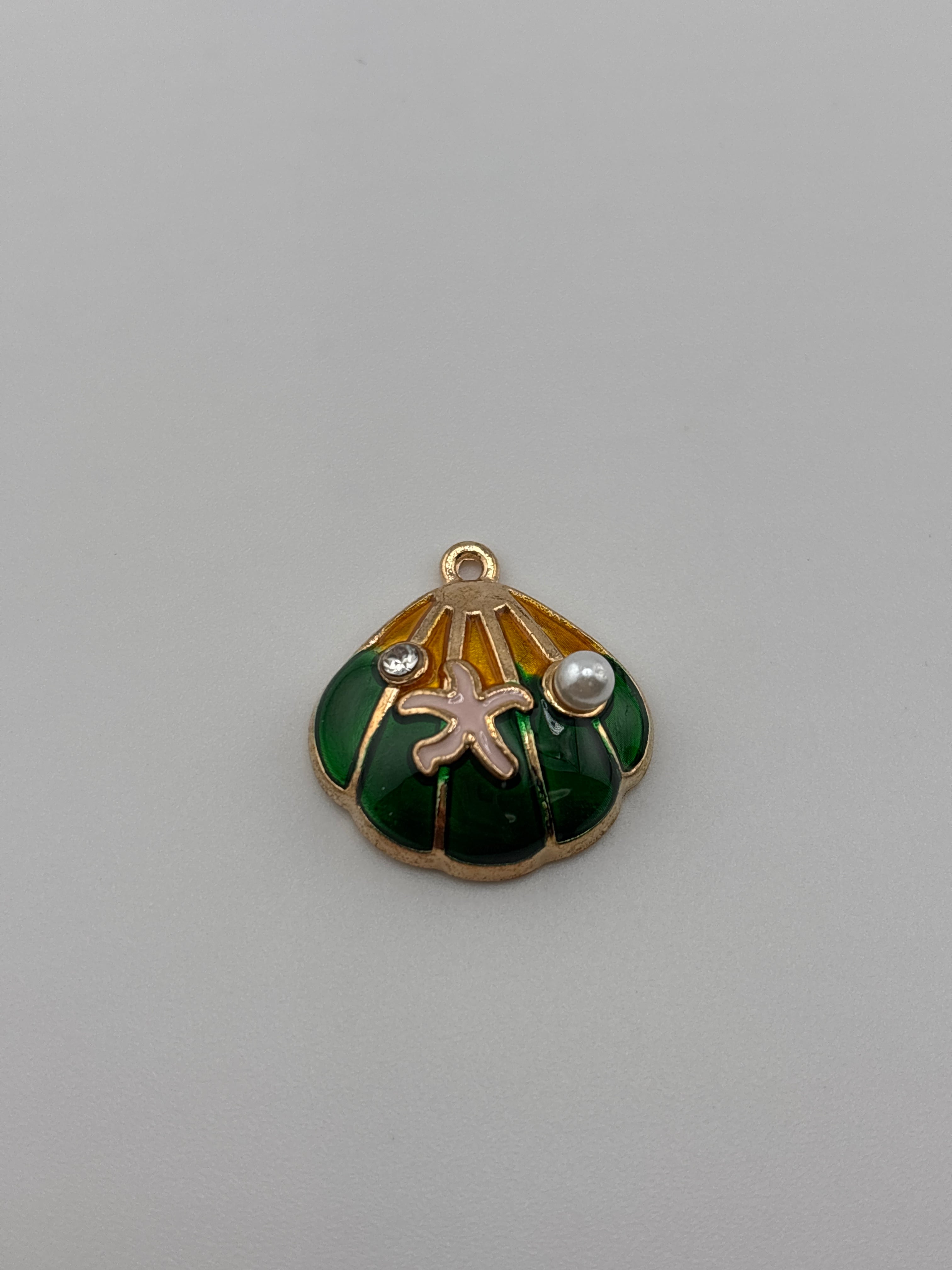 貝殻をかたどったモチーフに、ヒトデ・パール・ラインストーンがあしらわれた華やかなチャームです。