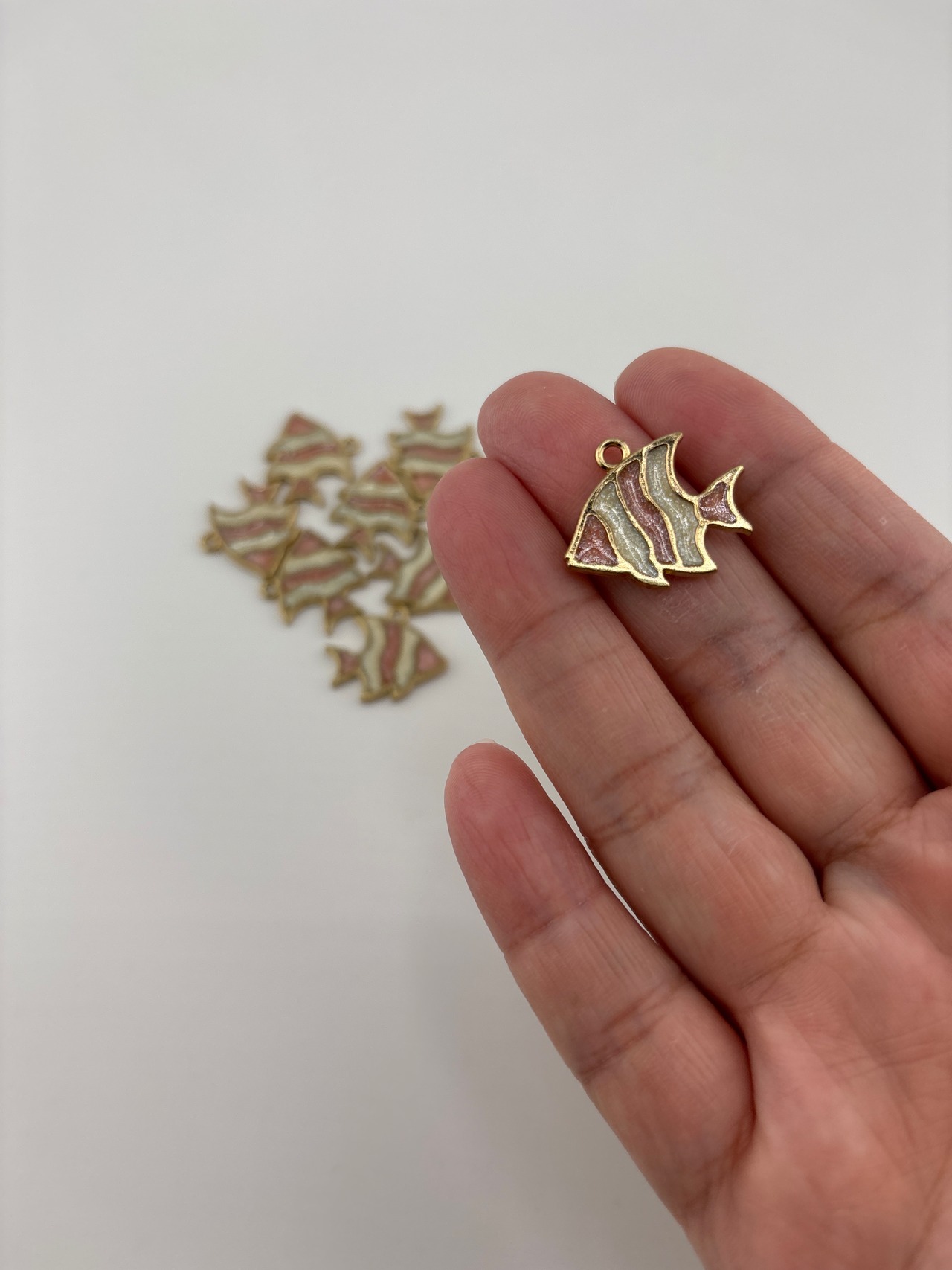 ピンクとホワイトのエナメルカラーが映える熱帯魚モチーフのチャーム。