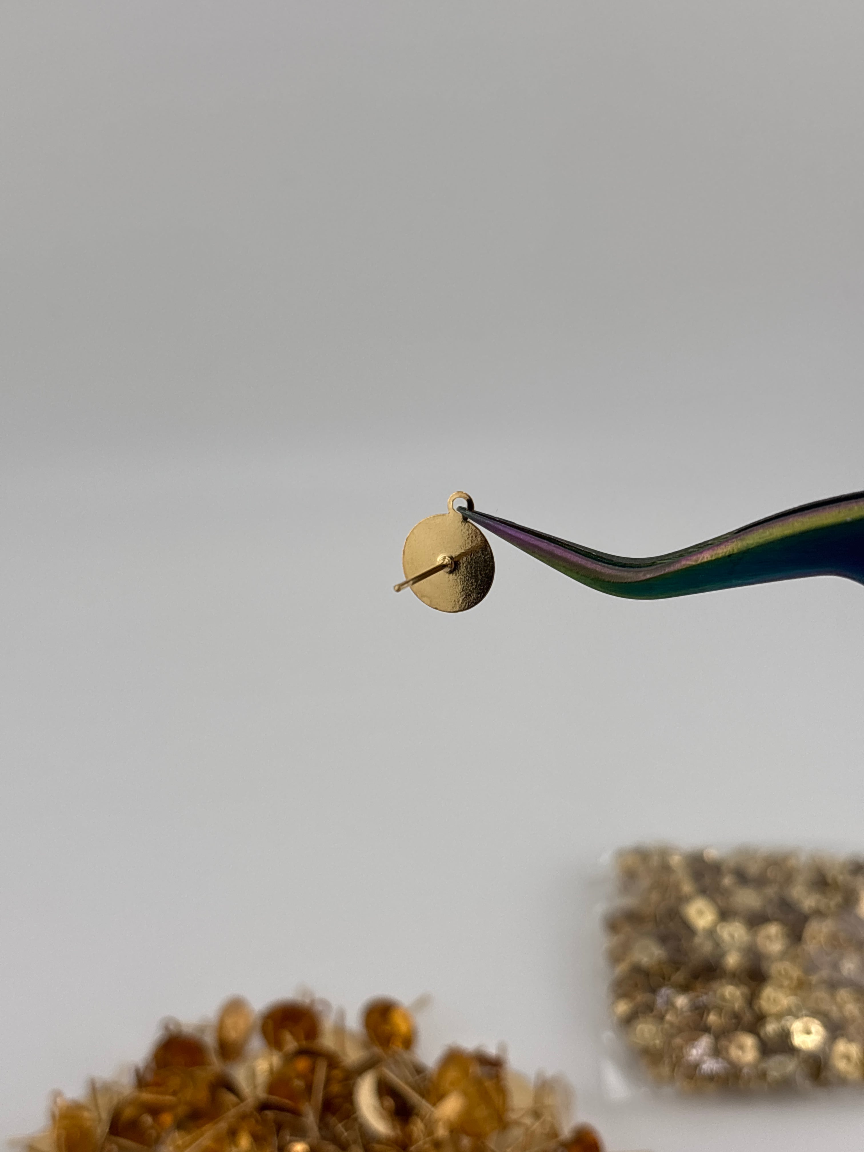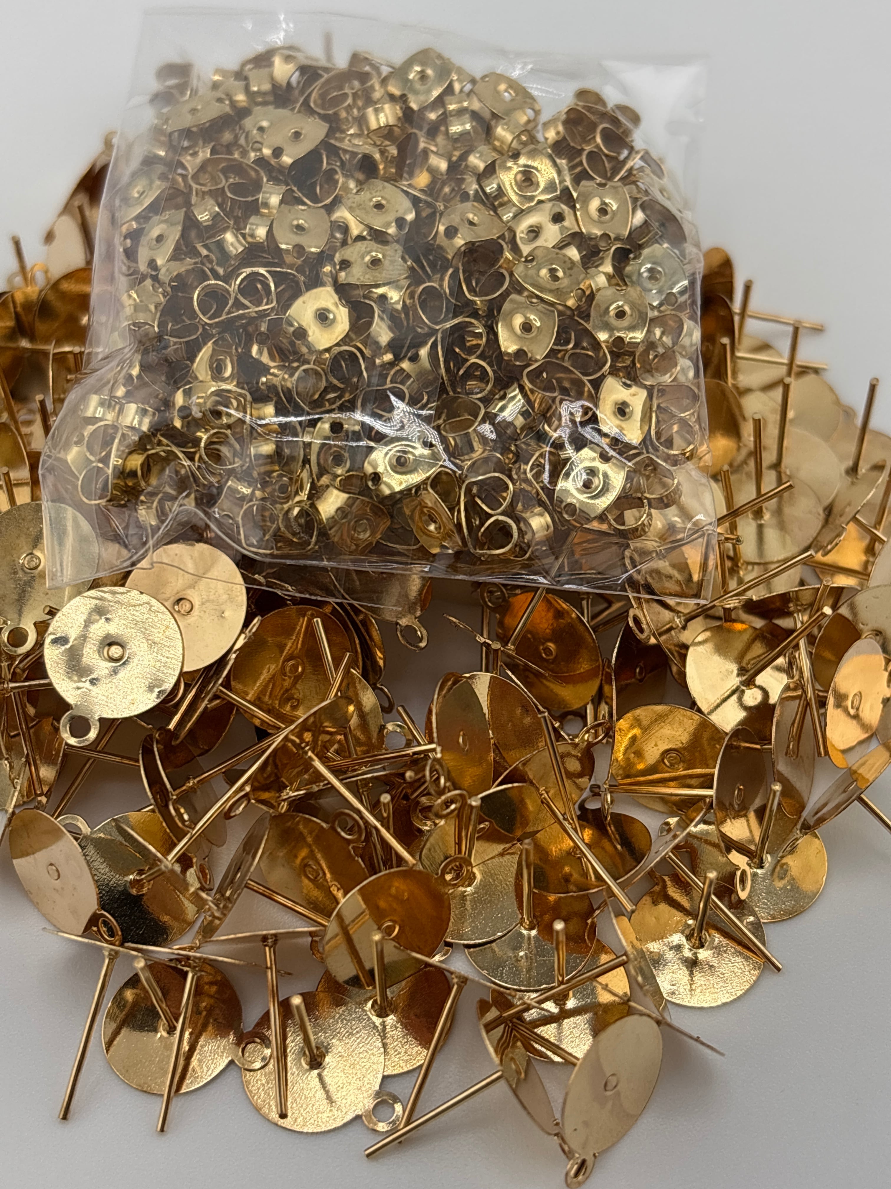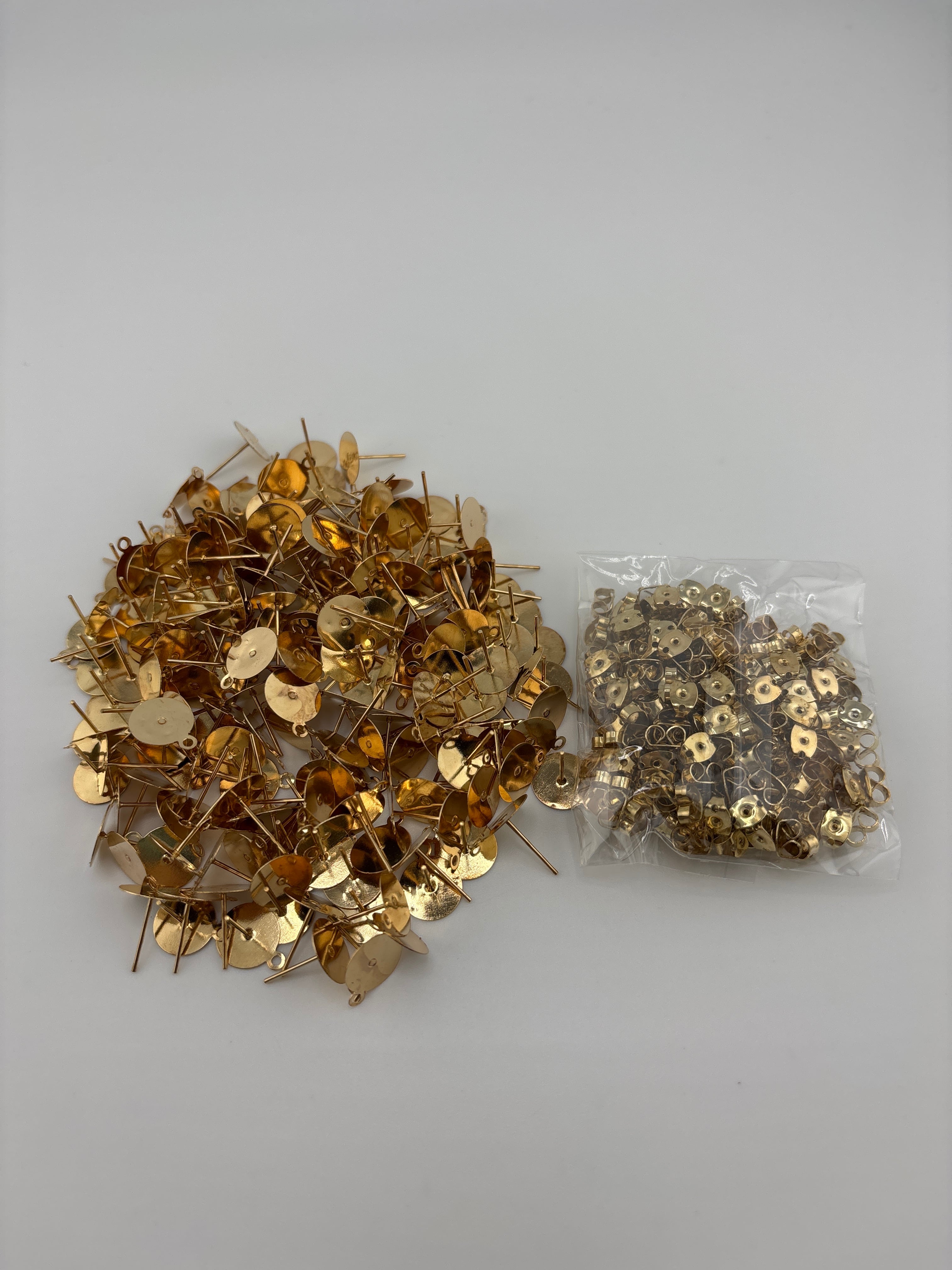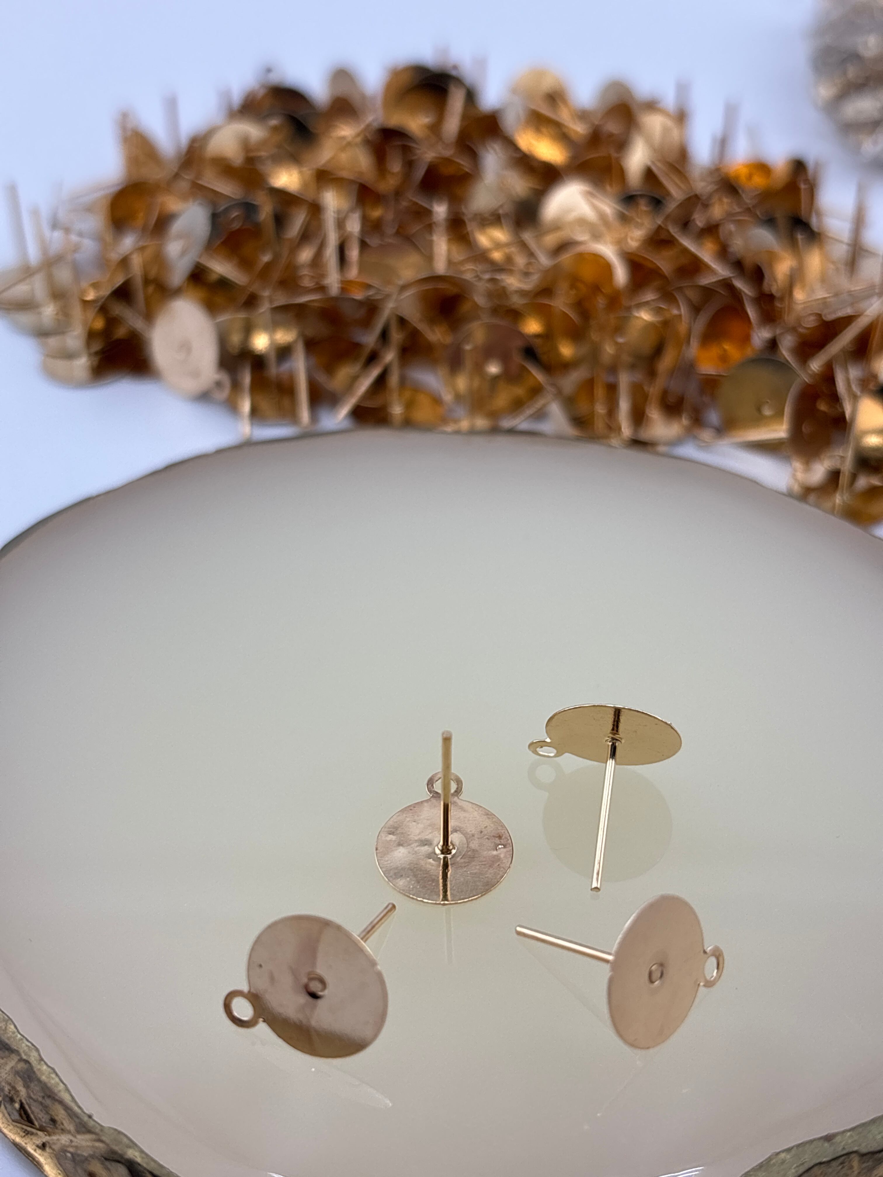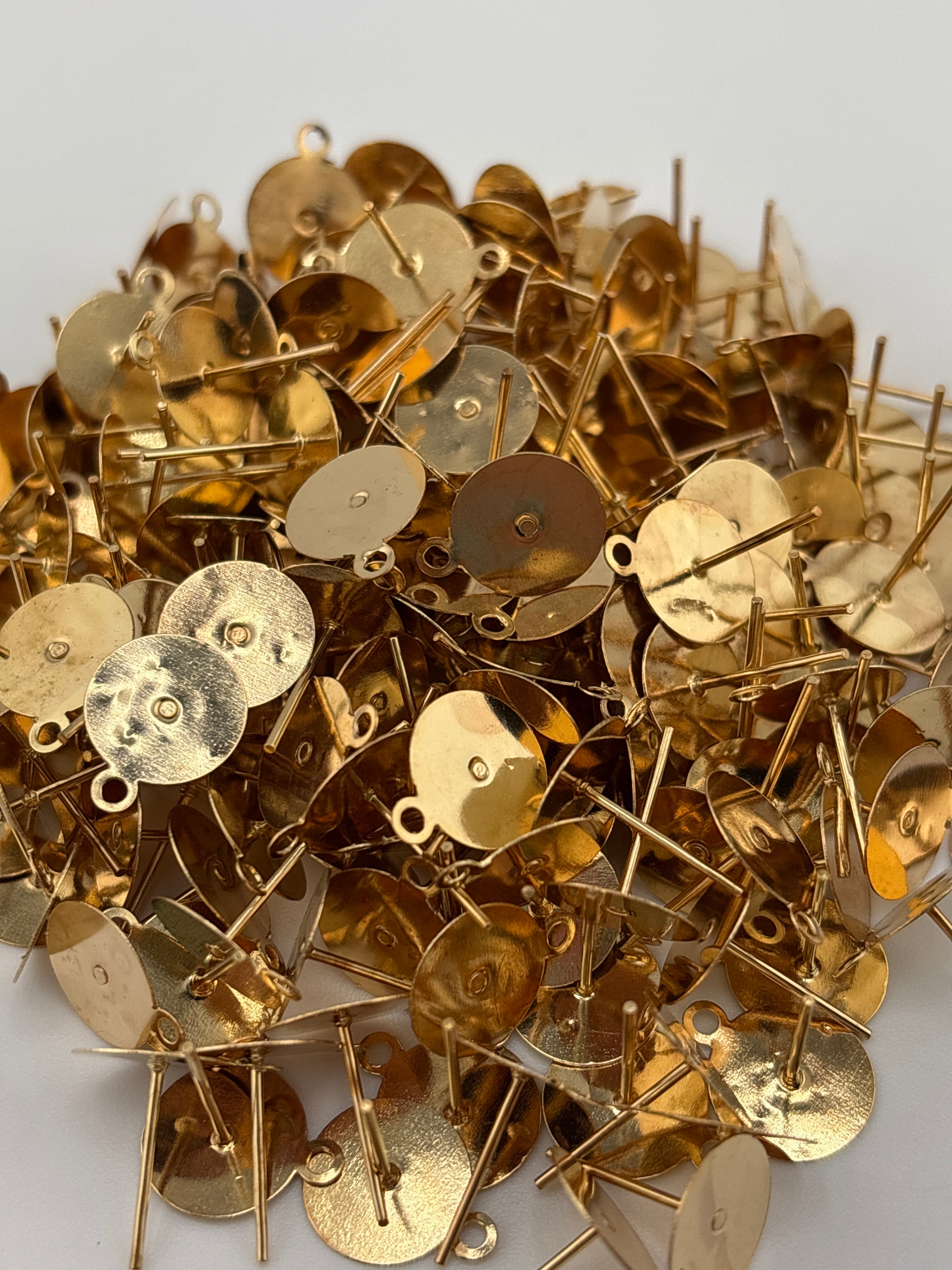 リユースパーツのキャッチ付きポストピアス(カン付き・ライトゴールド)です。