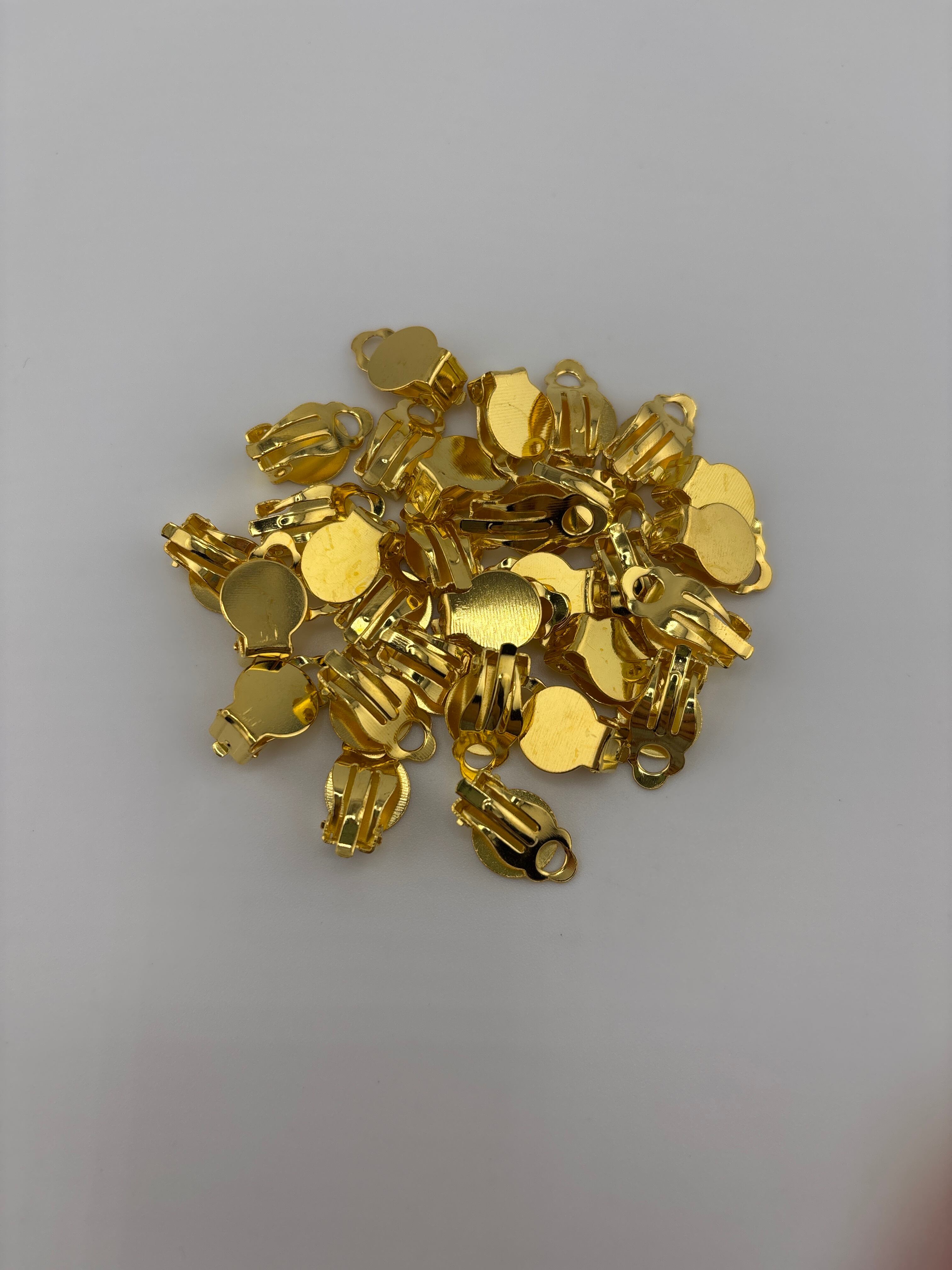 リユースパーツのイヤリング金具です。ゴールドカラーでシンプルなデザイン。
