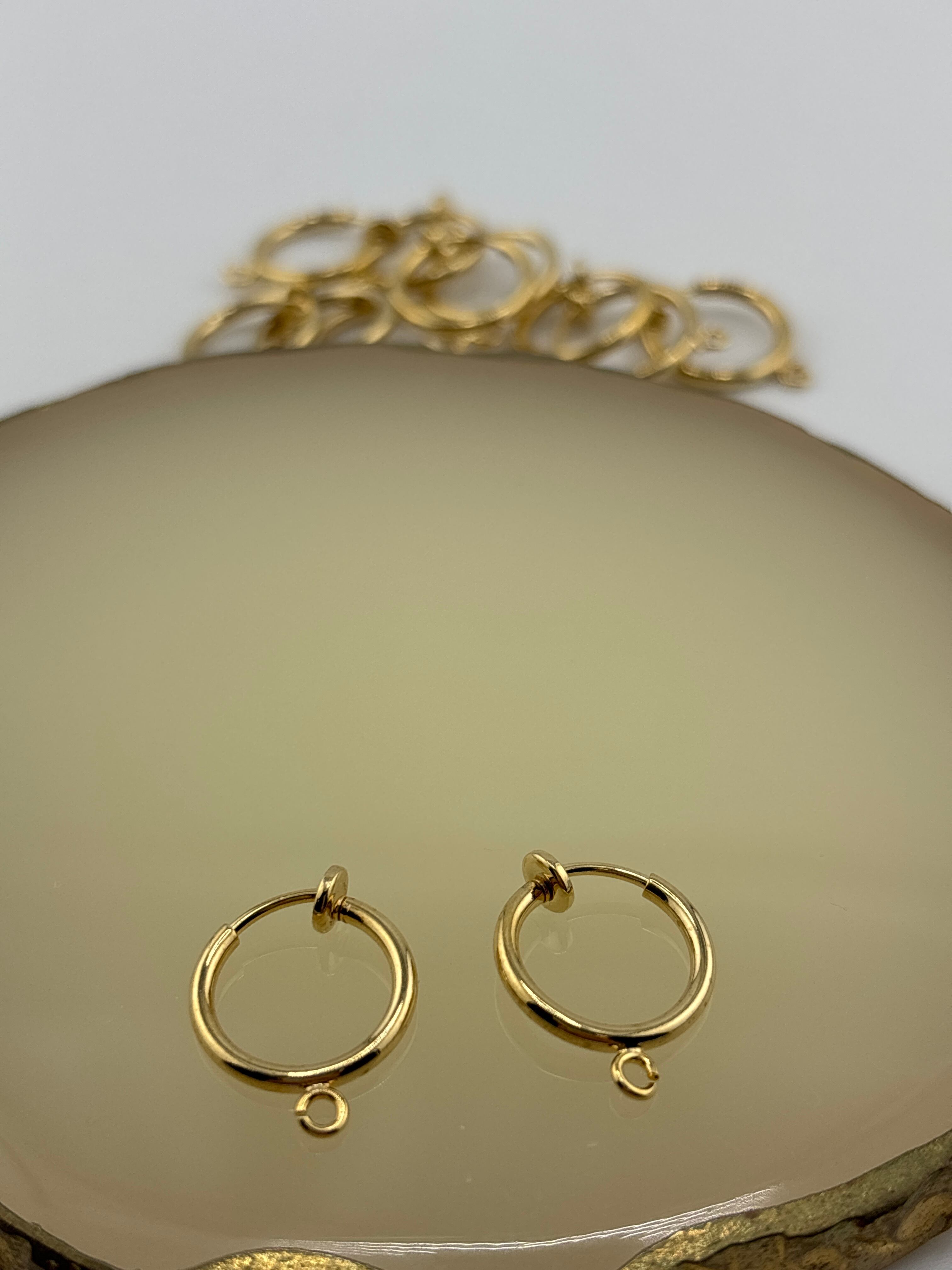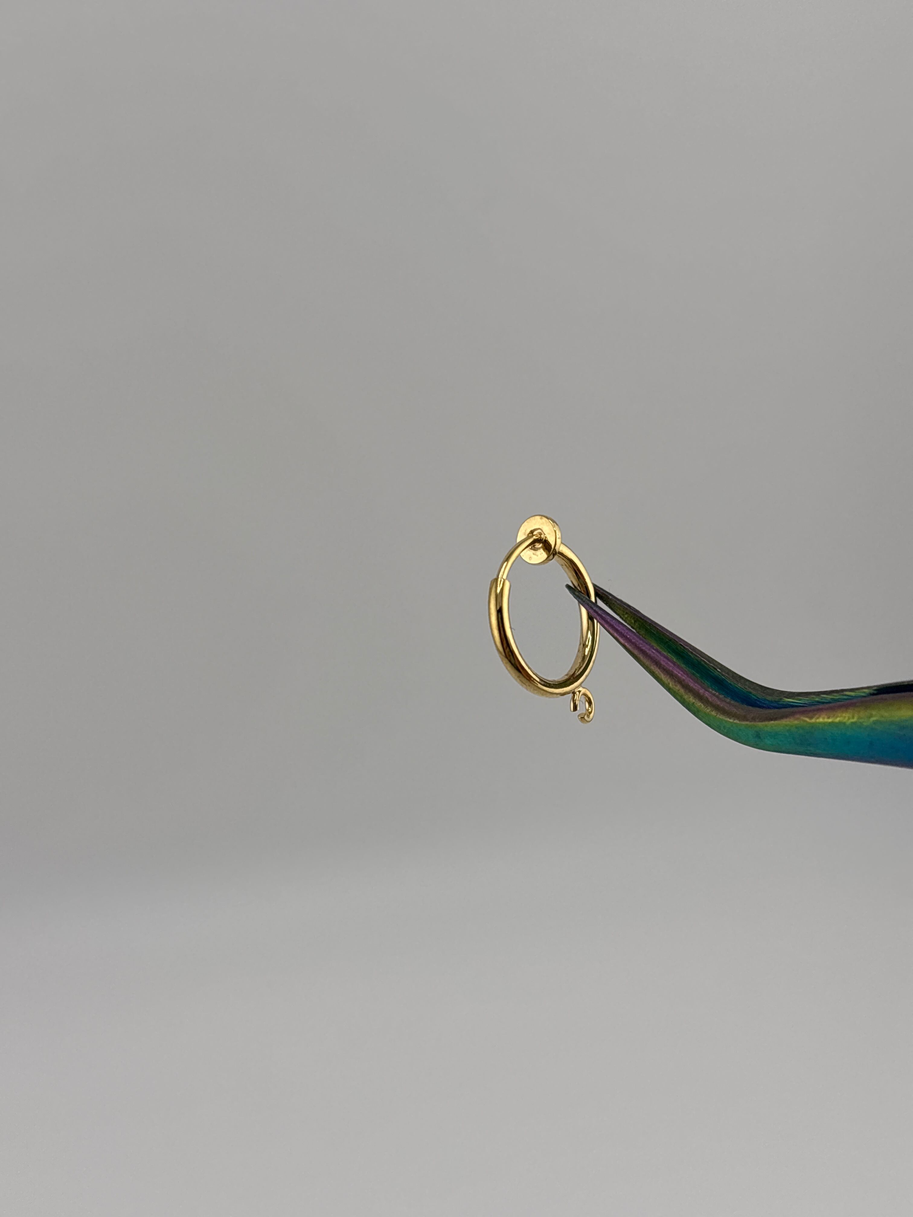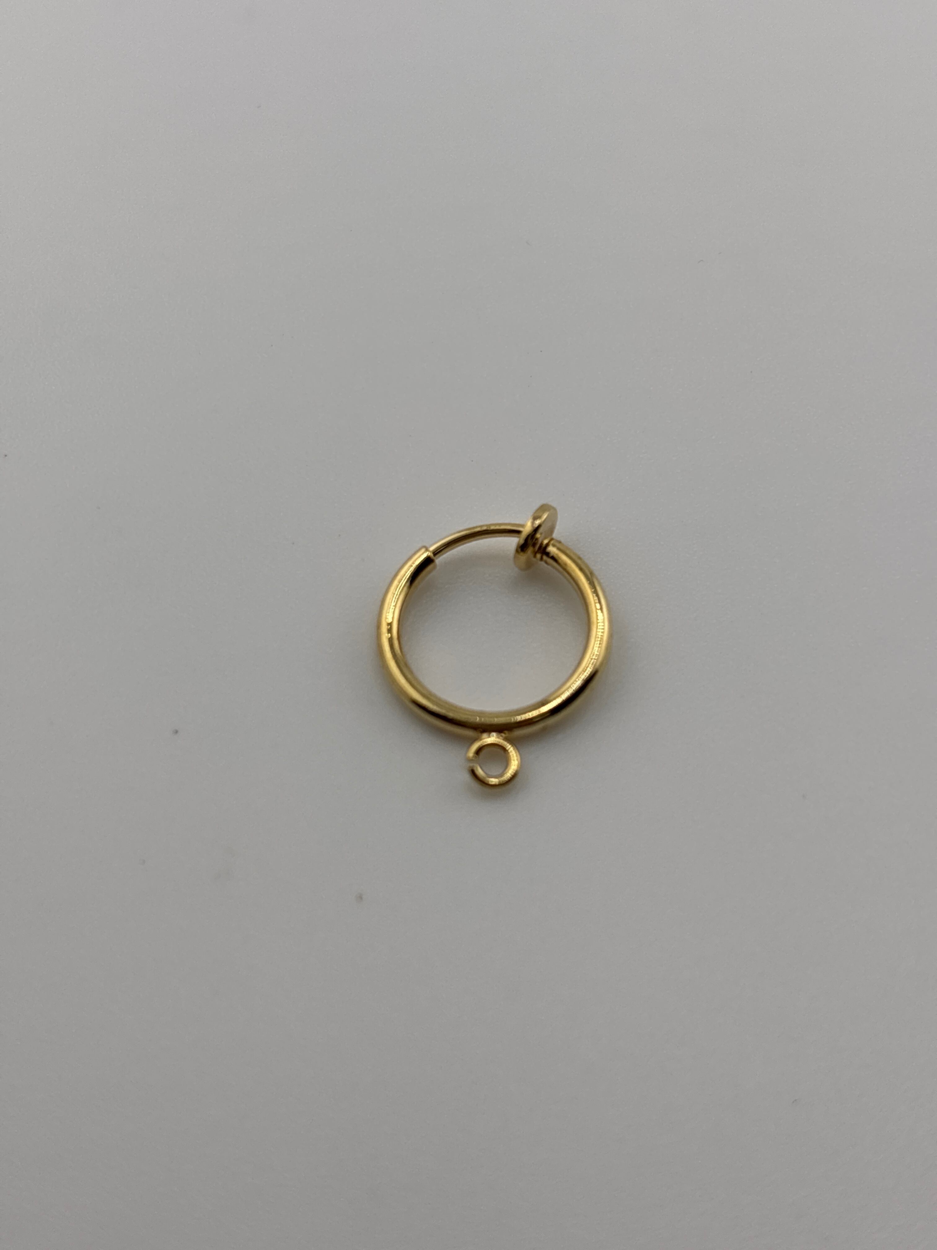 耳に挟むタイプのイヤリング金具です。丸カン付きでチャームやビーズを取り付けやすく、オリジナルイヤリング作りにぴったり。ピアス穴がない方でも使える定番のイヤリング金具です。