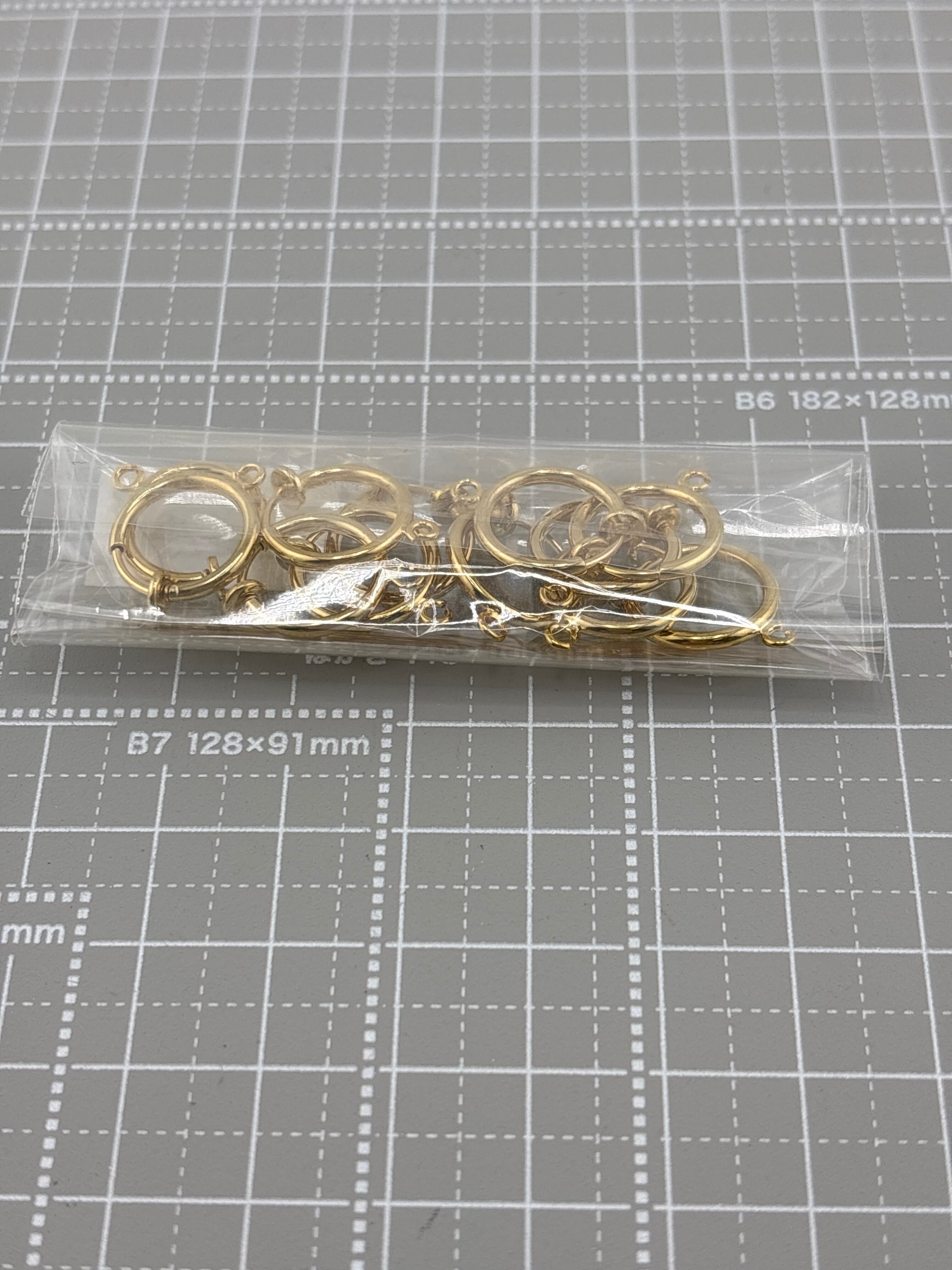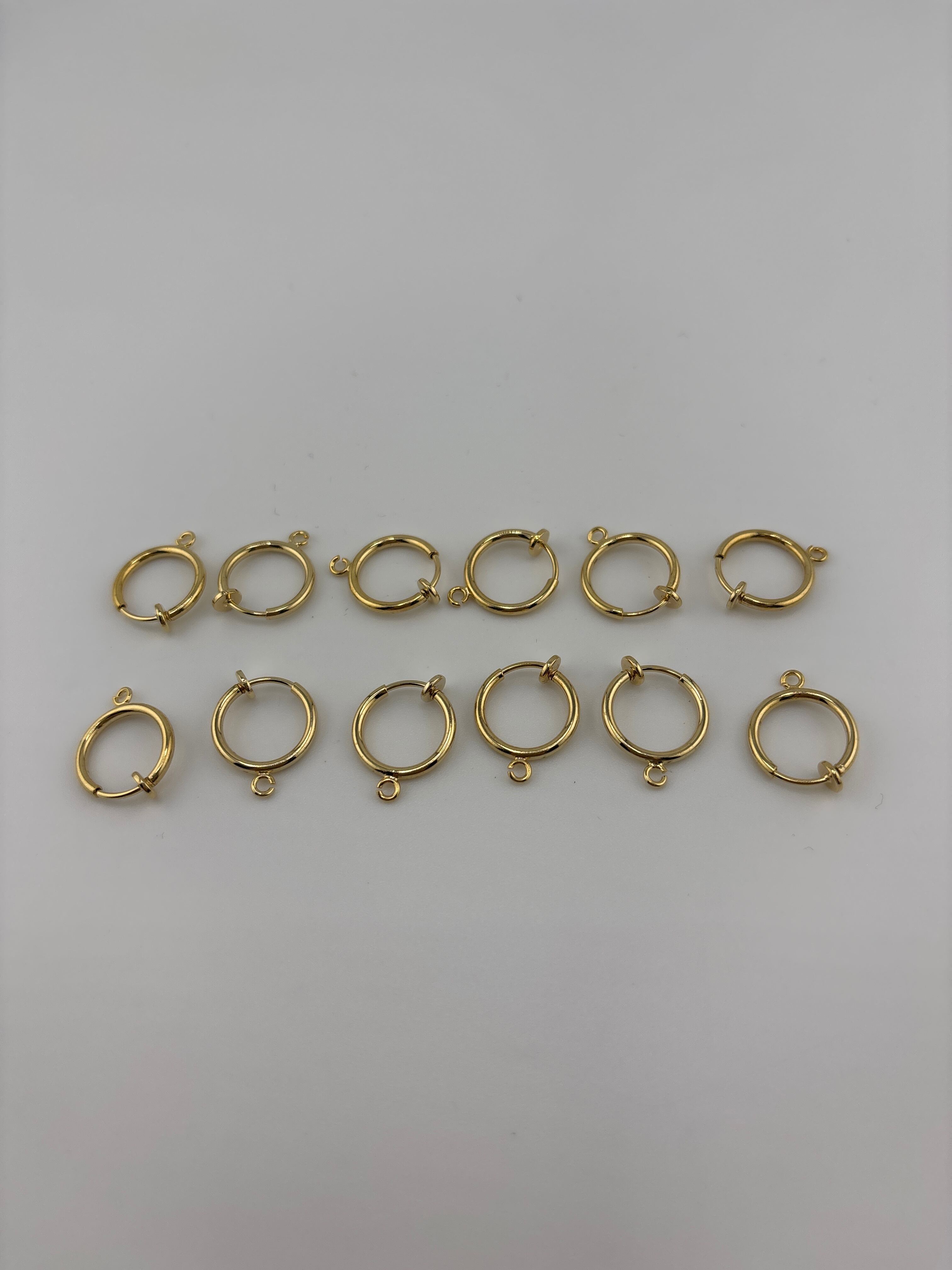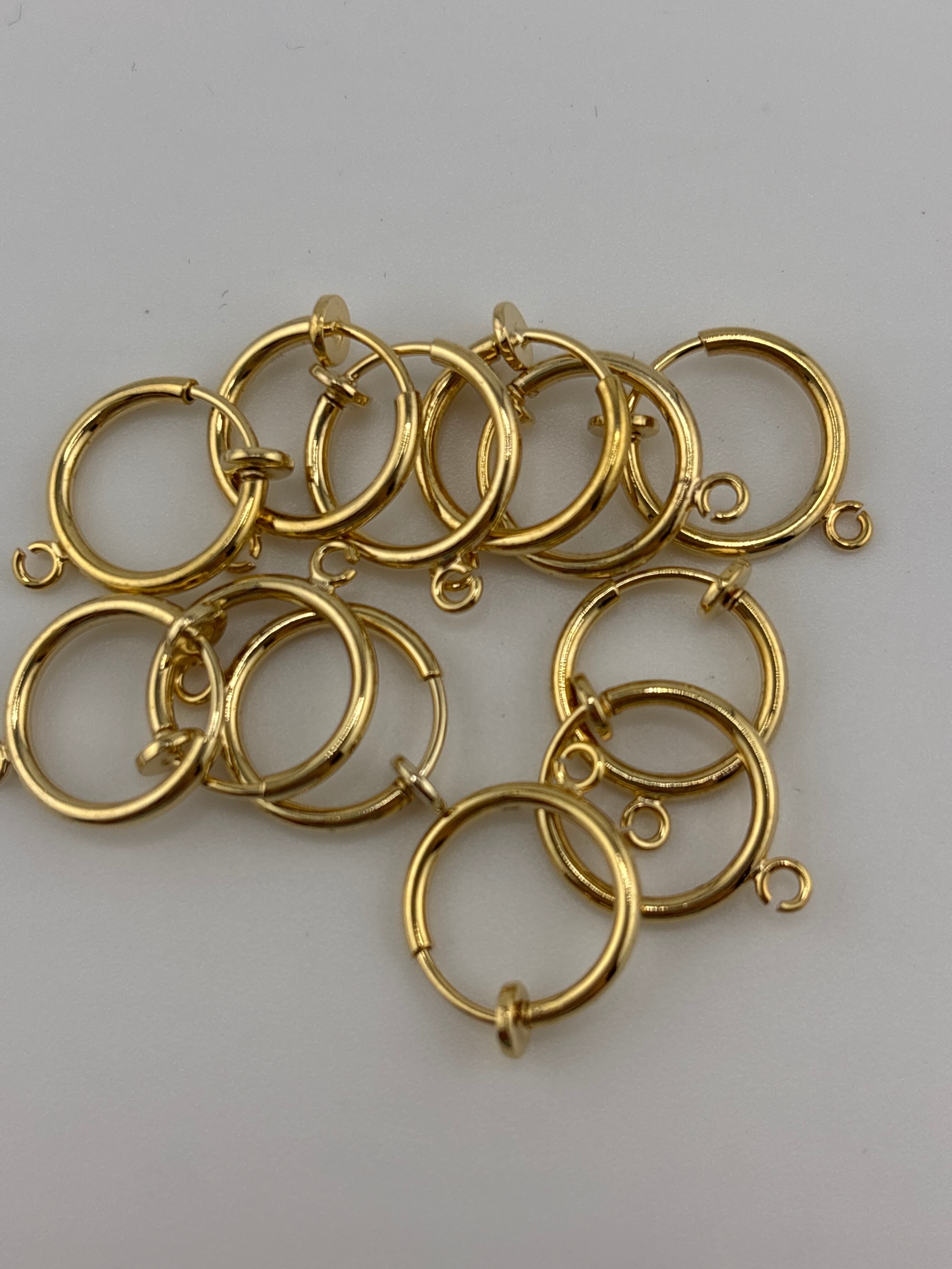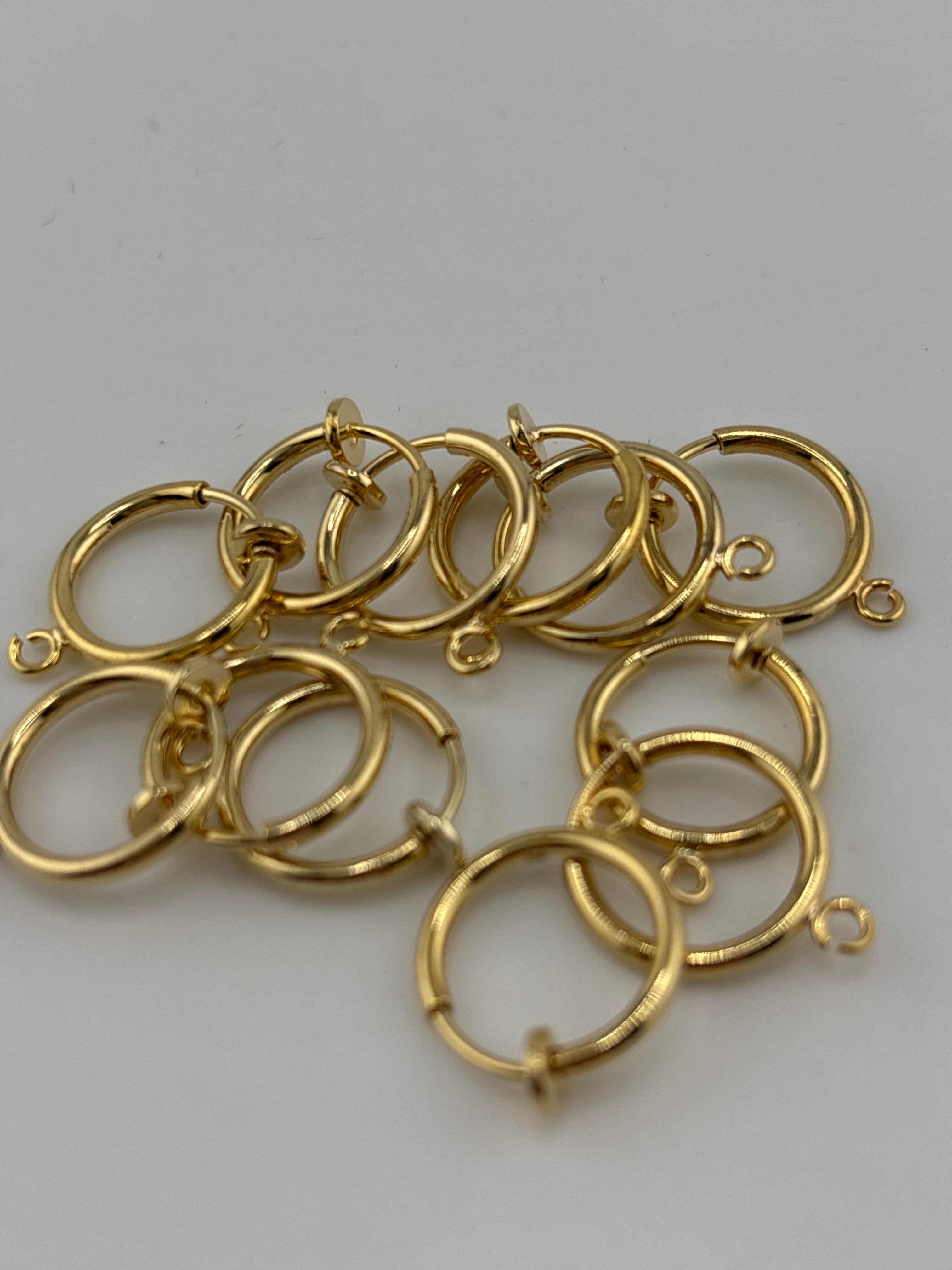 耳に挟むタイプのイヤリング金具です。丸カン付きでチャームやビーズを取り付けやすく、オリジナルイヤリング作りにぴったり。ピアス穴がない方でも使える定番のイヤリング金具です。