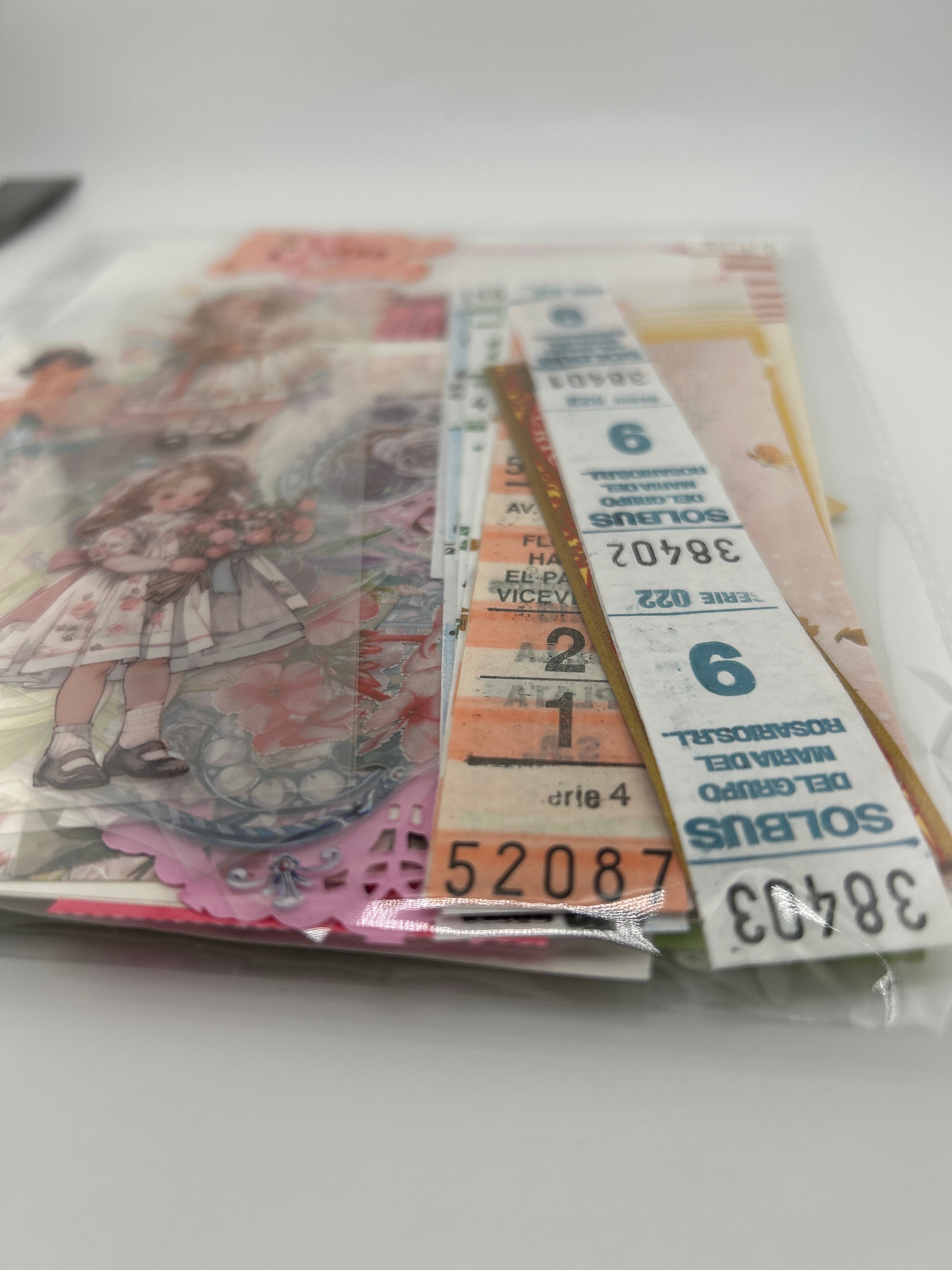 コラージュや手帳デコ、スクラップブッキングに使える紙モノのアソートセットです。