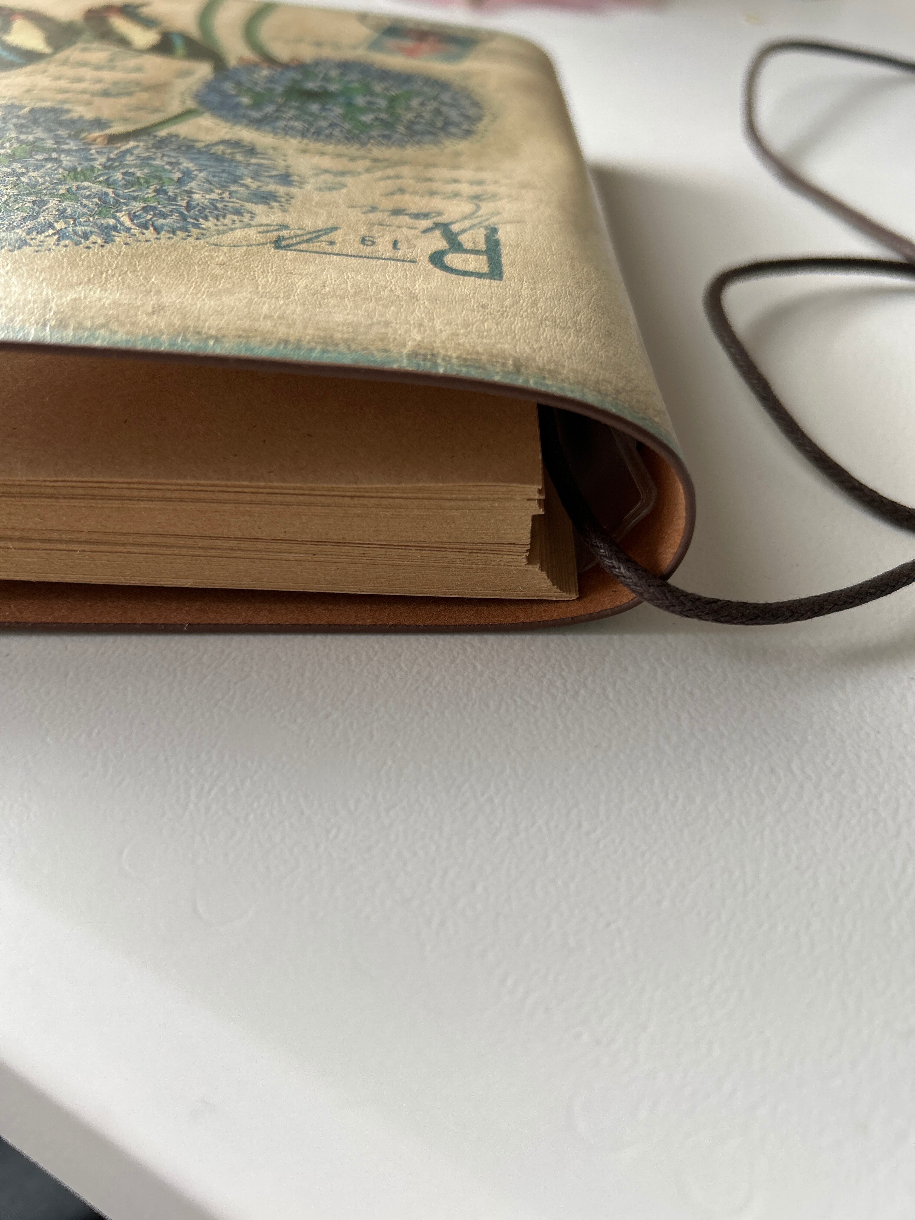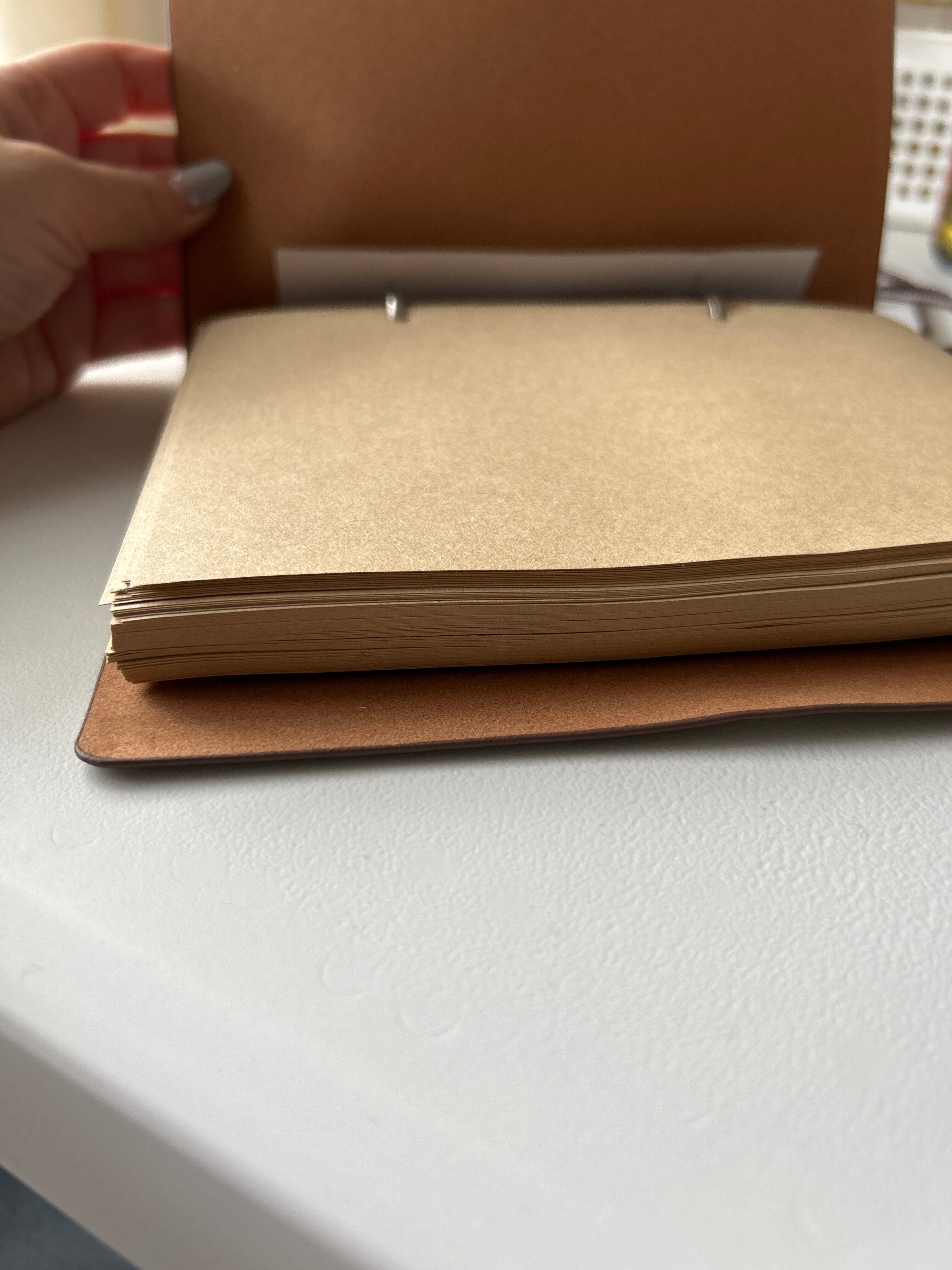 合皮の表紙にクラフト紙リフィルをセットした、落ち着いた雰囲気の一冊です。