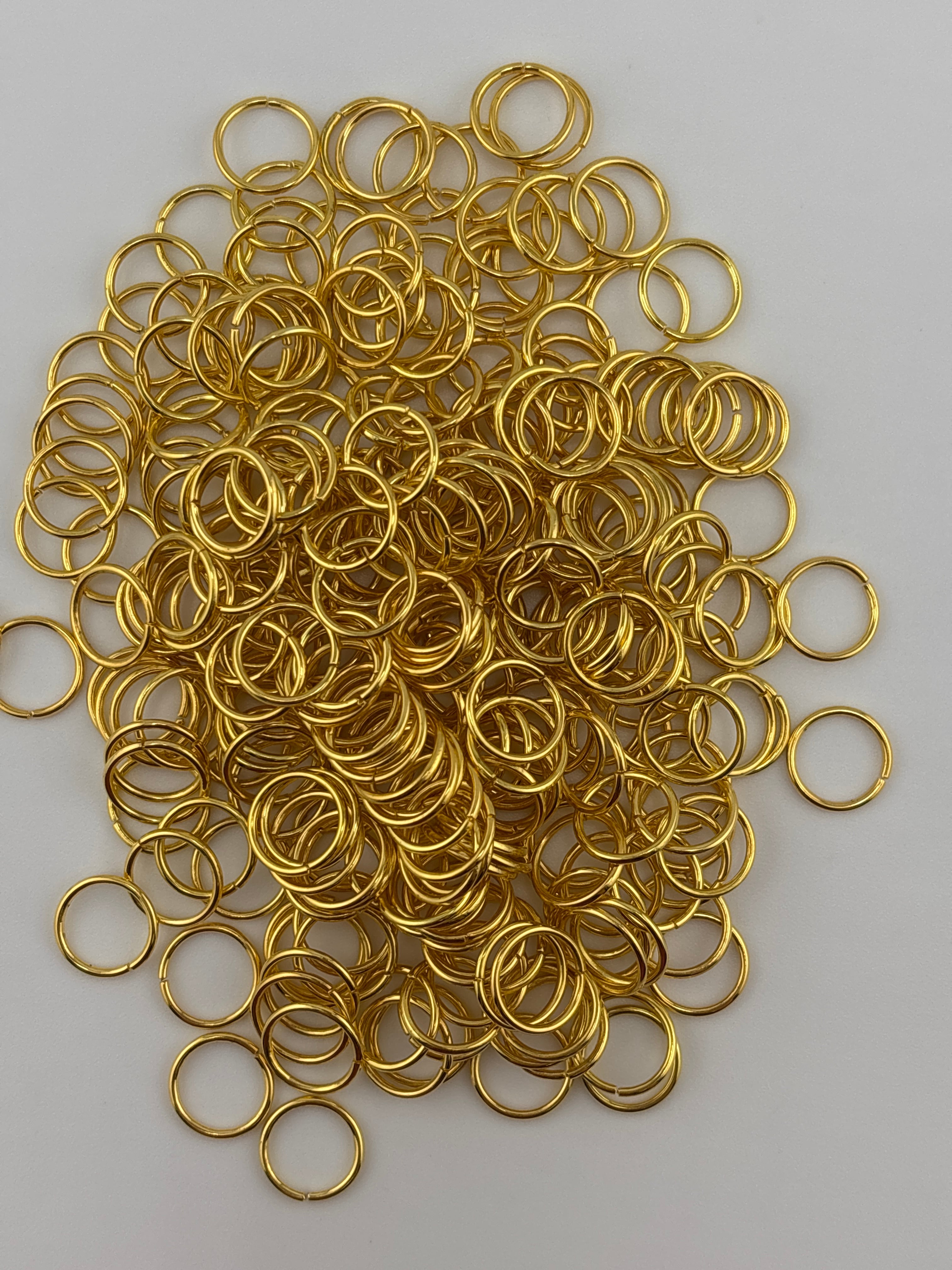 アクセサリー製作に必須の基本パーツ、ゴールドカラーの丸カンです。