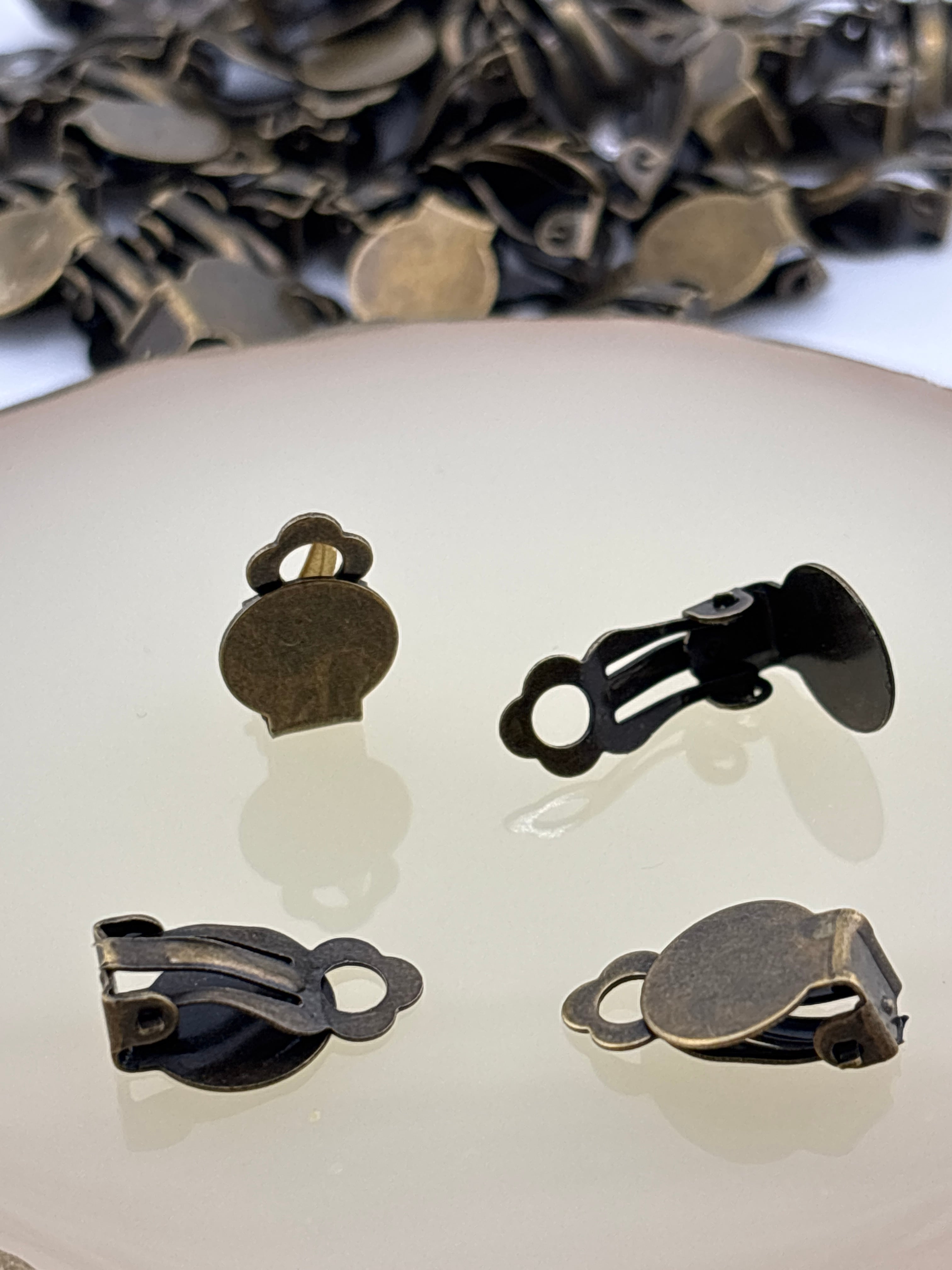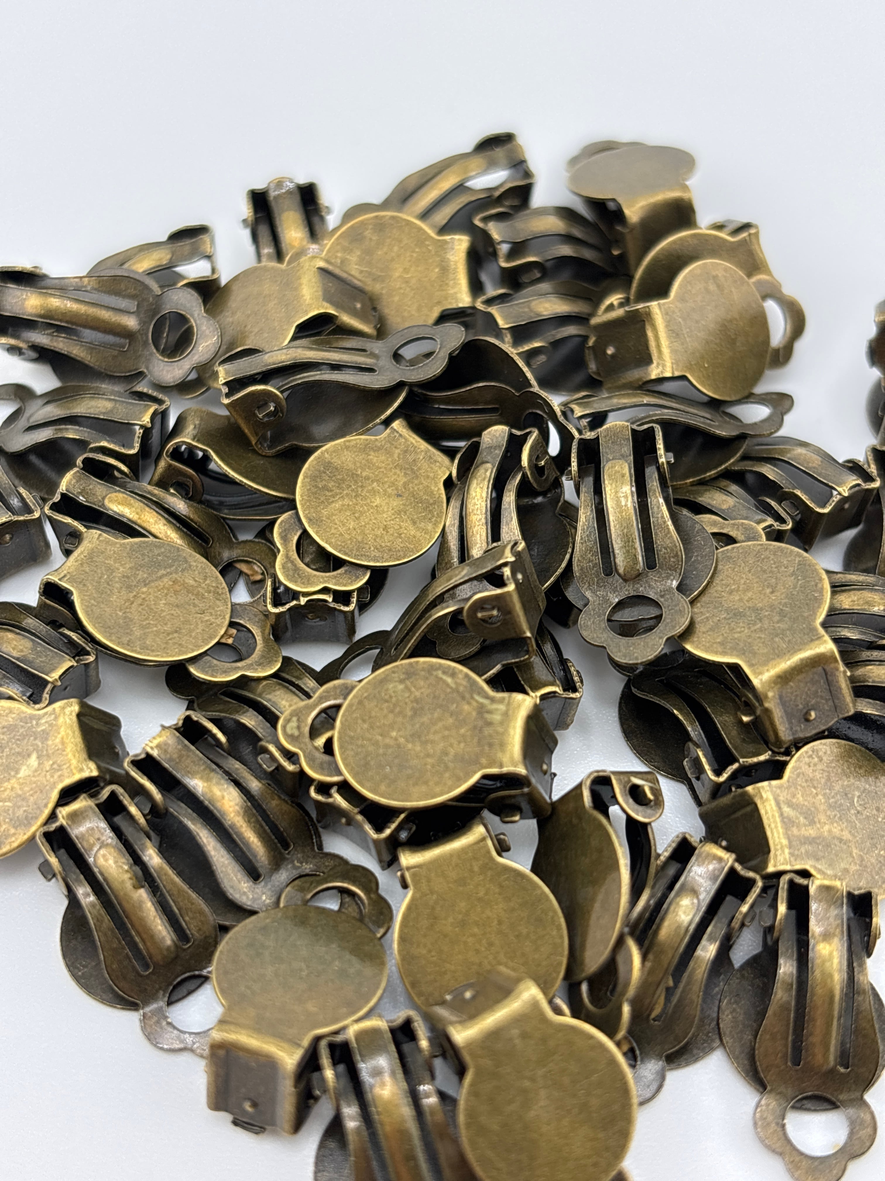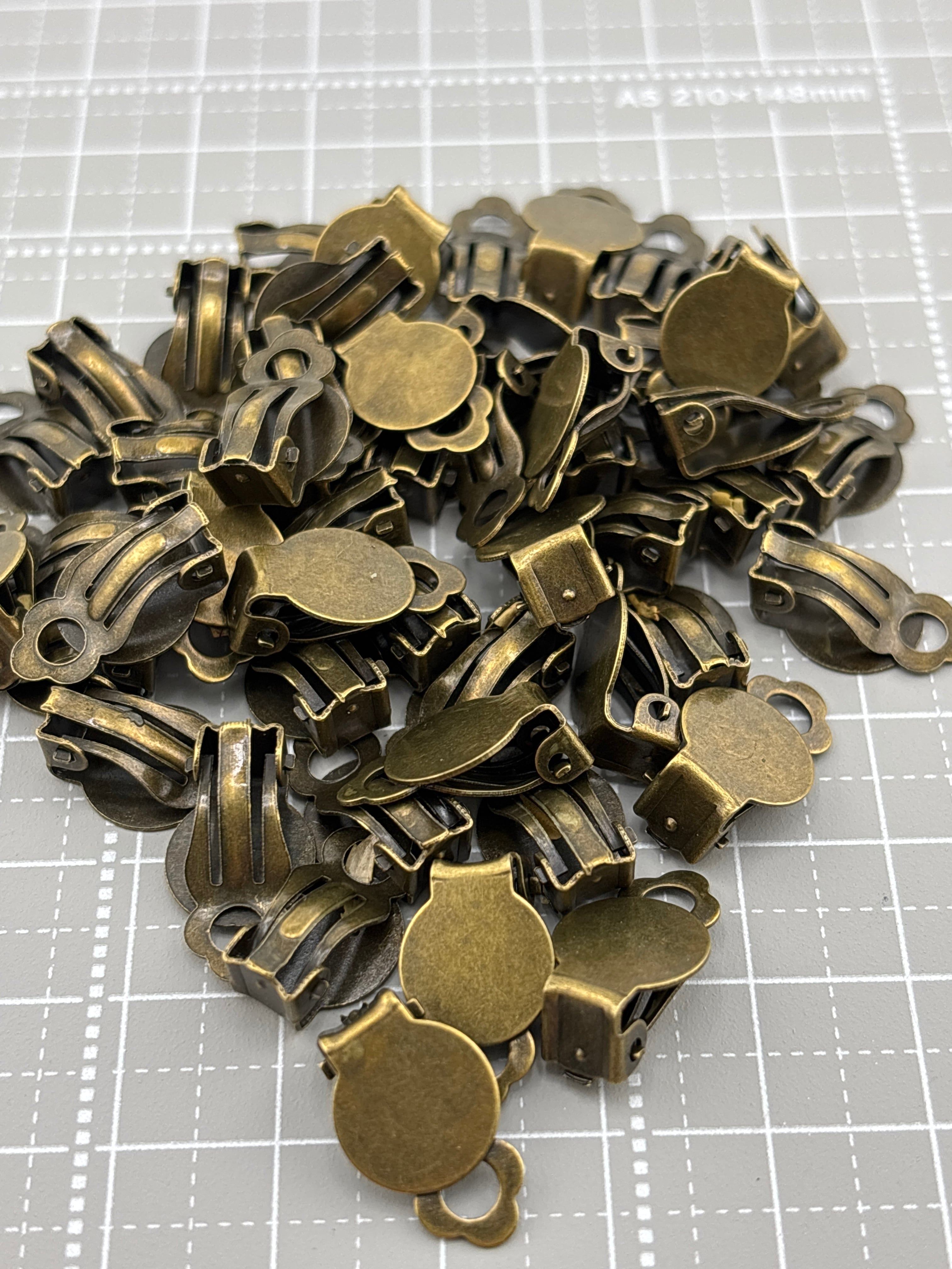 No.346 台座付きイヤリングパーツ クリップ式 アンティークゴールド 50個入り