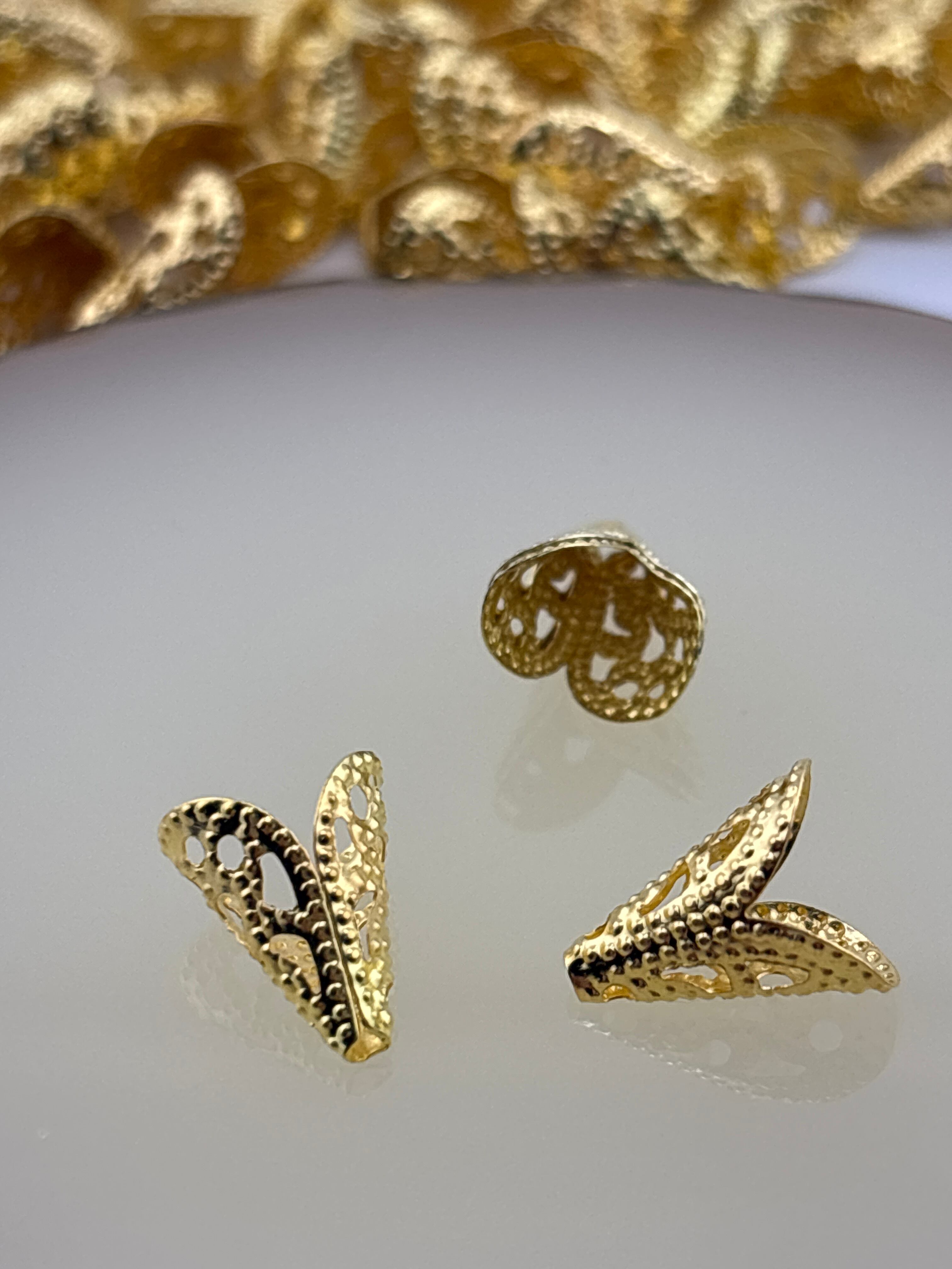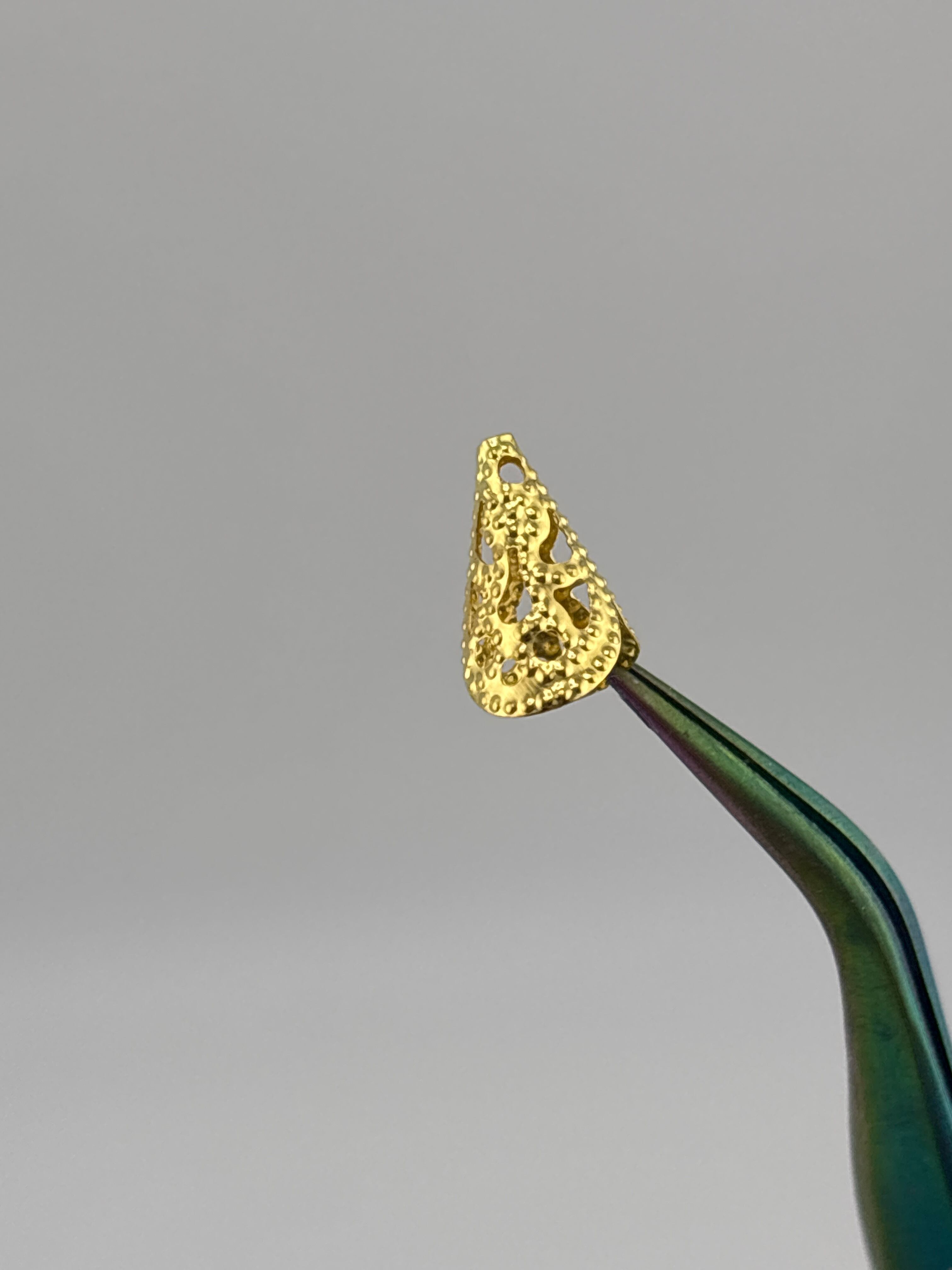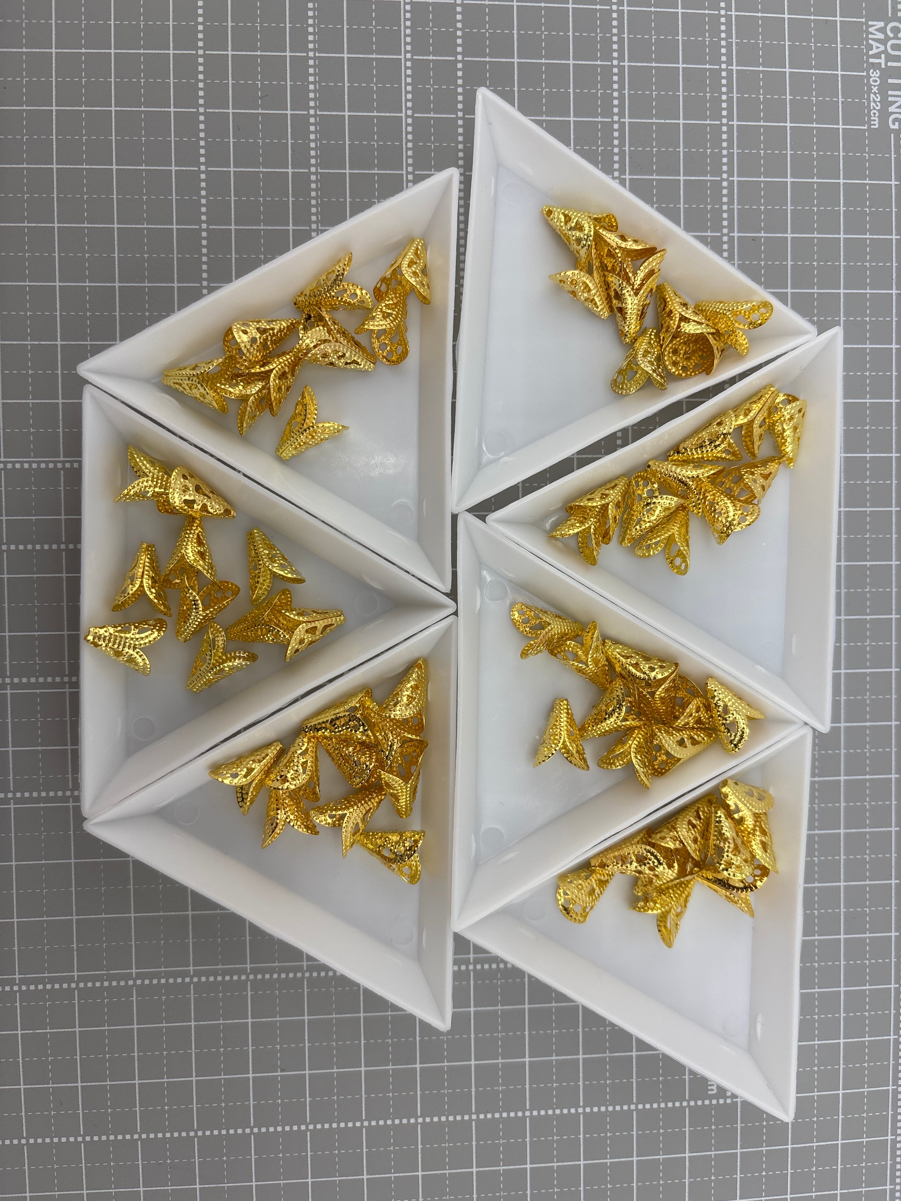 立体的で繊細な透かし模様が入った三角キャップパーツです。