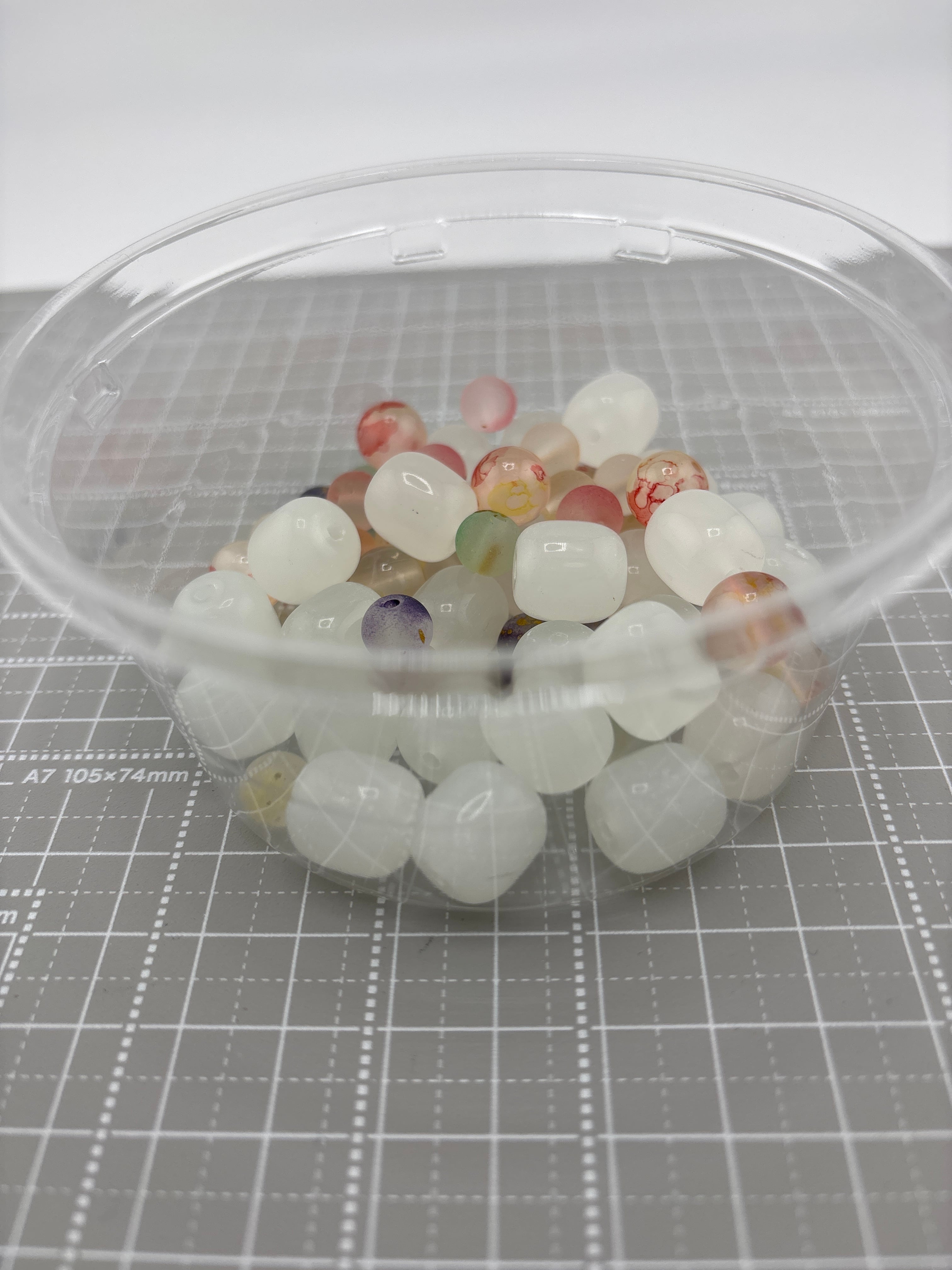 また、まれにアクリル素材のビーズが混ざっている場合もあります。