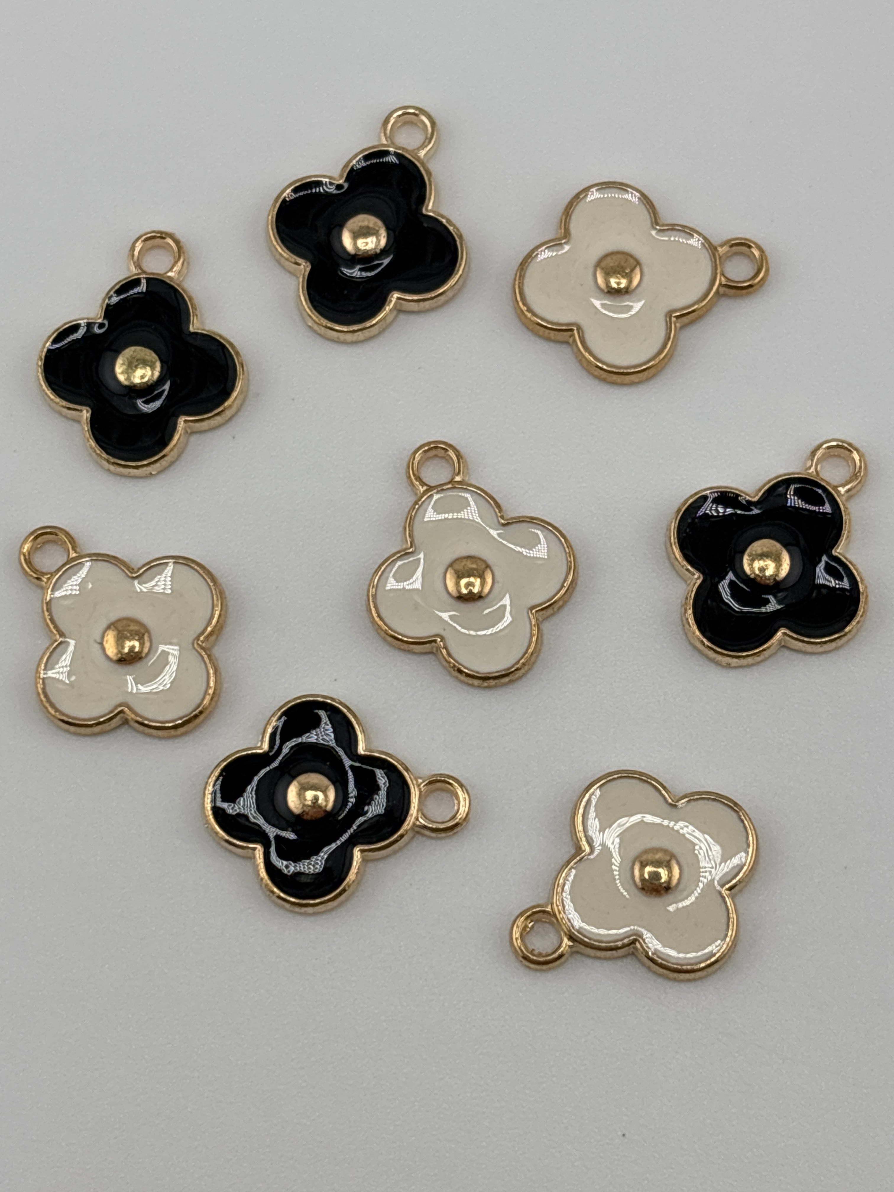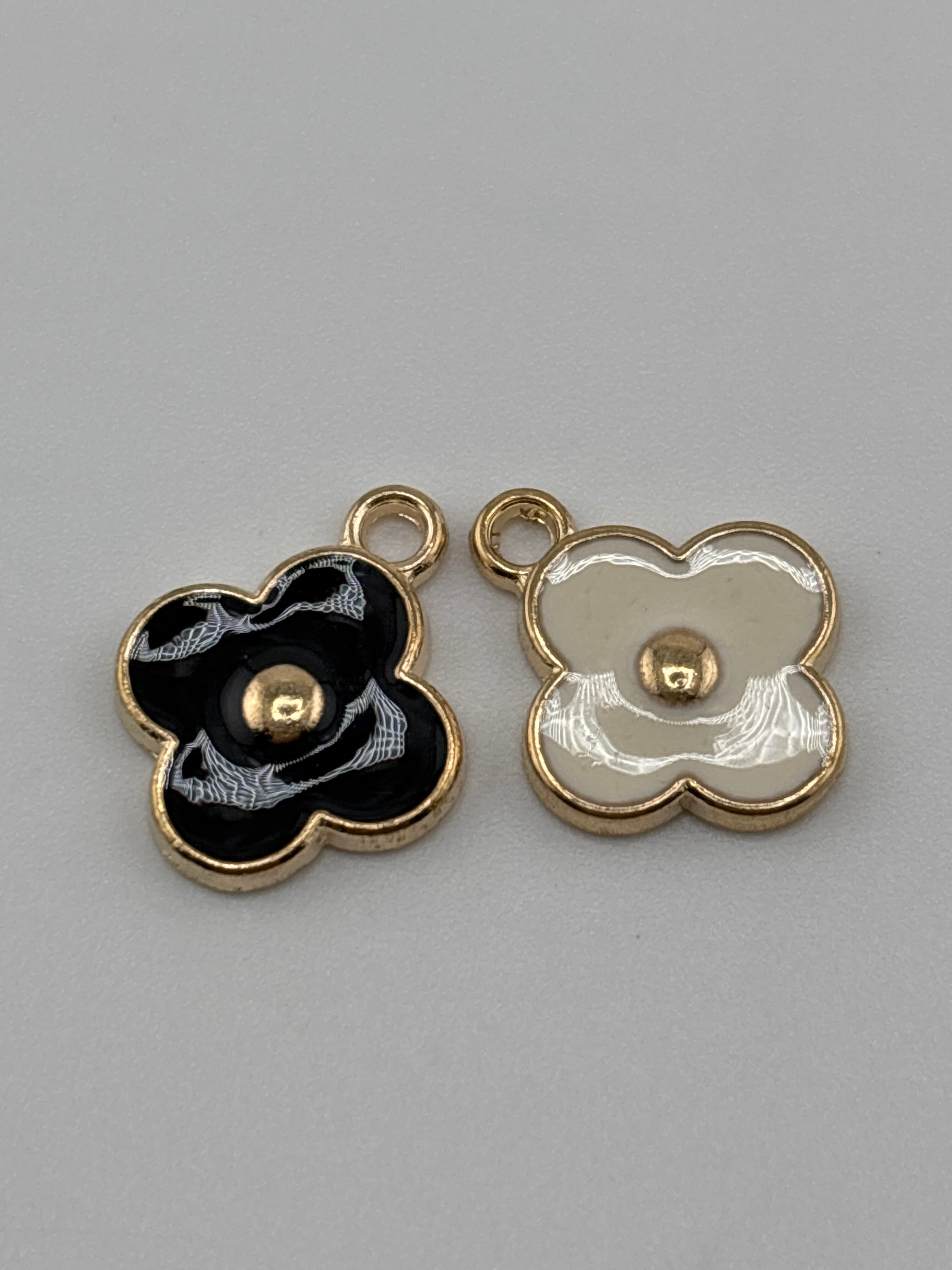 ブラックとホワイトの2色セットで、中心には小さなゴールドのアクセントが入っています。