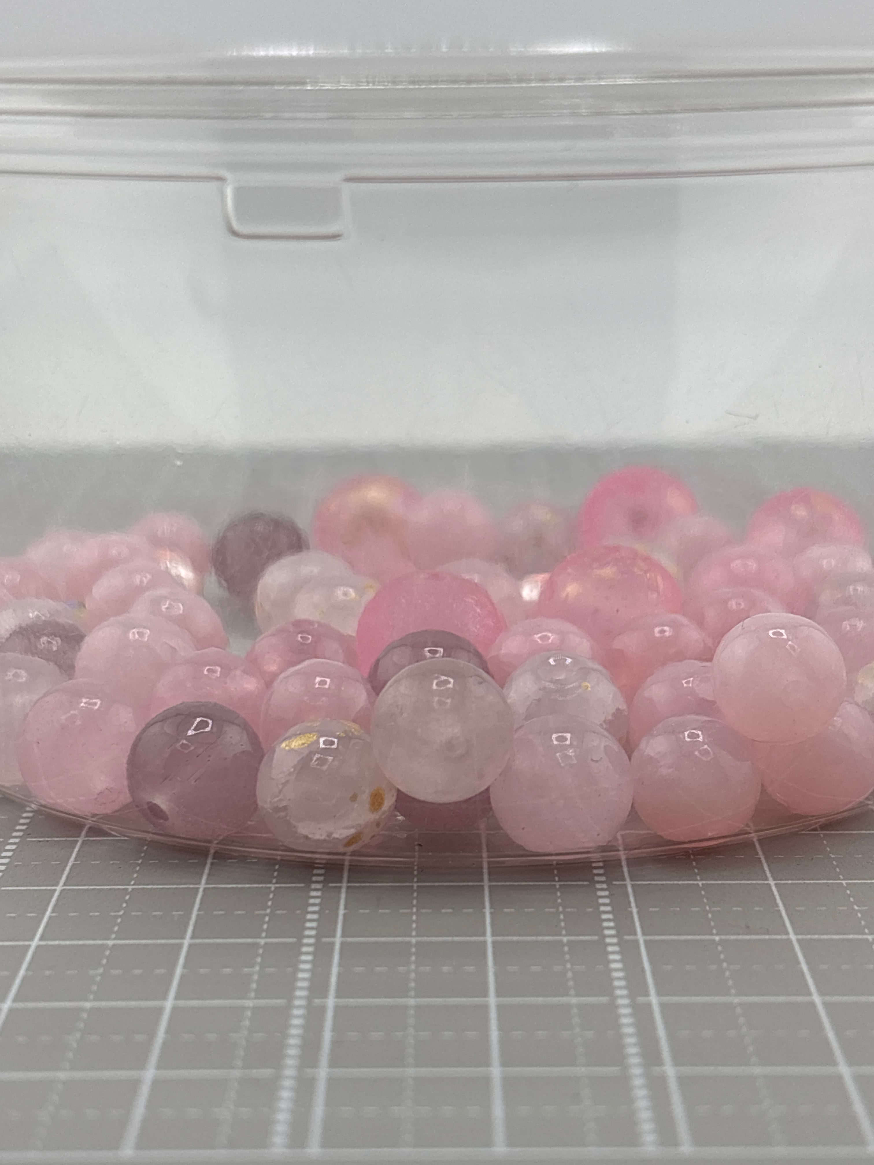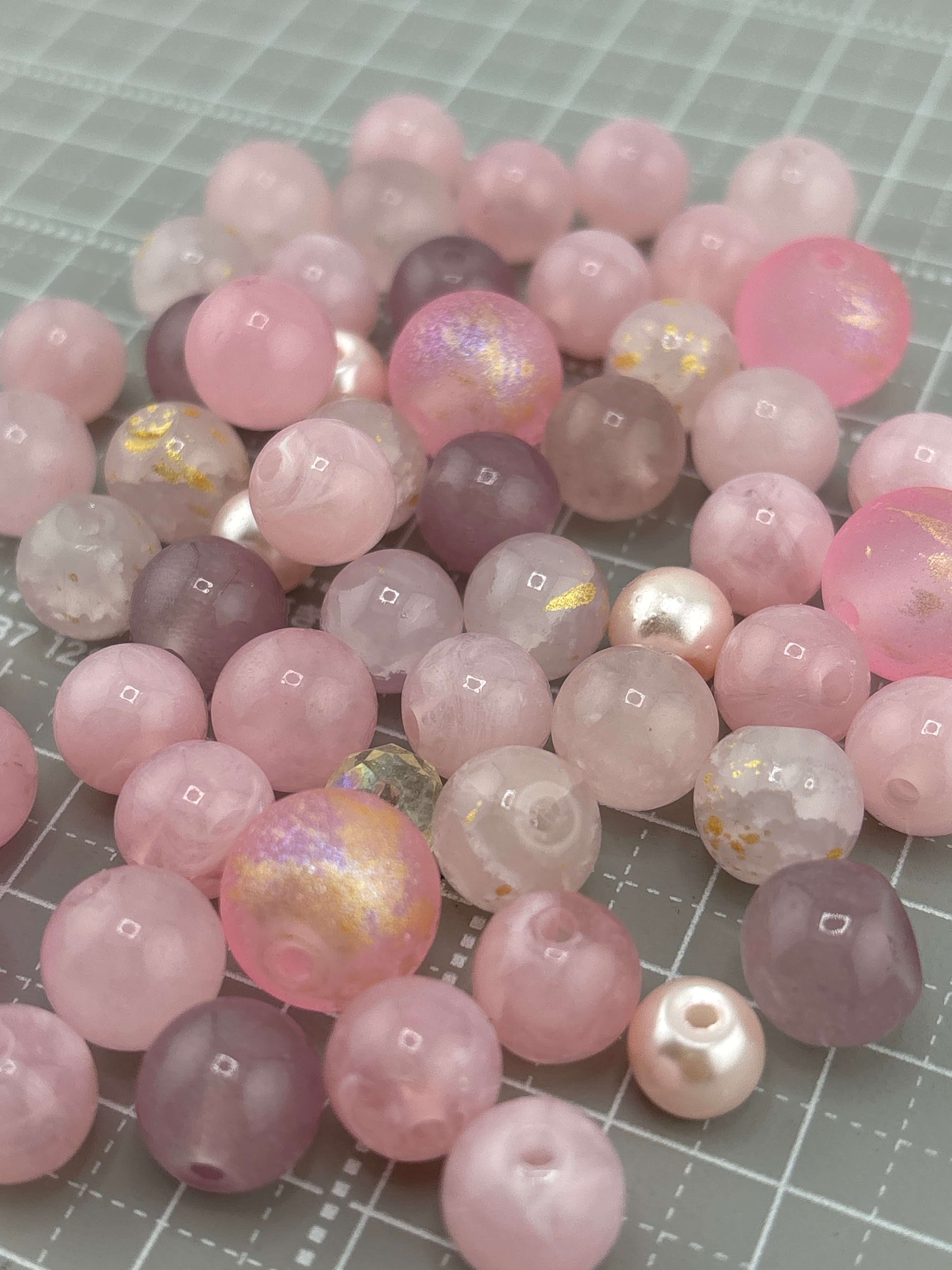 さまざまなカラーや質感のガラスビーズをミックスしました。