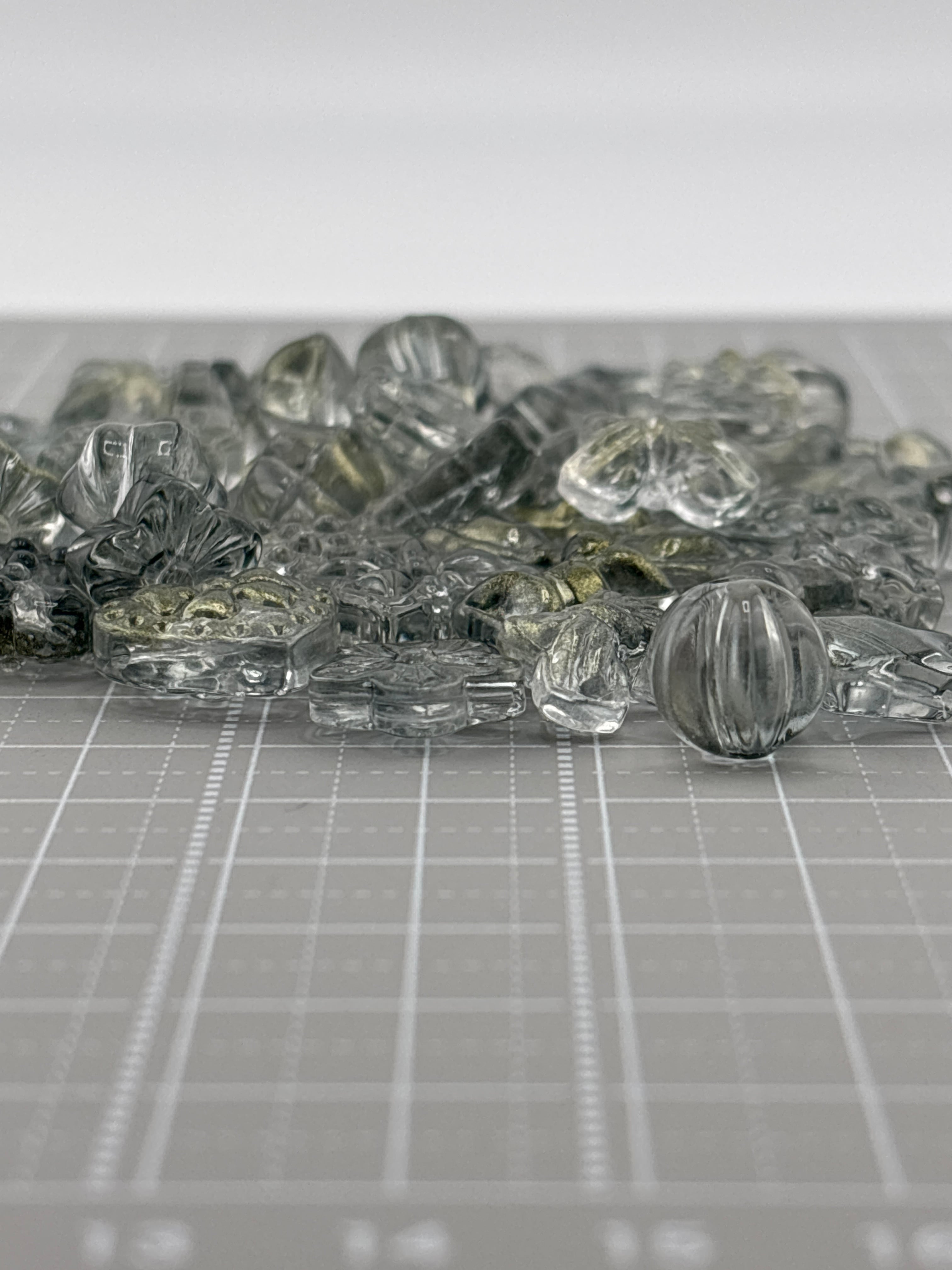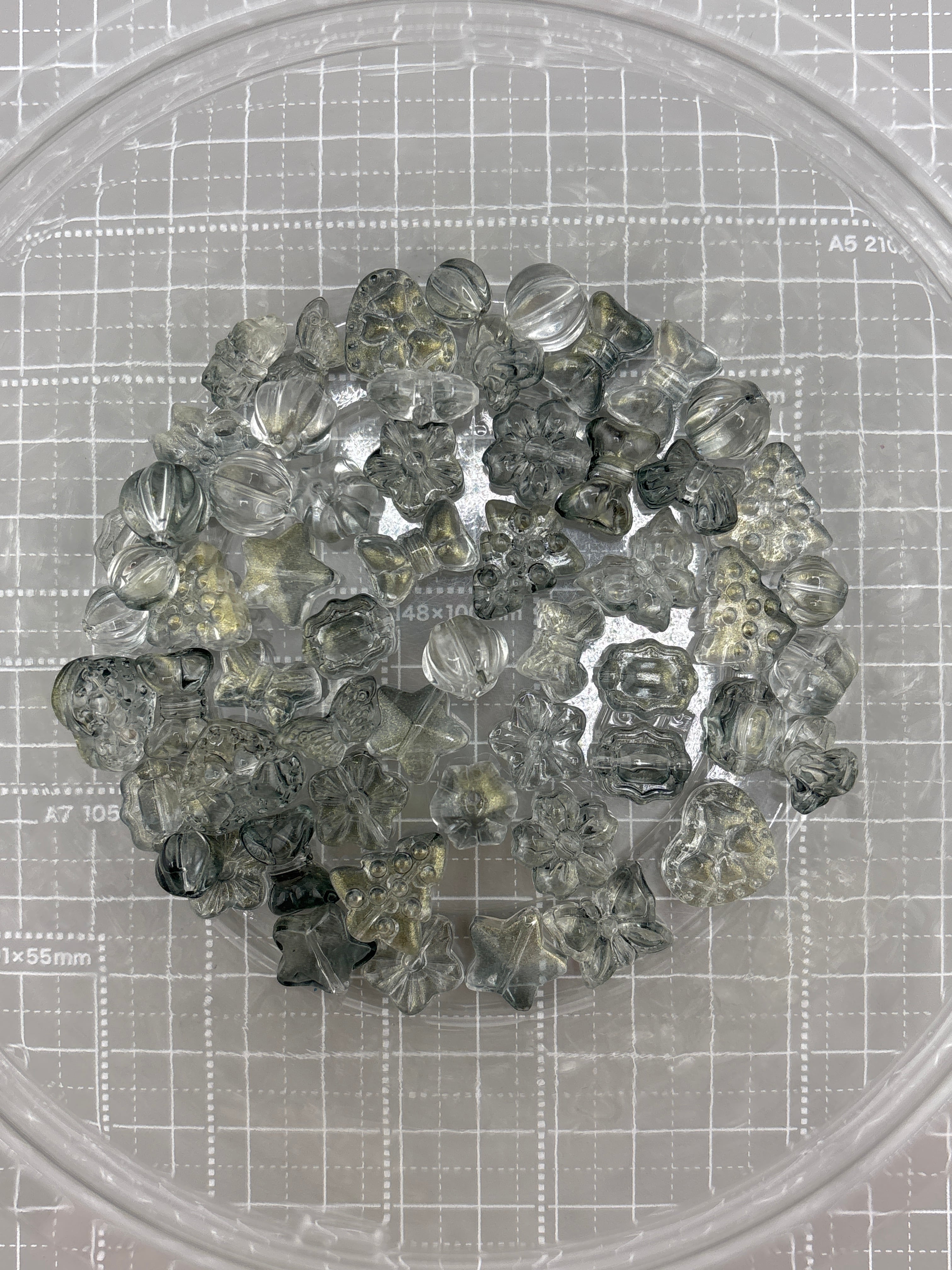 さまざまなカラーや質感のガラスビーズをミックスしました。