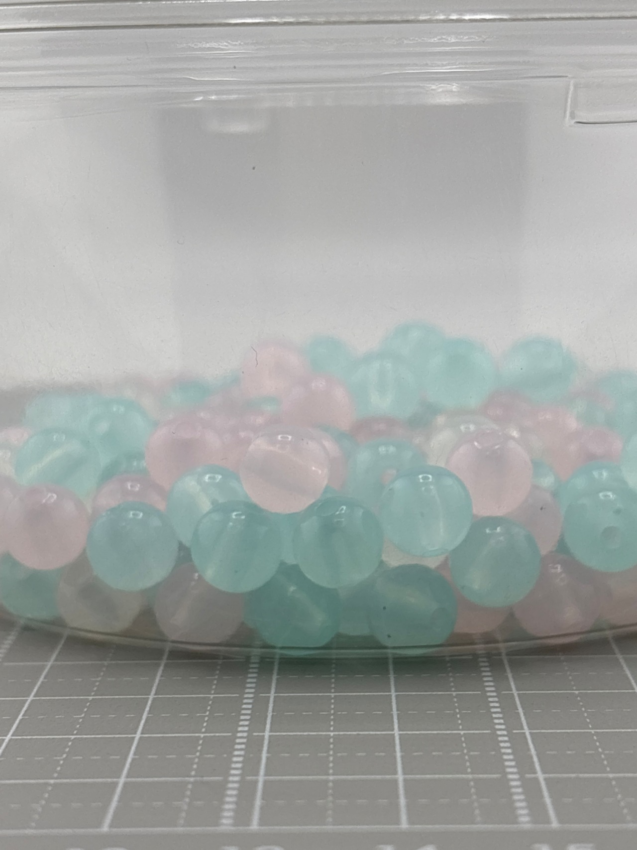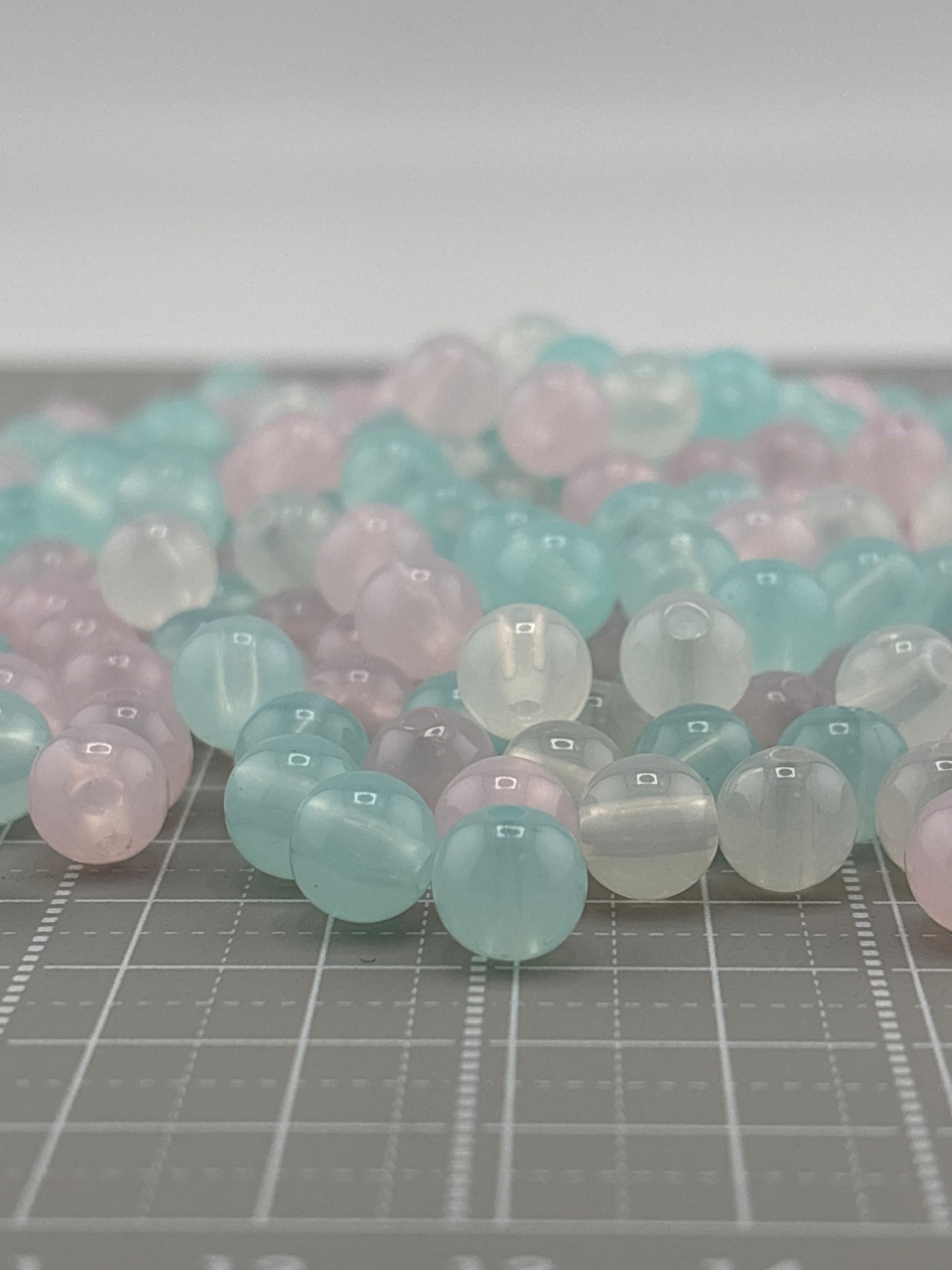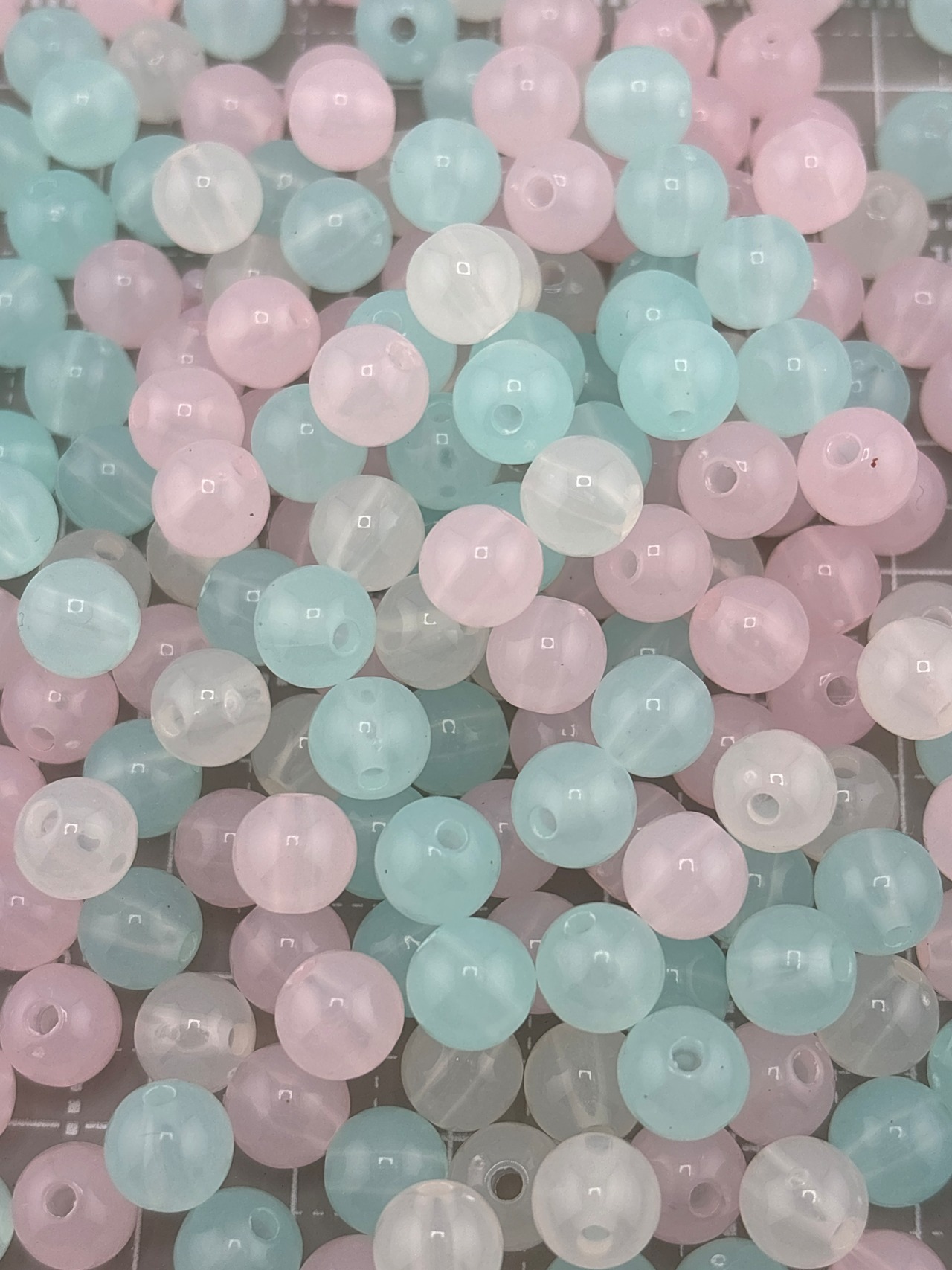 さまざまなカラーや質感のアクリルビーズをミックスしました。