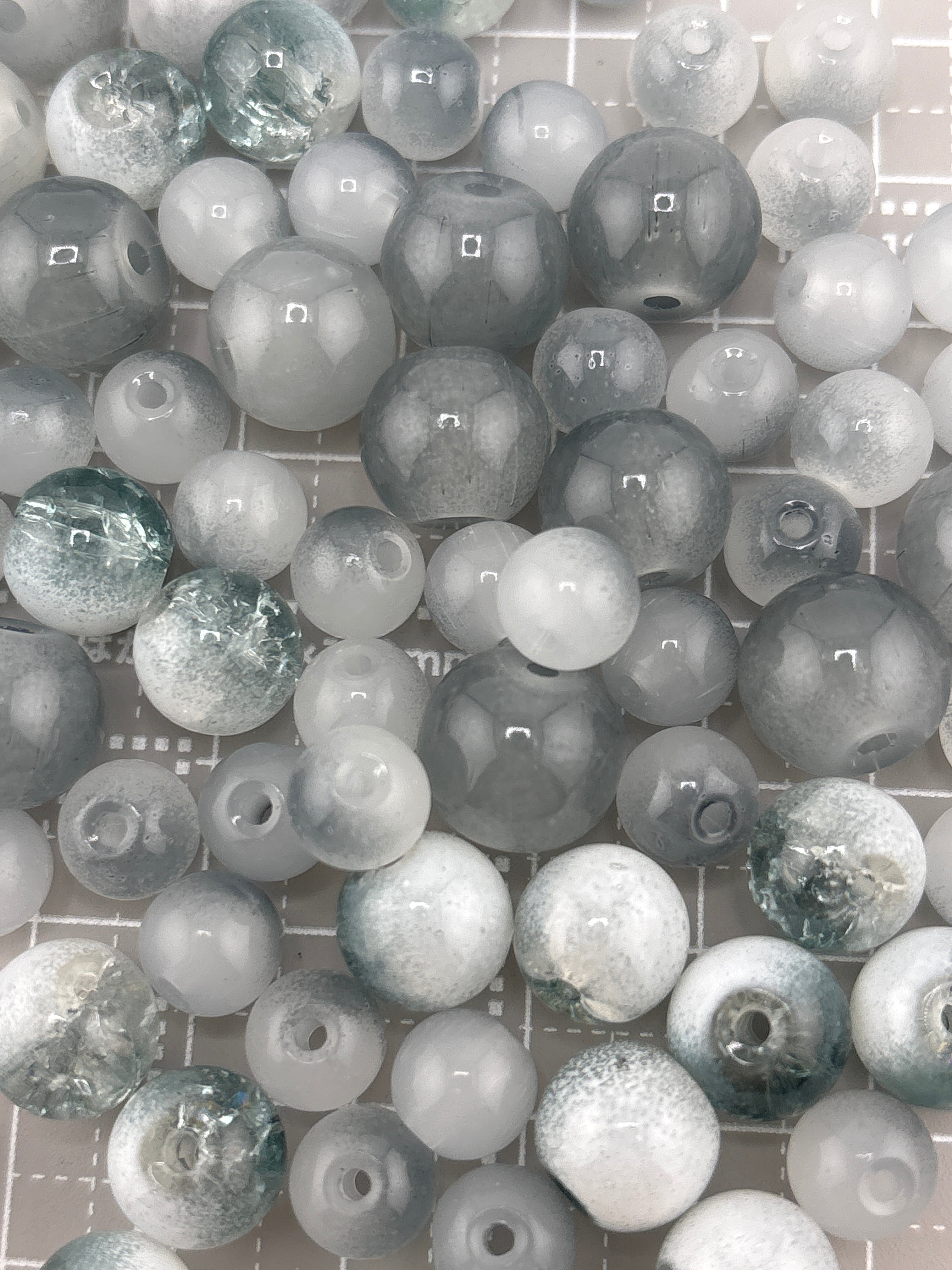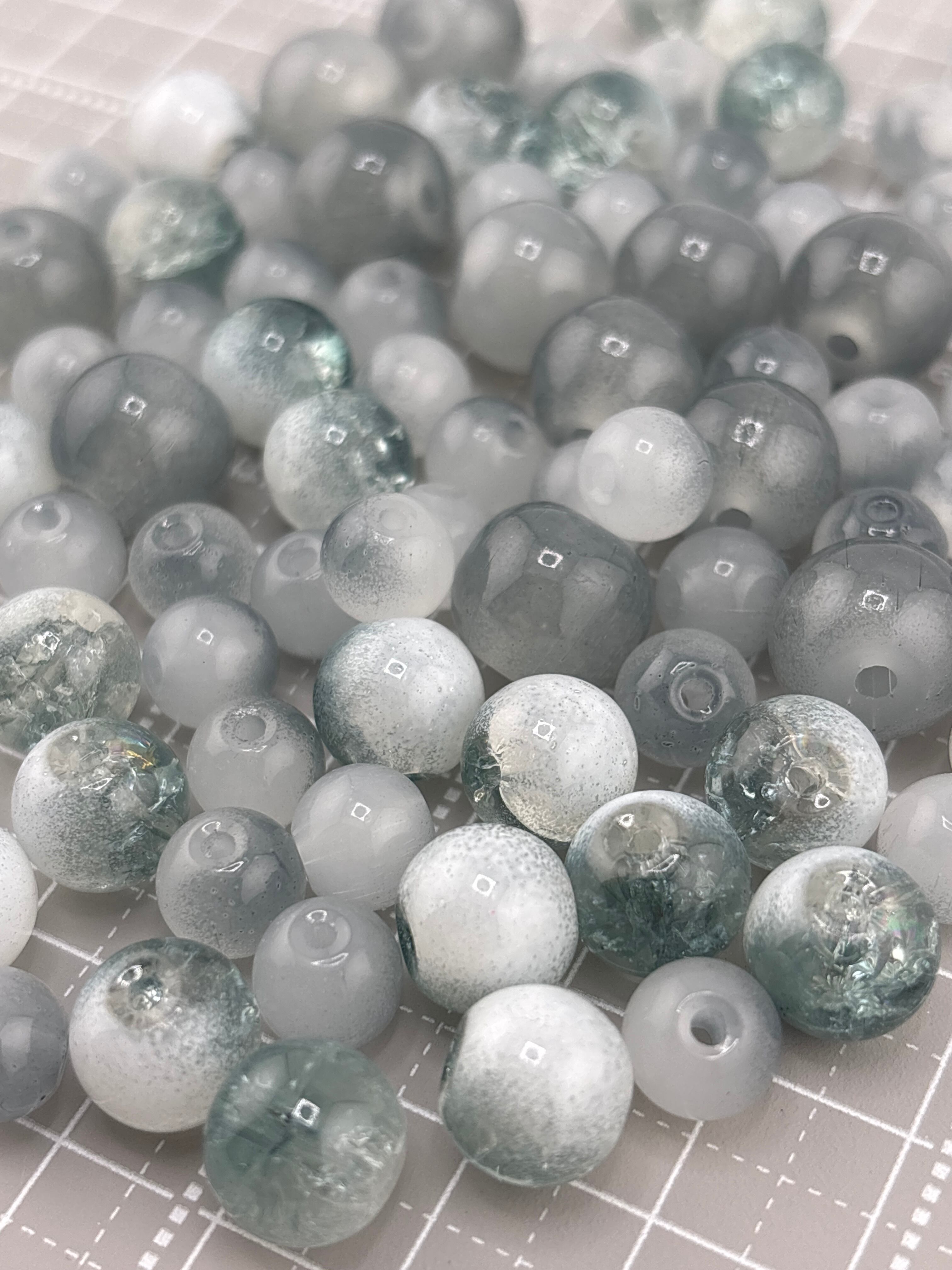 さまざまなカラーや質感のガラスビーズをミックスしました。