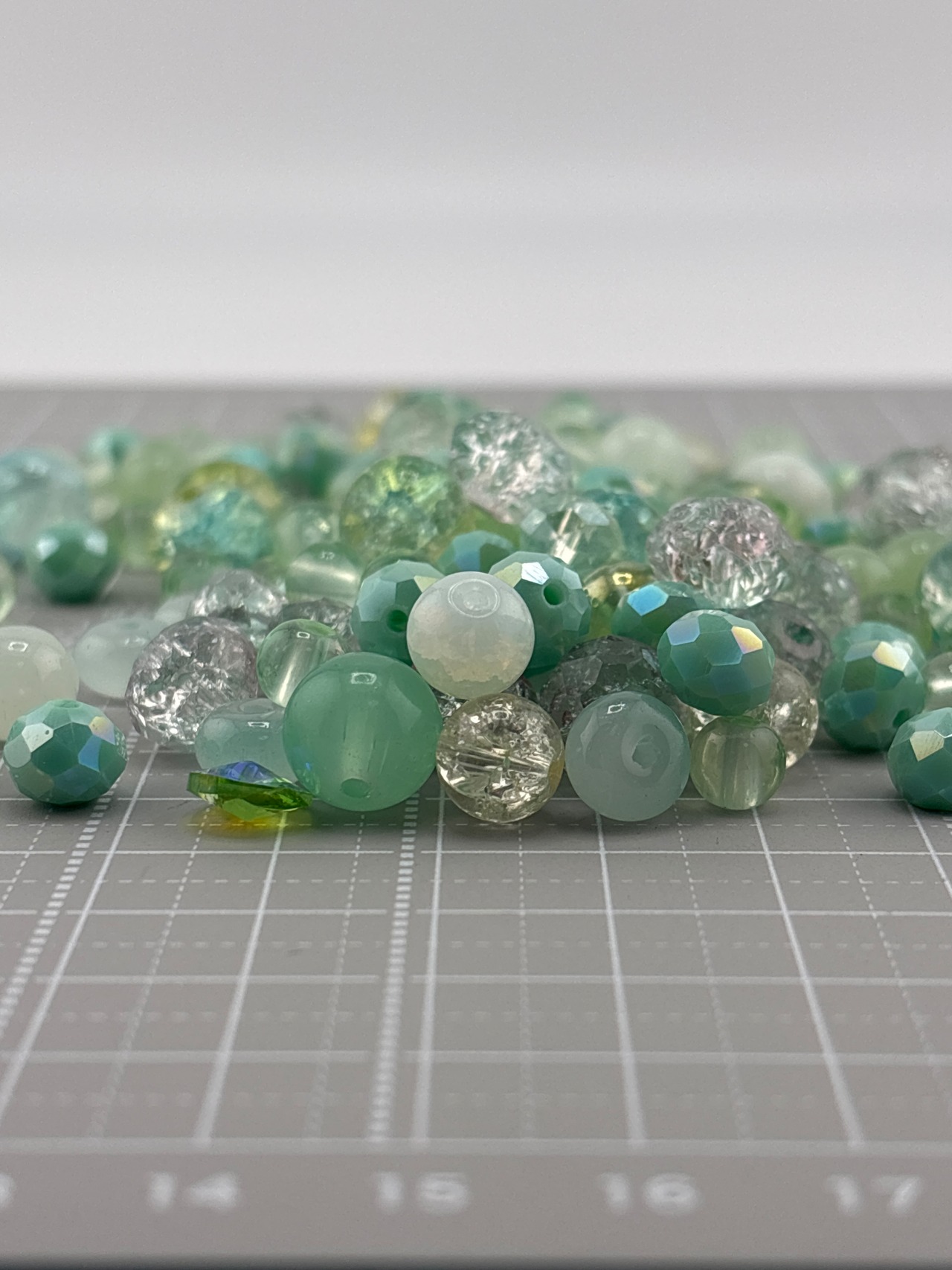 No.81 ガラス&アクリルビーズ 90g カットビーズグリーンミックス