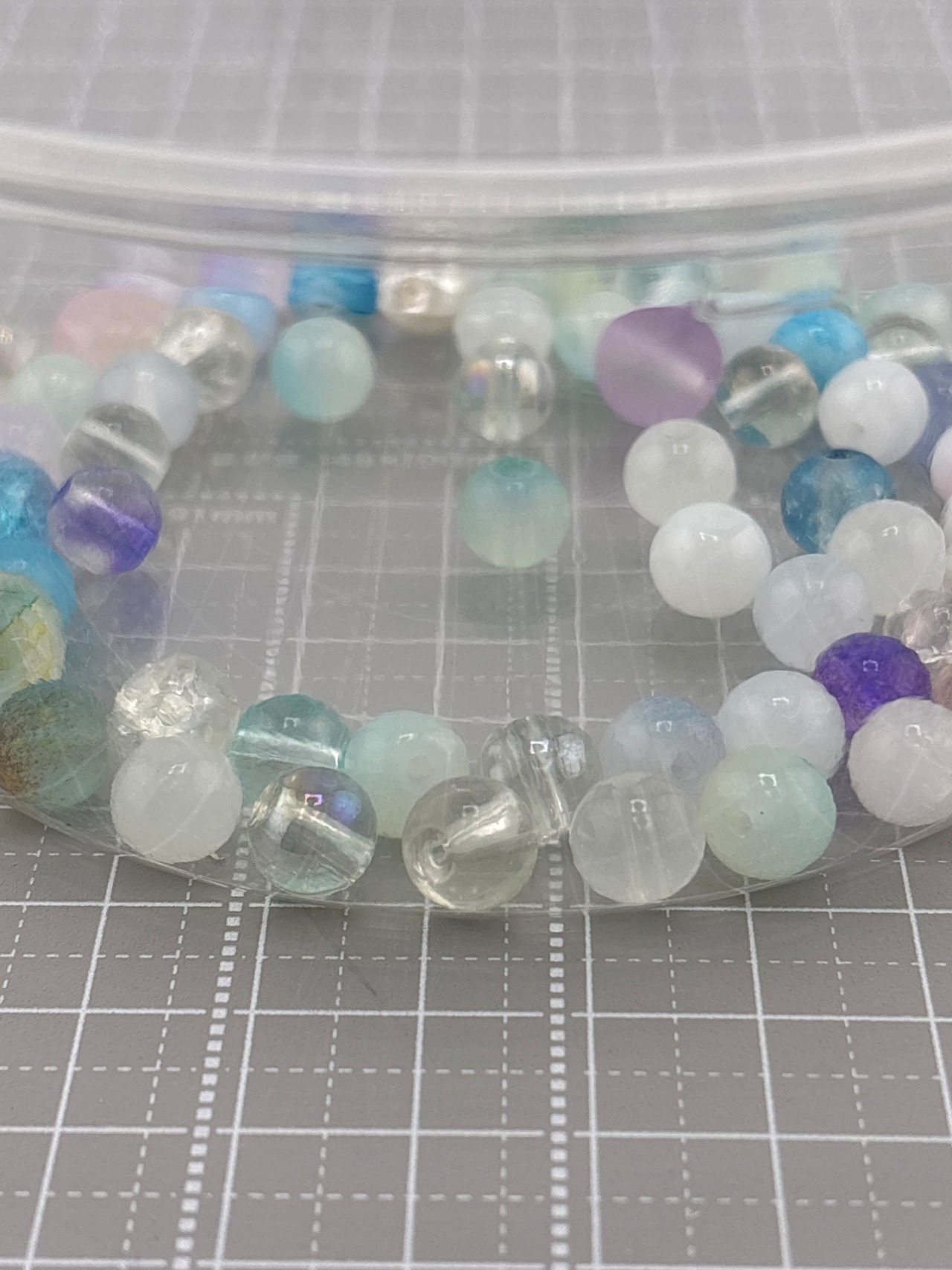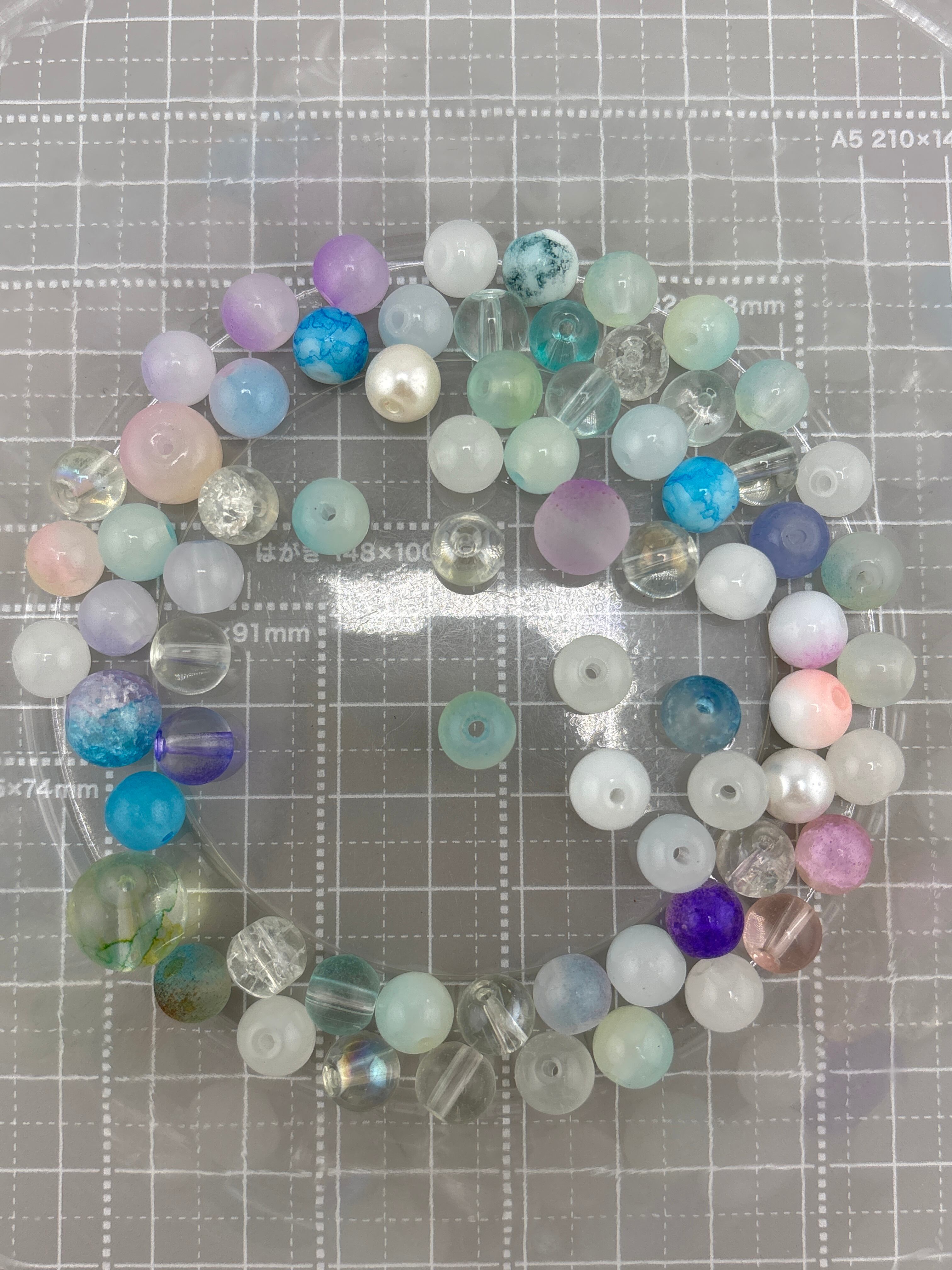 リユースパーツのため、ガラス以外にアクリルビーズが混ざっている場合があります。 ご了承のうえお求めください。