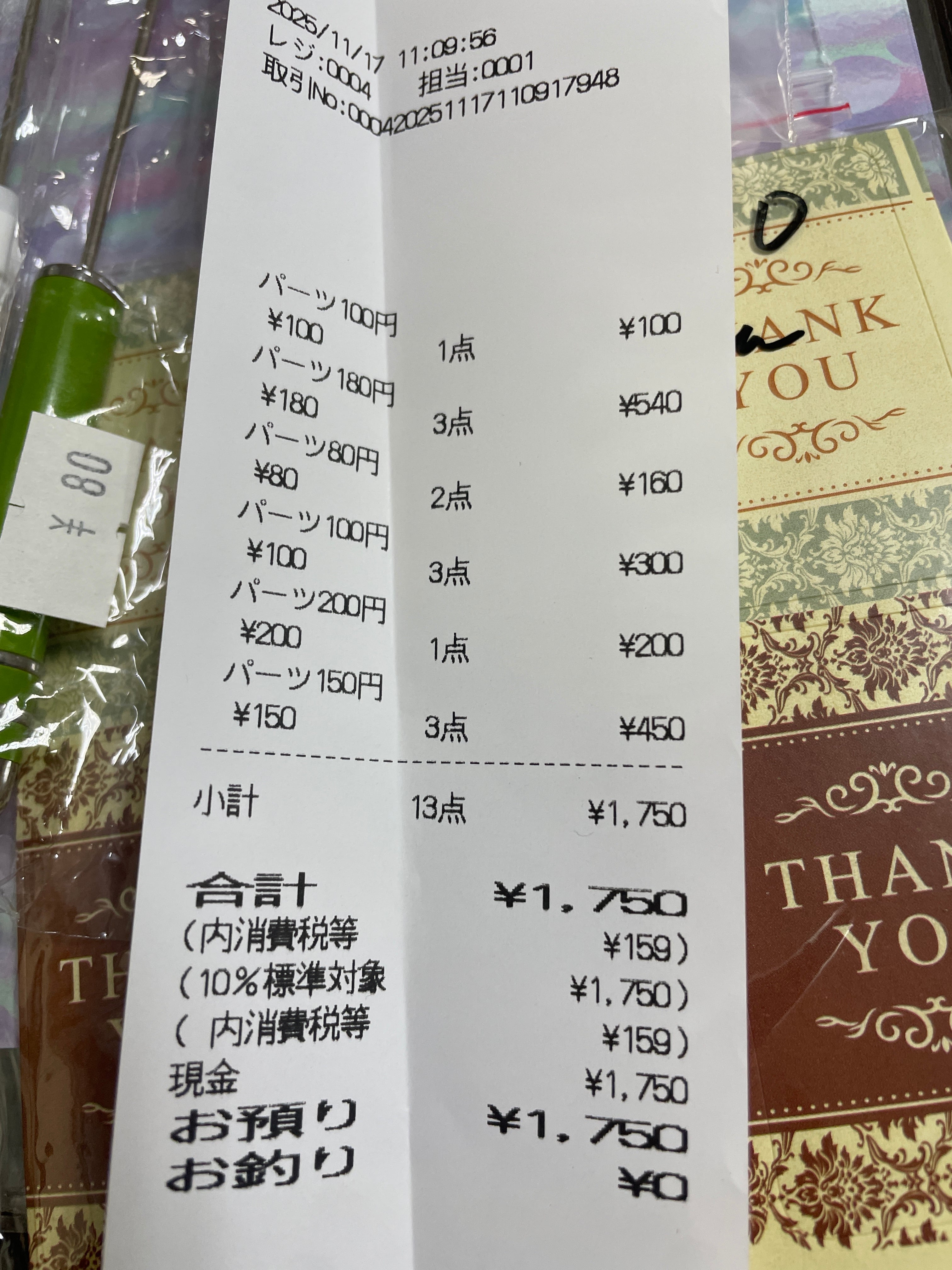 資材パーツ ★締め切り日 11月28日 (金) ★一度でも精算の期日を過ぎた場合、次回からは2週間ではなく 締め切り日をすぎてもお支払いがない場合は会員番号が失効します。次回ご注文時に新たに会費をお支払いいただきます。★お取り置が金額が10000円を超える場合などこちらの都合によりお取り置き期日に関わらずご精算をお願いする場合があります。 ★ライブ配信追加があればこちらに追加します。 ★お間違いがないか必ずご確認をお願いします。 ★購入後は変更できない場合もあります。 (2025年10月22日改定)