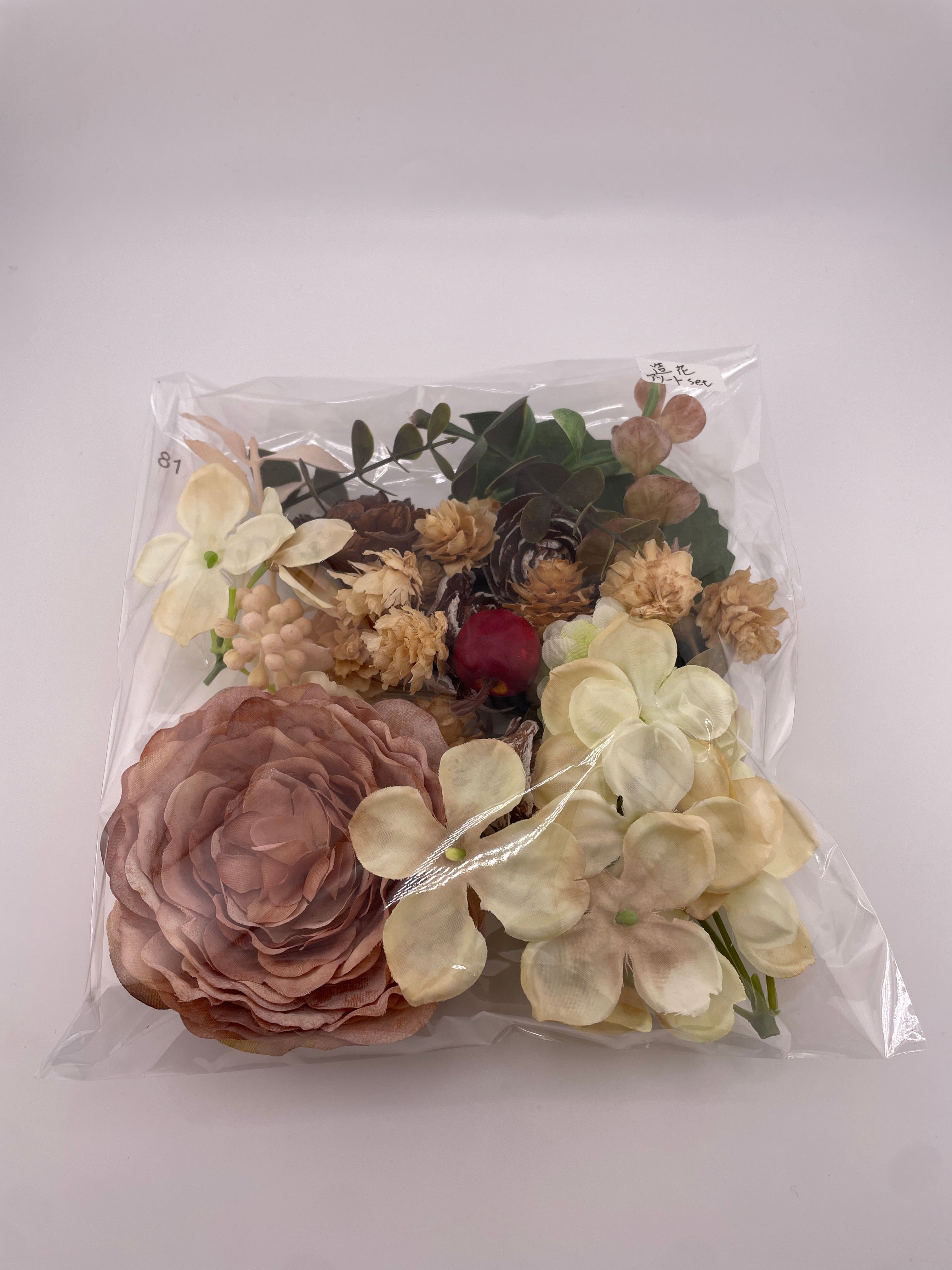 造花を中心に、さまざまな素材を詰め合わせたリユースパーツセットです。