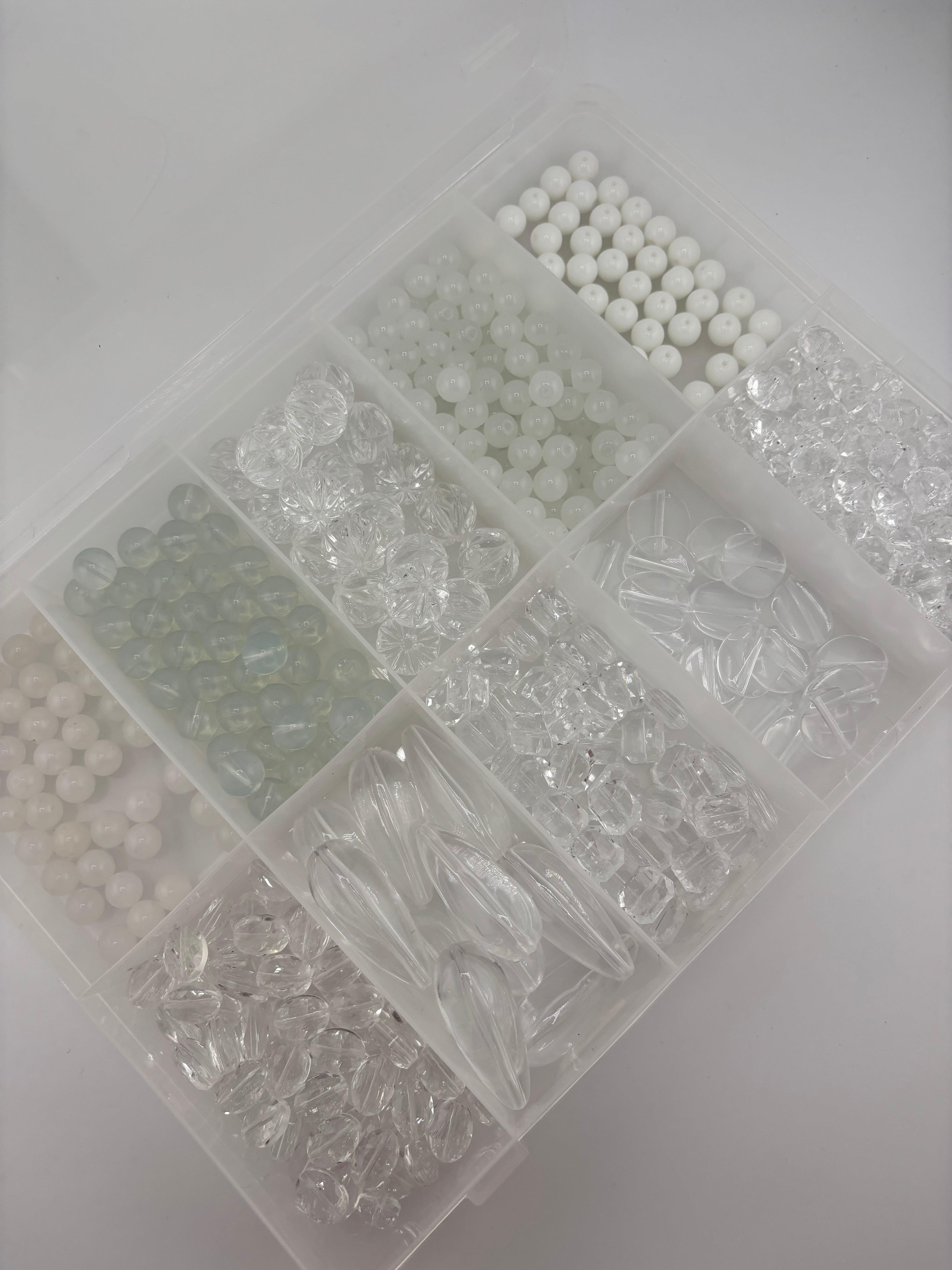 E36 E リユース資材 クリア・ホワイト系ビーズまとめ売り(ケースの中身のみ)
