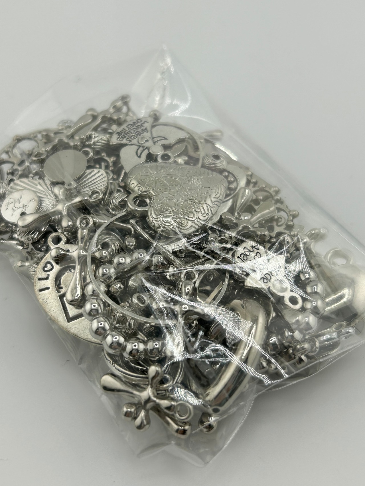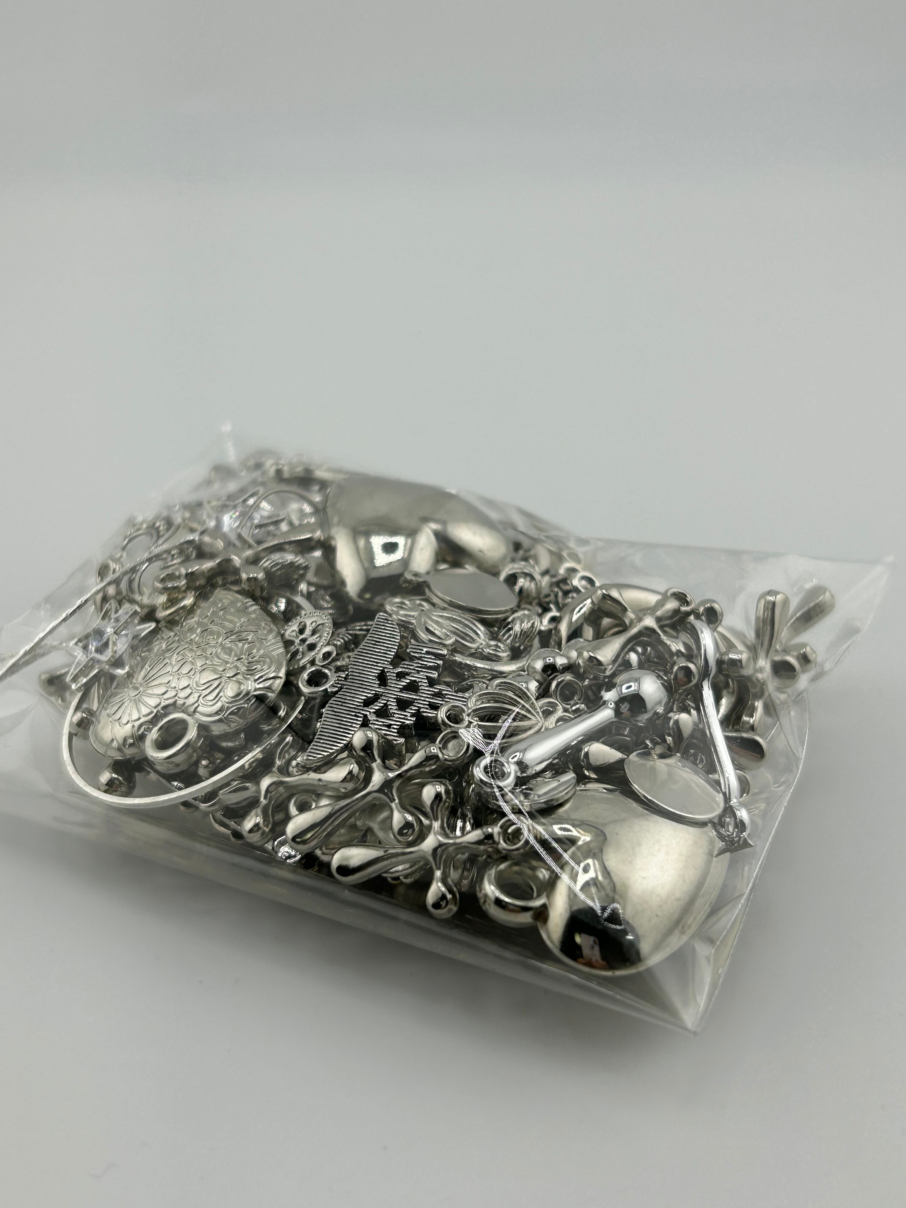 【リユースパーツまとめ売り】仕分けできなかったハンドメイドパーツ シルバー系 アソートセット(約102g)