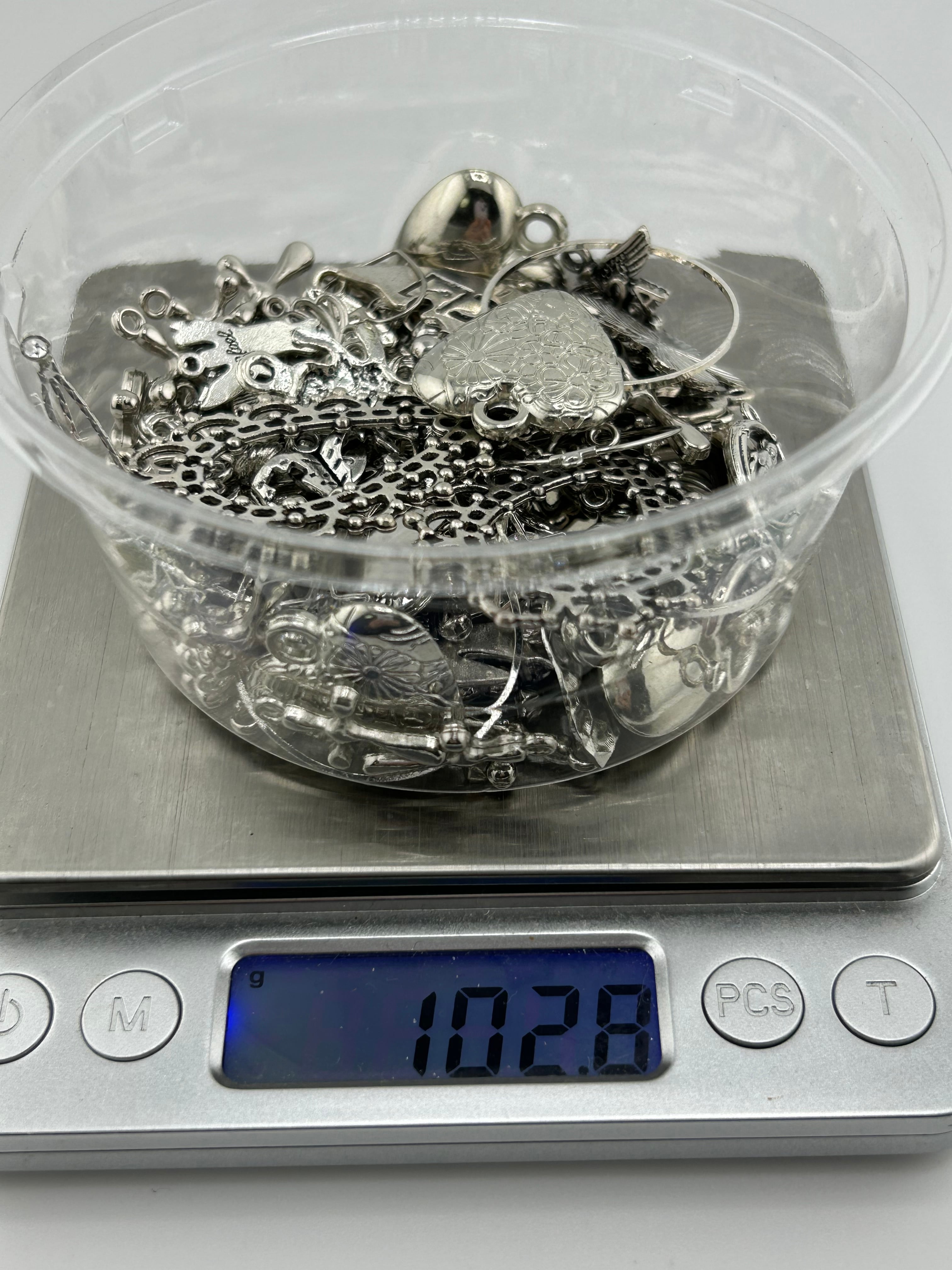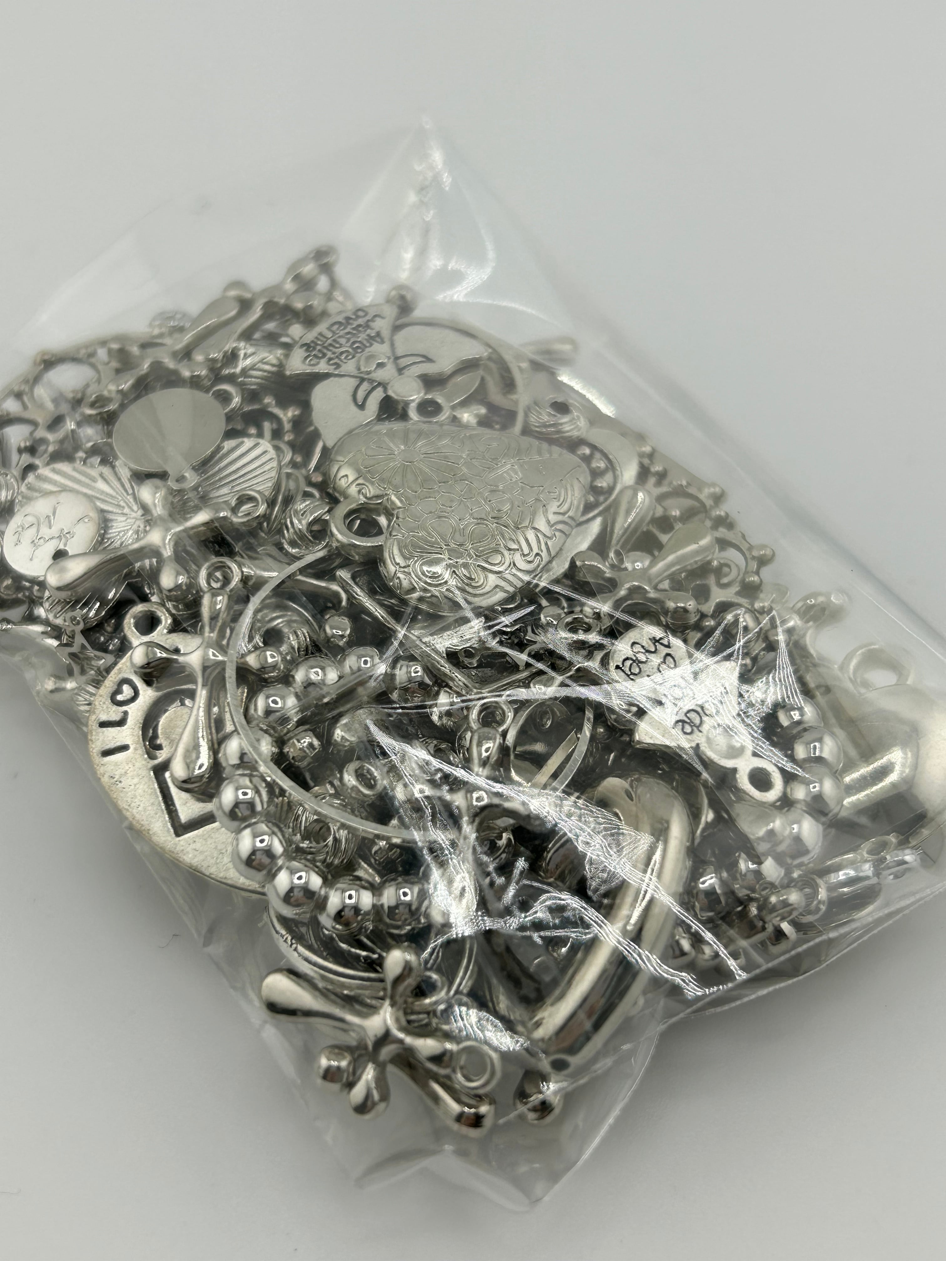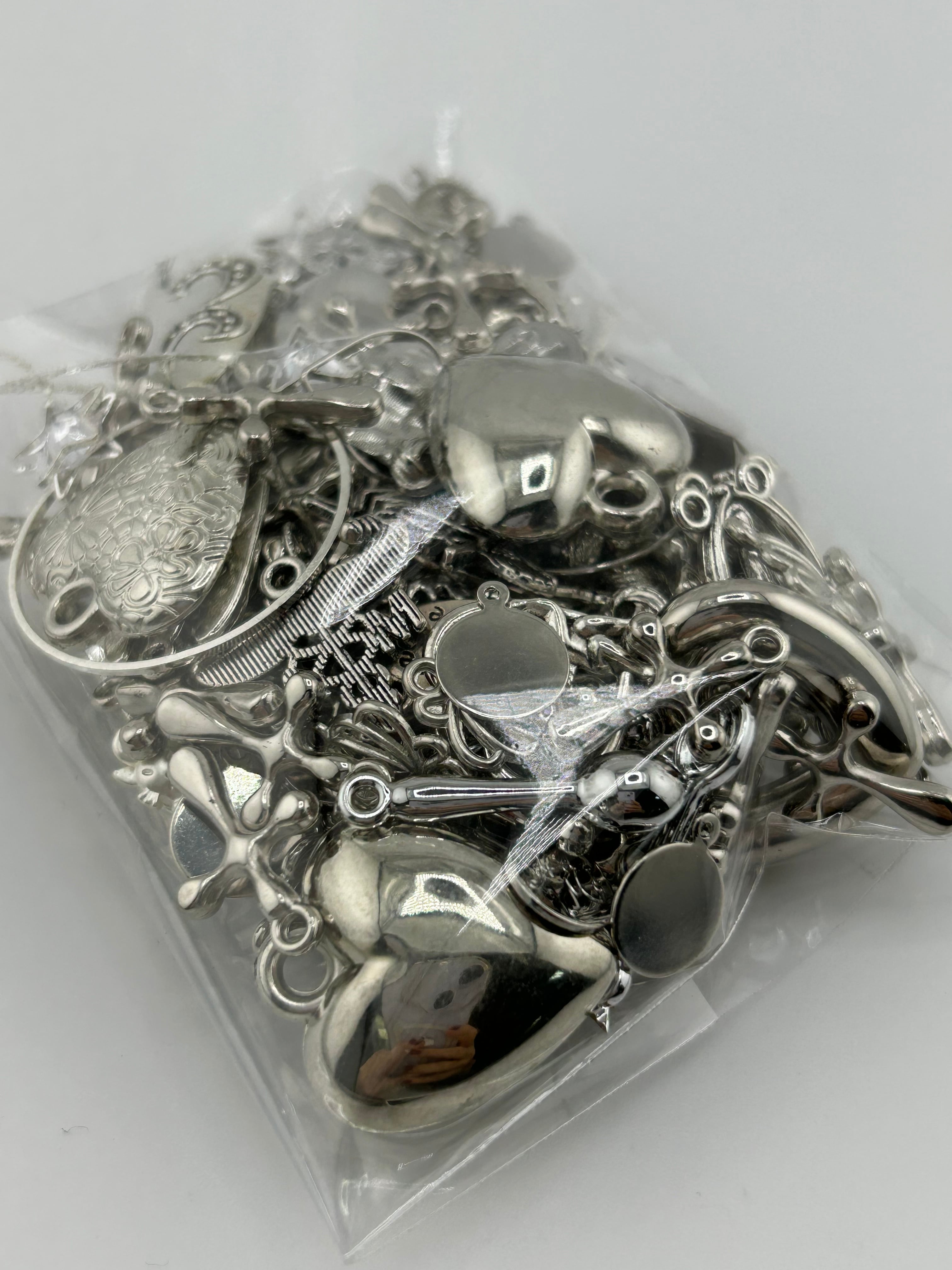 A11【リユースパーツまとめ売り】仕分けできなかったハンドメイドパーツ シルバー系 アソートセット(約102g)