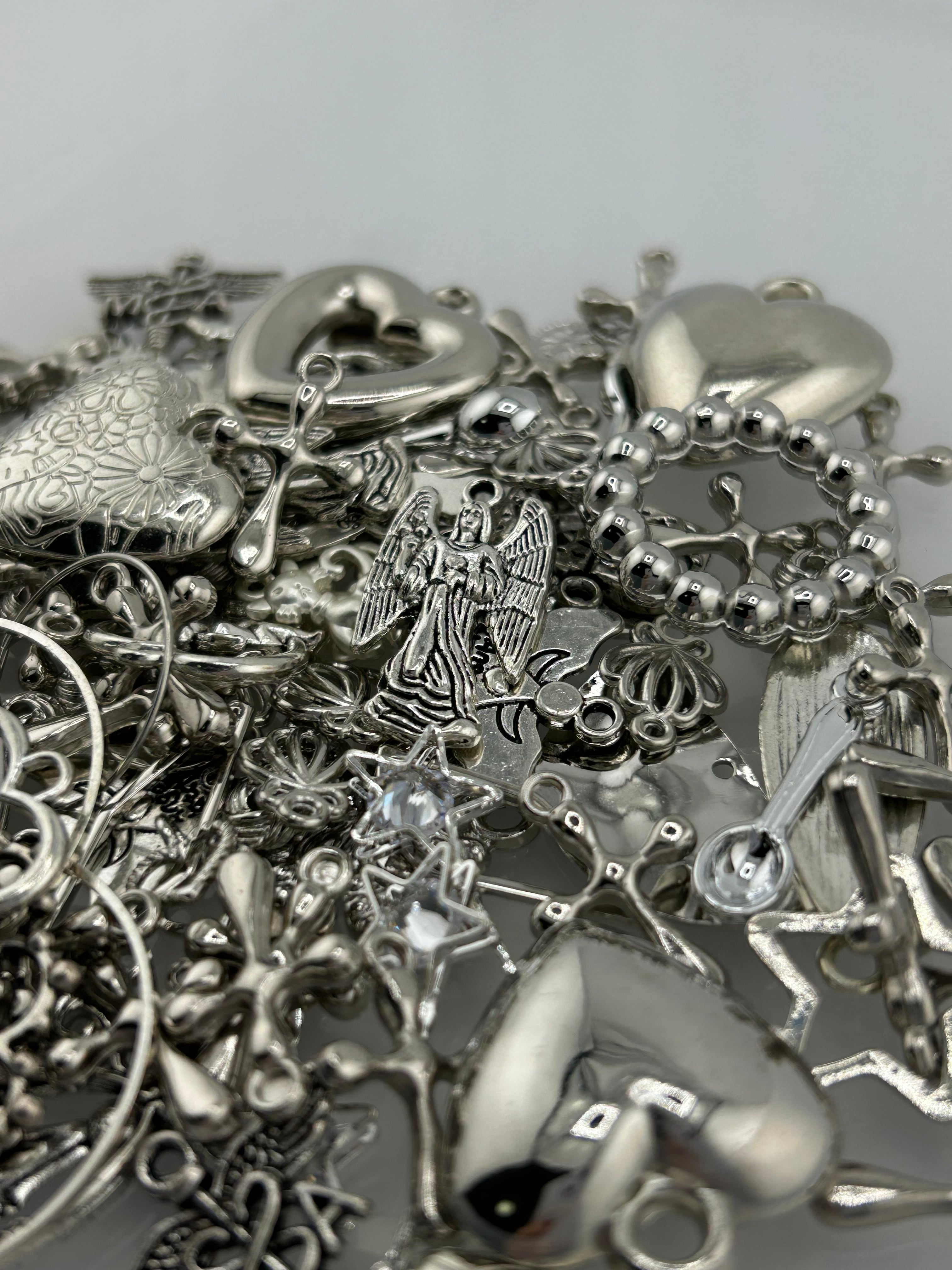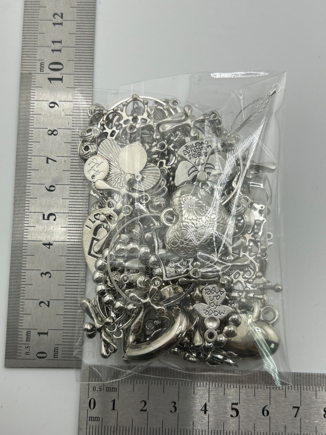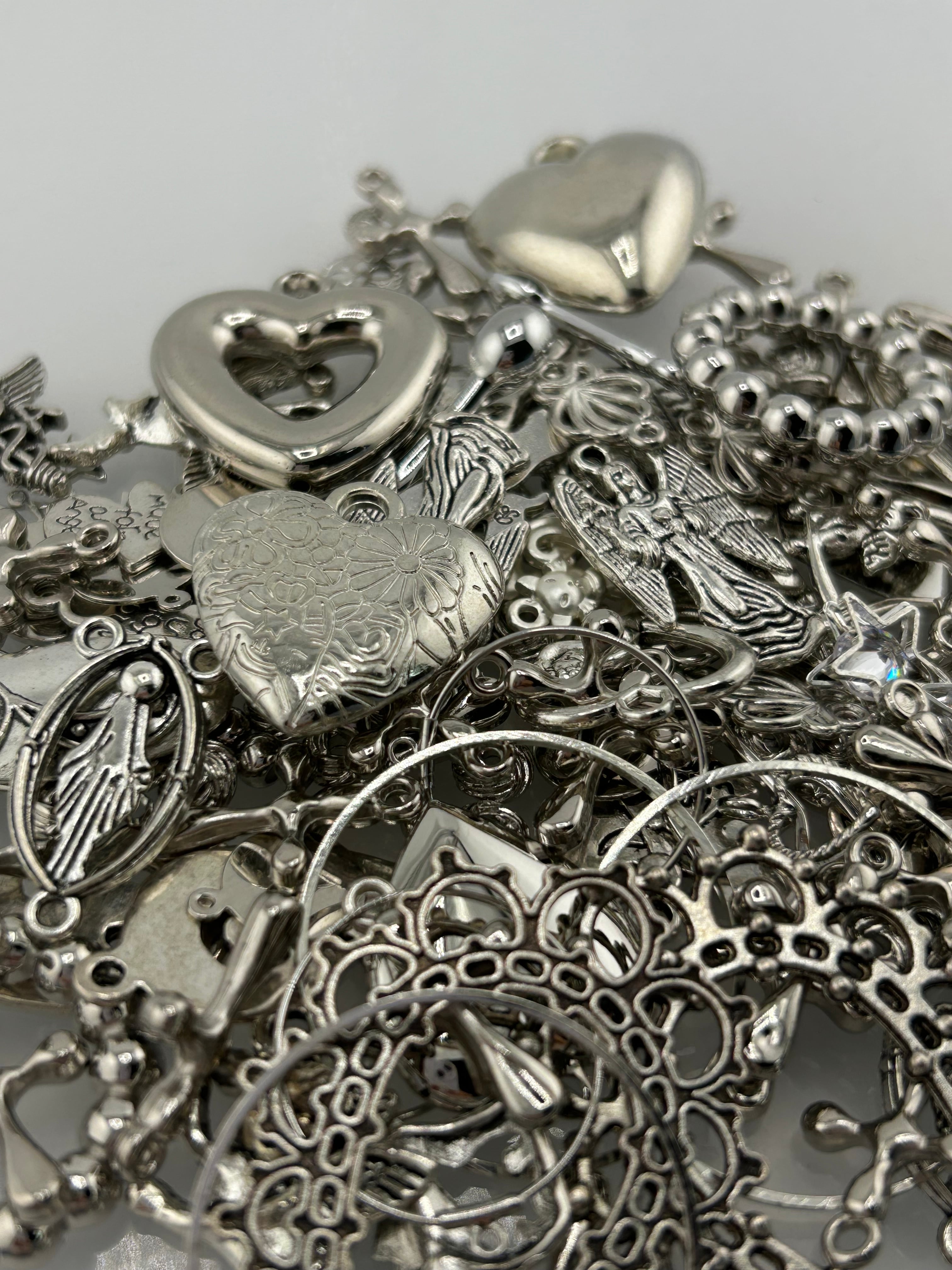 A11【リユースパーツまとめ売り】仕分けできなかったハンドメイドパーツ シルバー系 アソートセット(約102g)