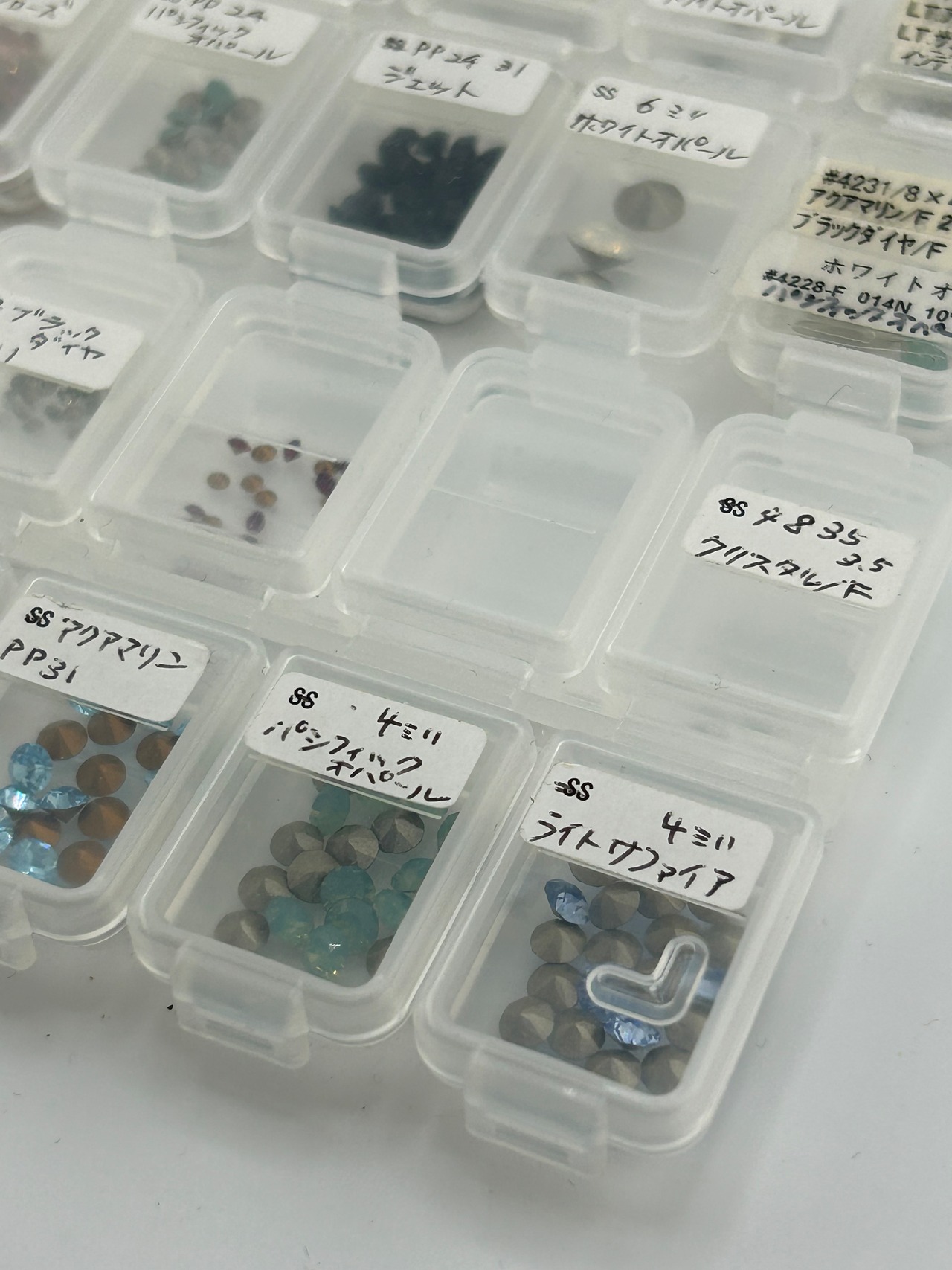 スワロフスキー規格のガラスストーンを中心としたMIX内容で、
