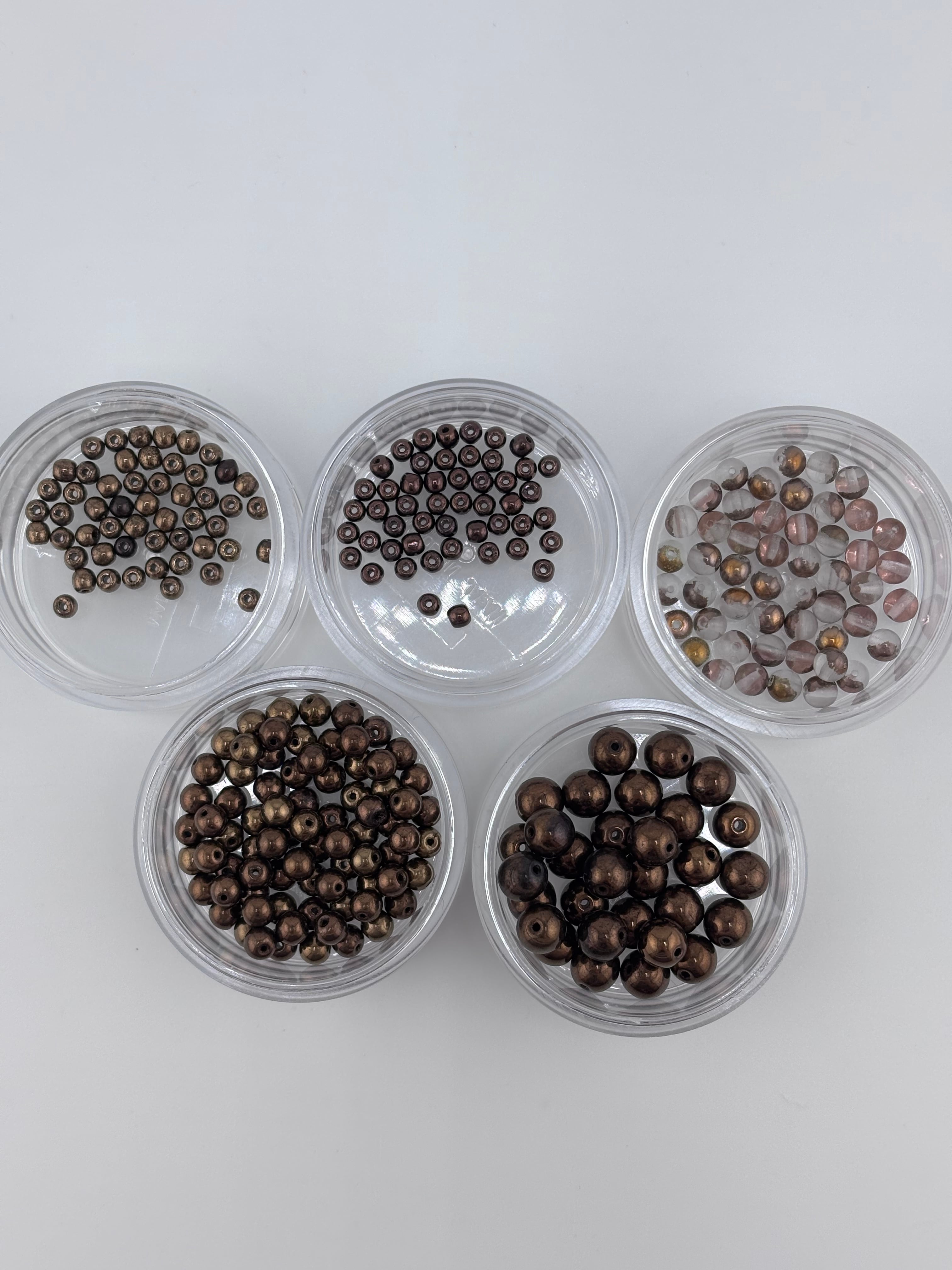 カラー・サイズ・形状・素材はさまざまなビーズが入っています