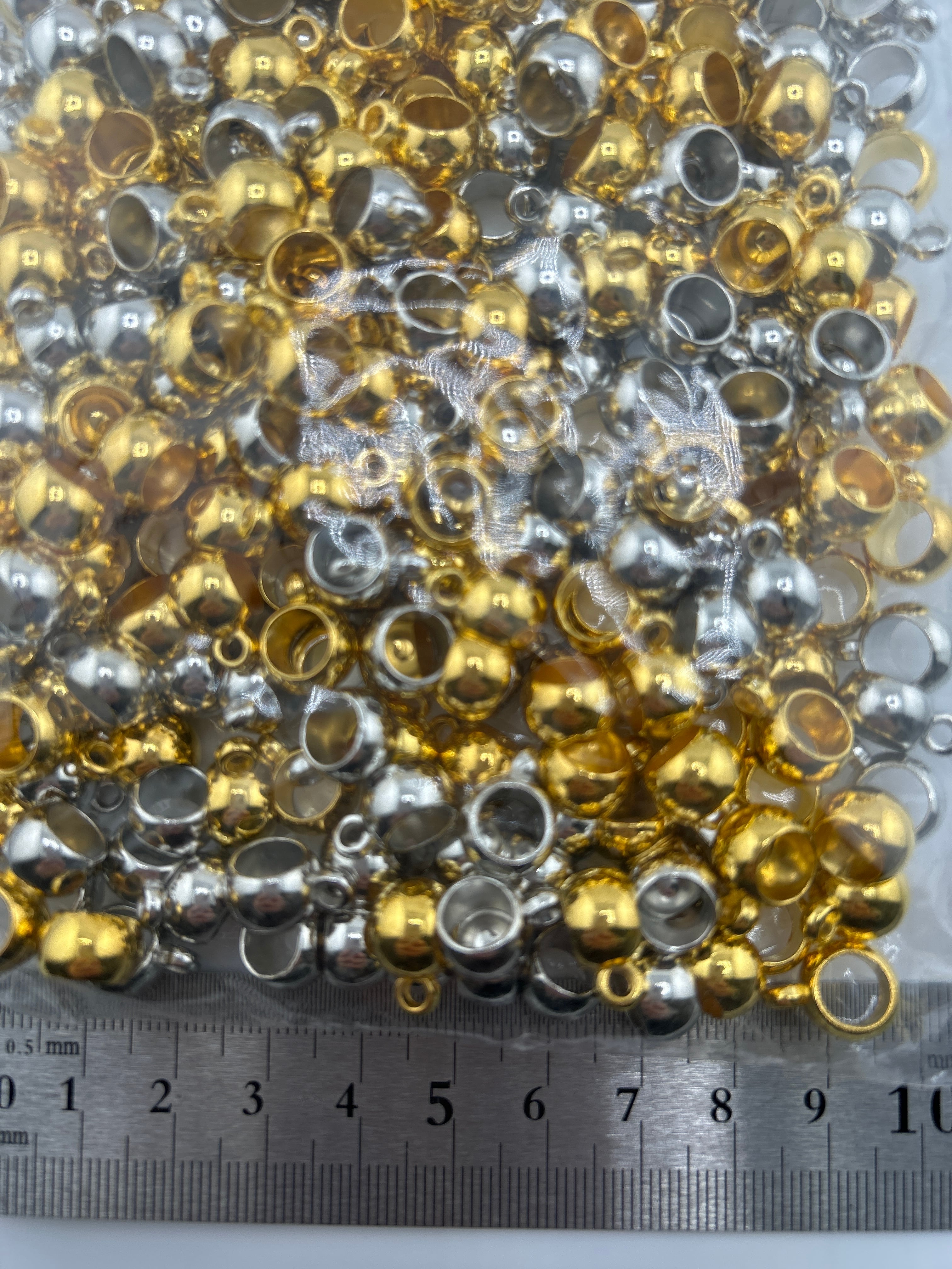 ゴールド・シルバーカラーの、カン付きタイプ樹脂パーツをランダムに詰め合わせたミックスセットです。